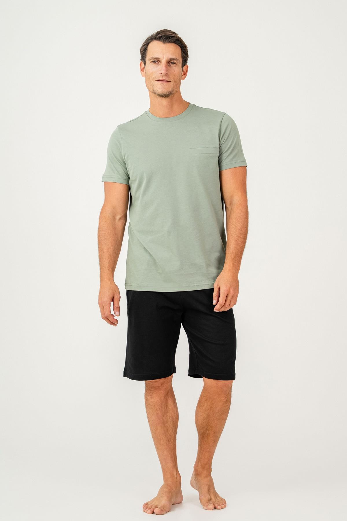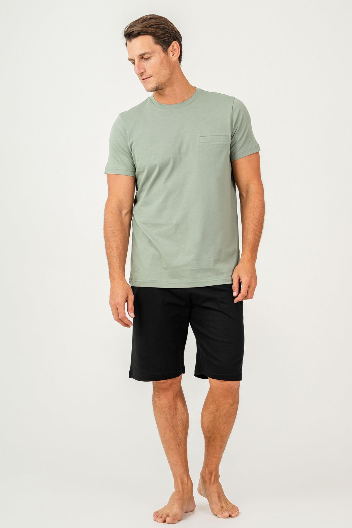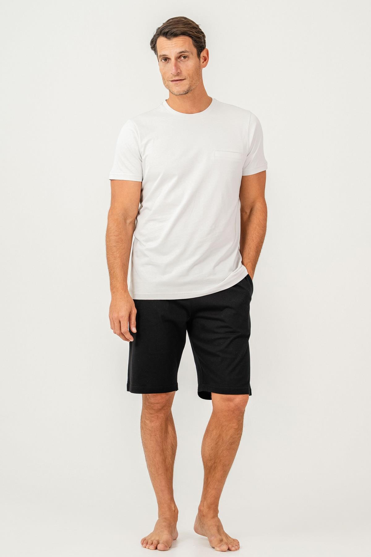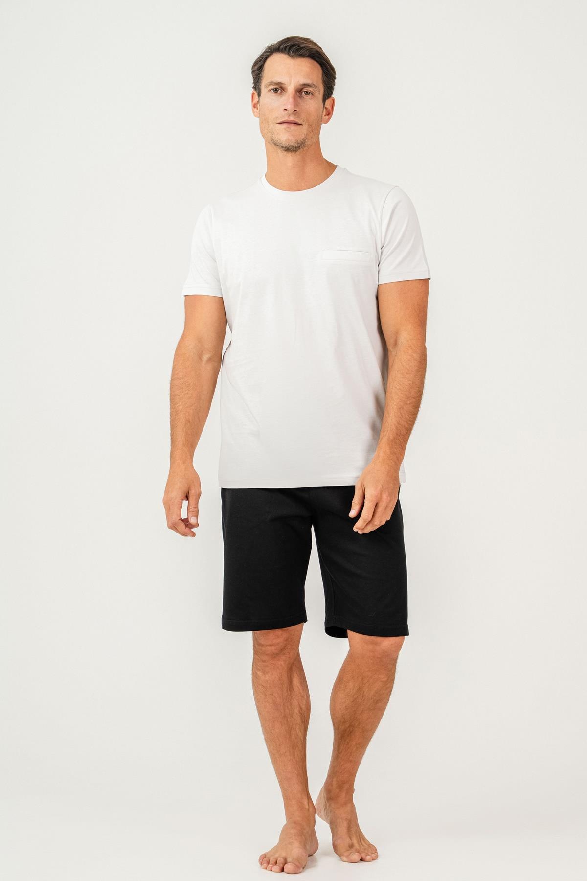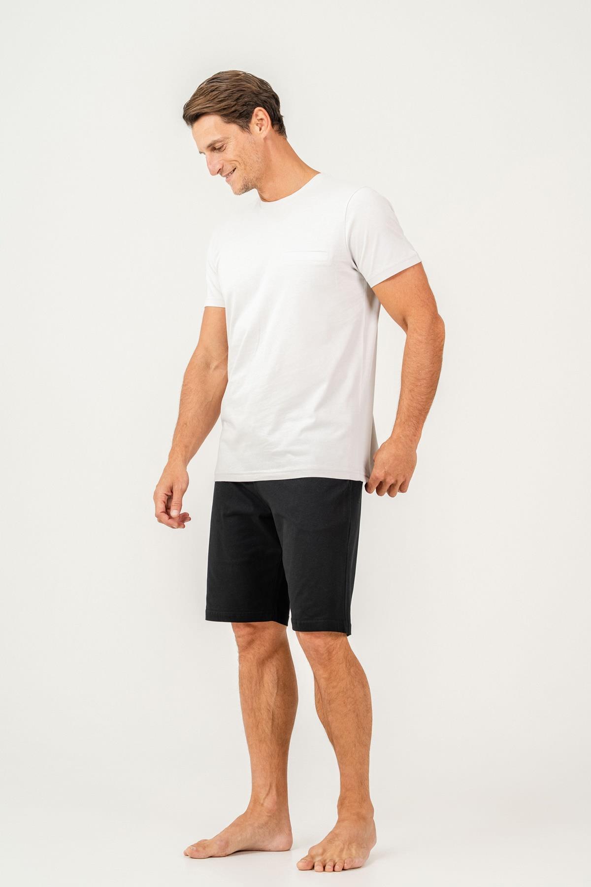 Erkek Tişört Şort Takım %100 Pamuk – Cepli Şortlu Rahat Ev & Günlük Kullanım Takımı