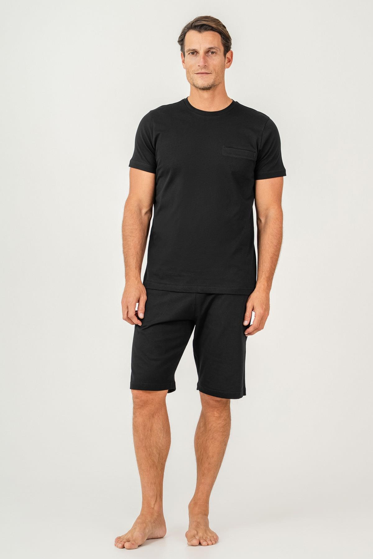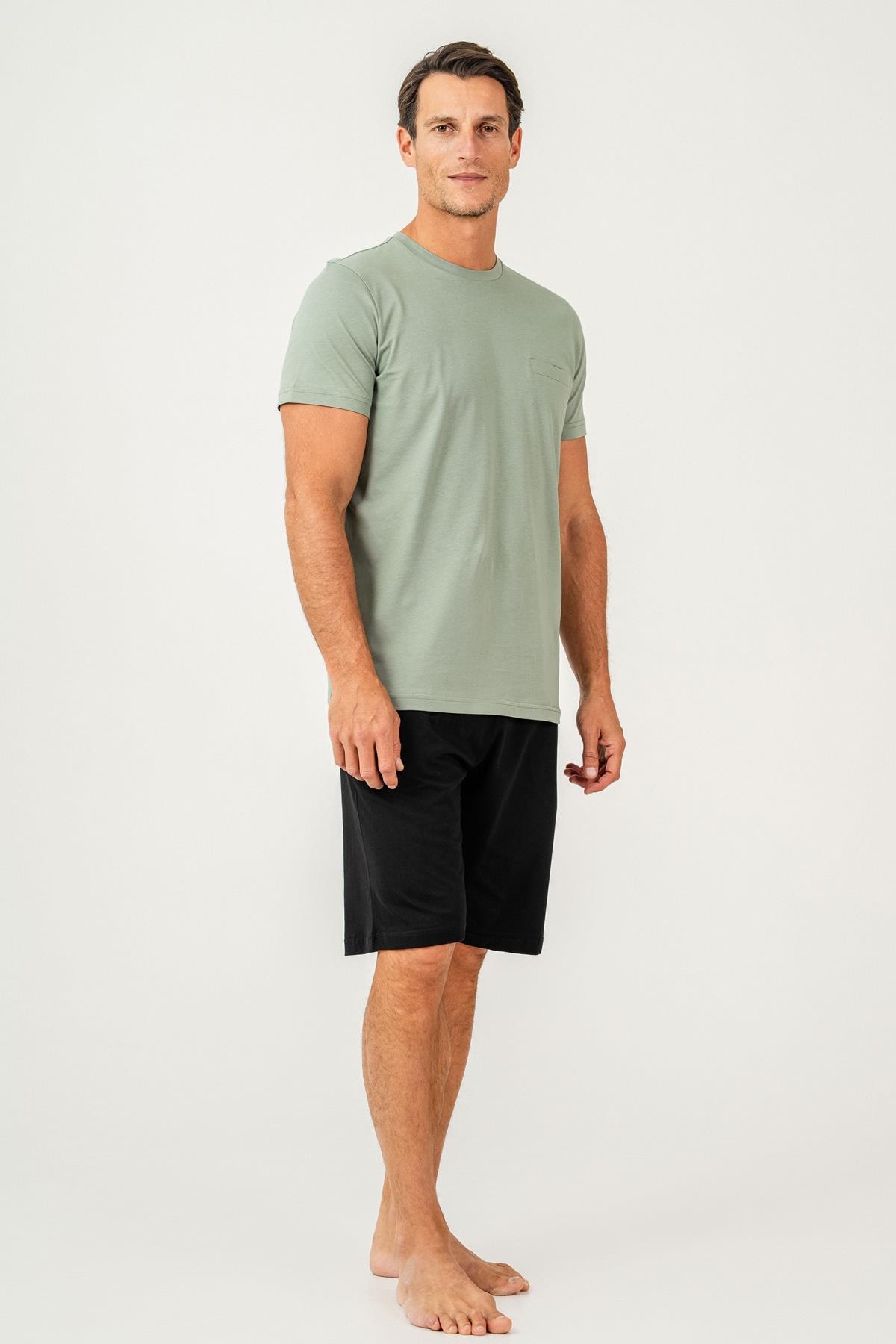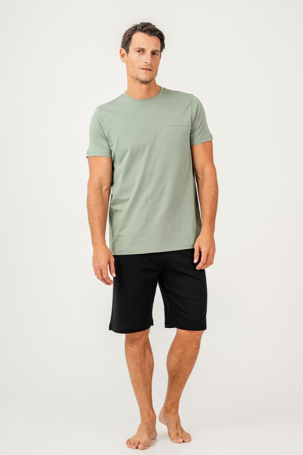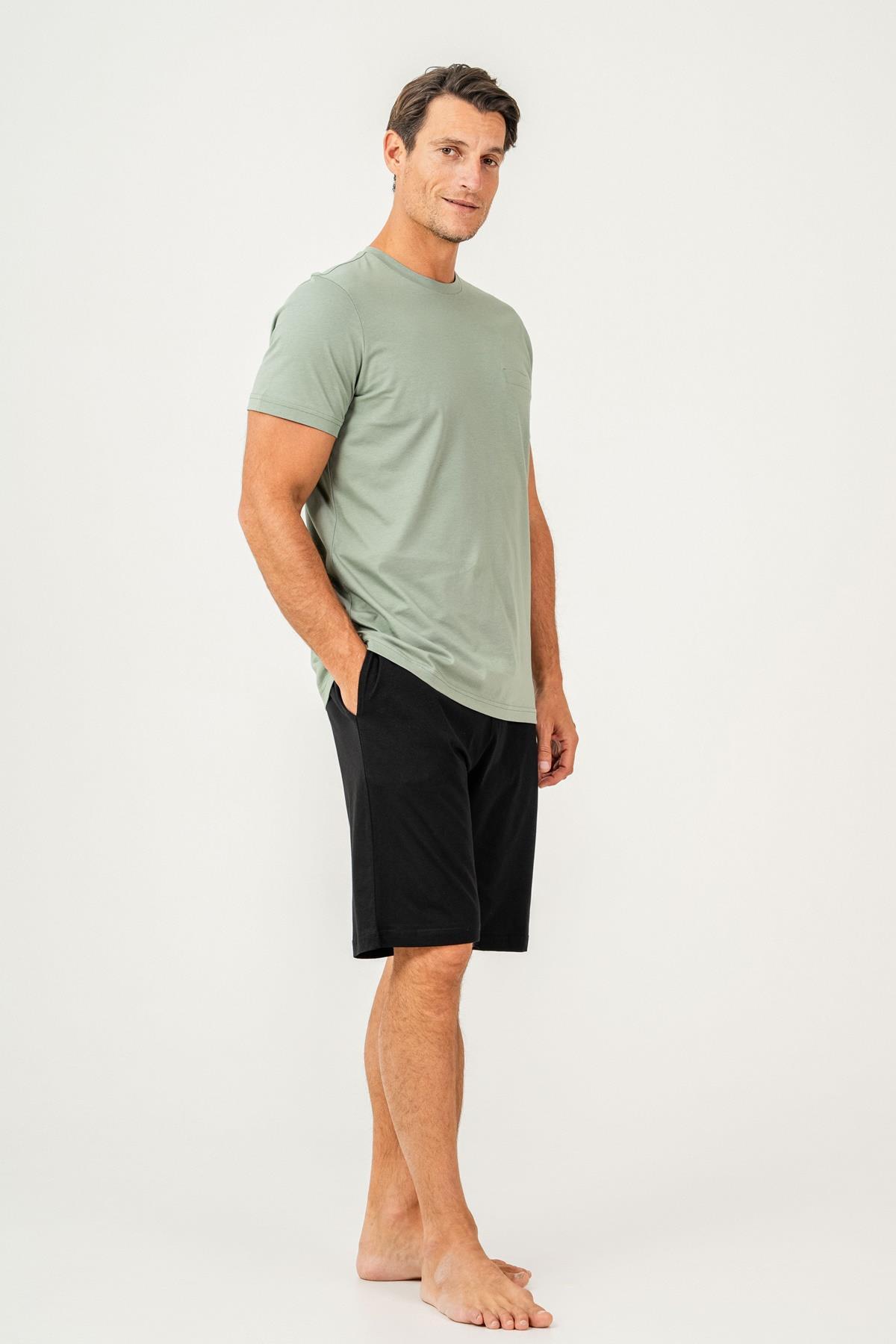 Erkek Tişört Şort Takım %100 Pamuk – Cepli Şortlu Rahat Ev & Günlük Kullanım Takımı