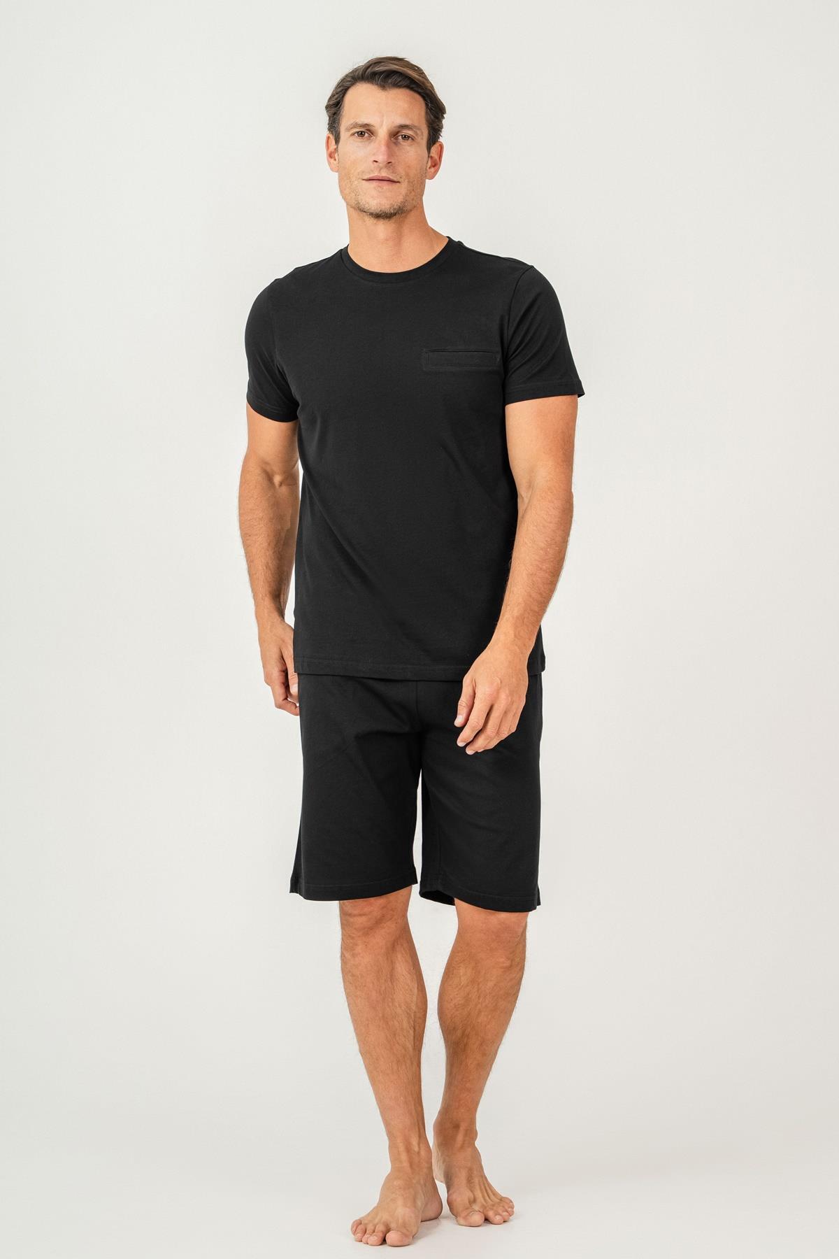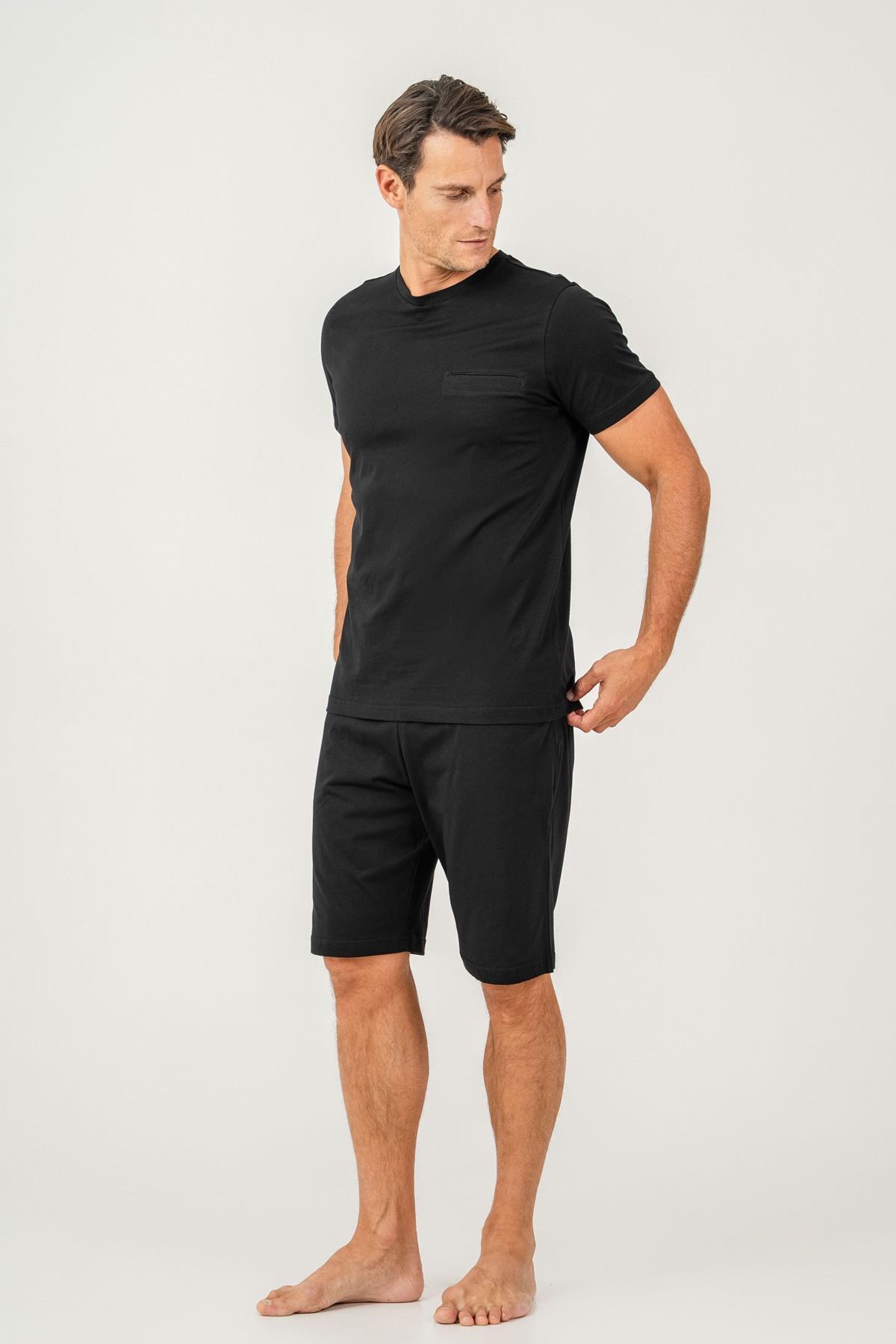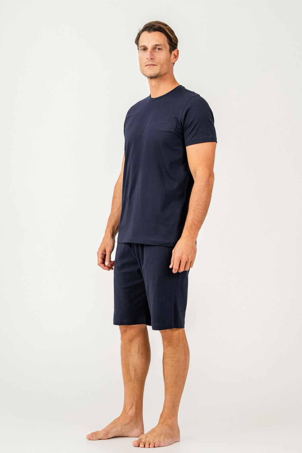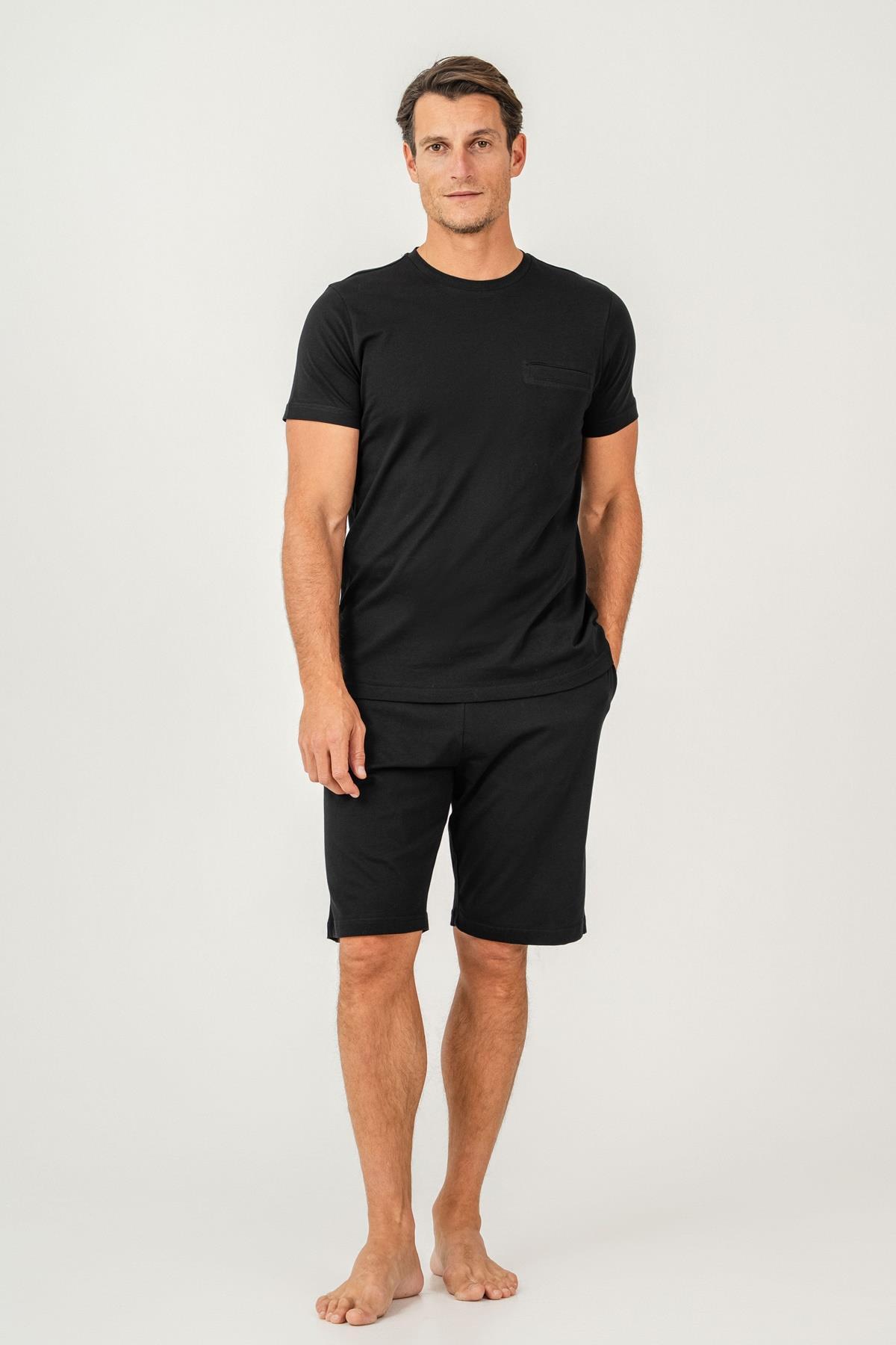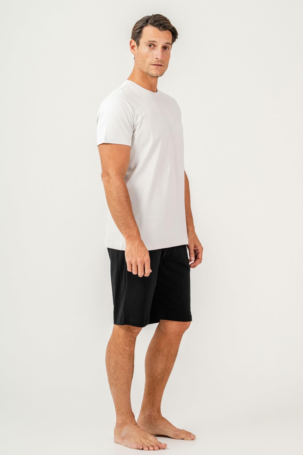 Erkek Tişört Şort Takım %100 Pamuk – Cepli Şortlu Rahat Ev & Günlük Kullanım Takımı