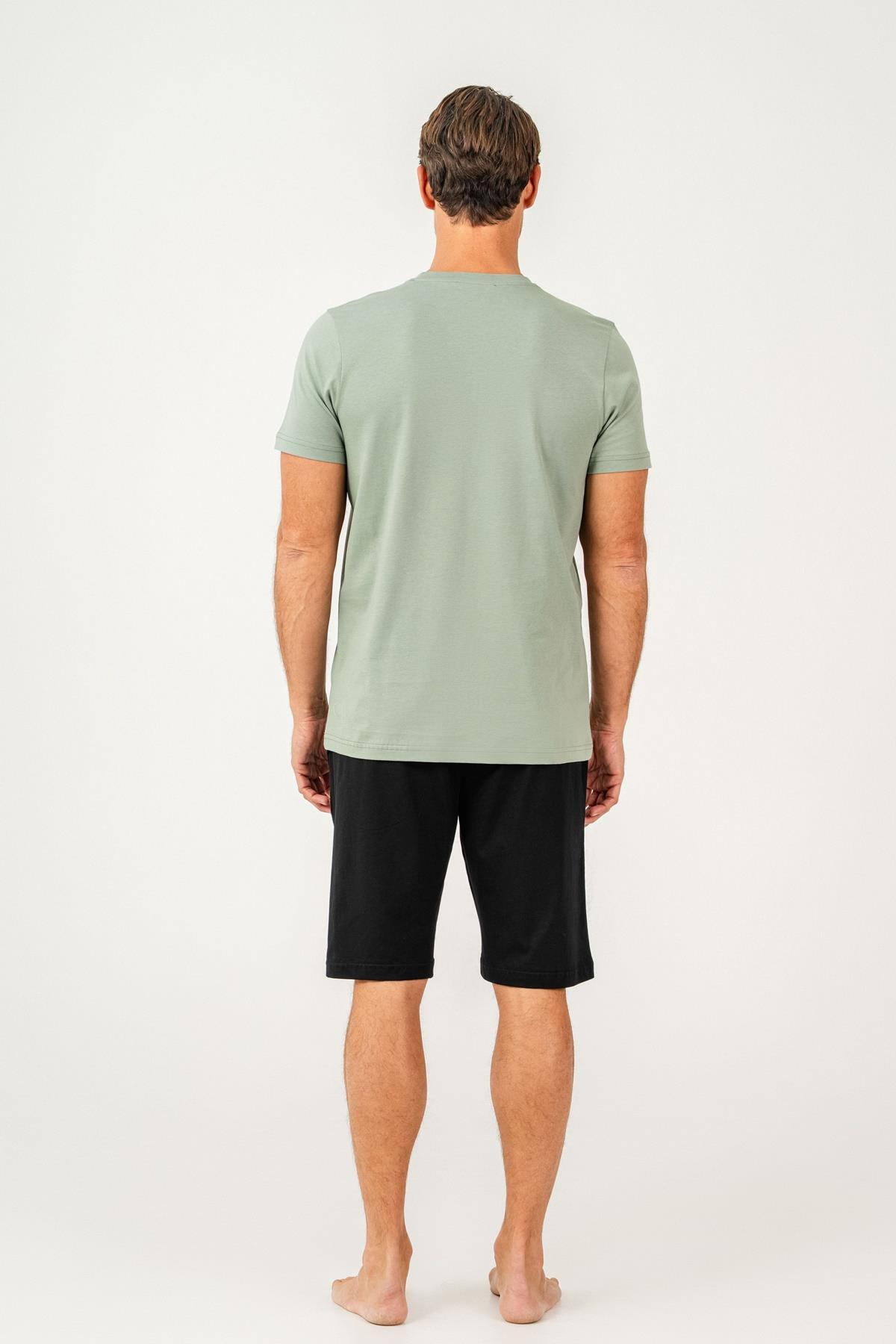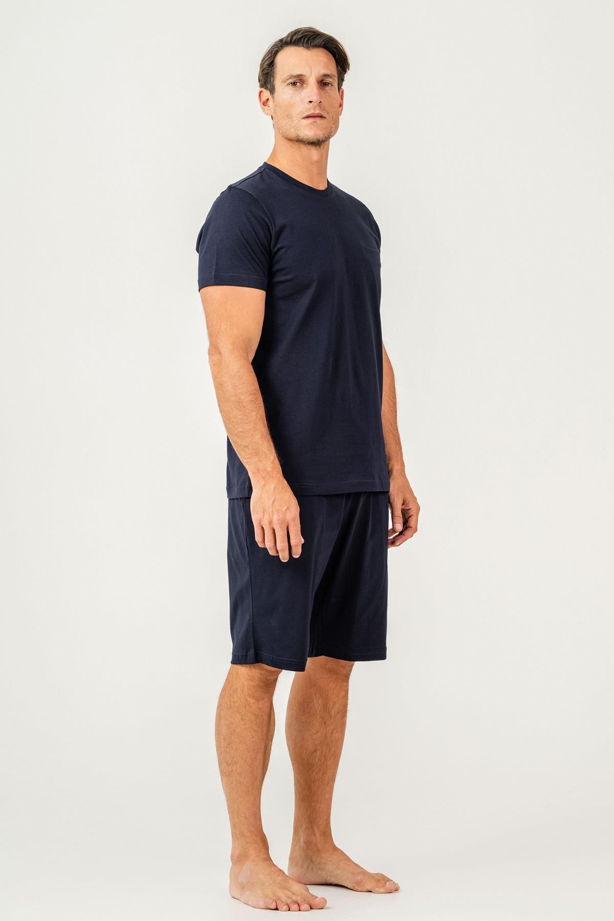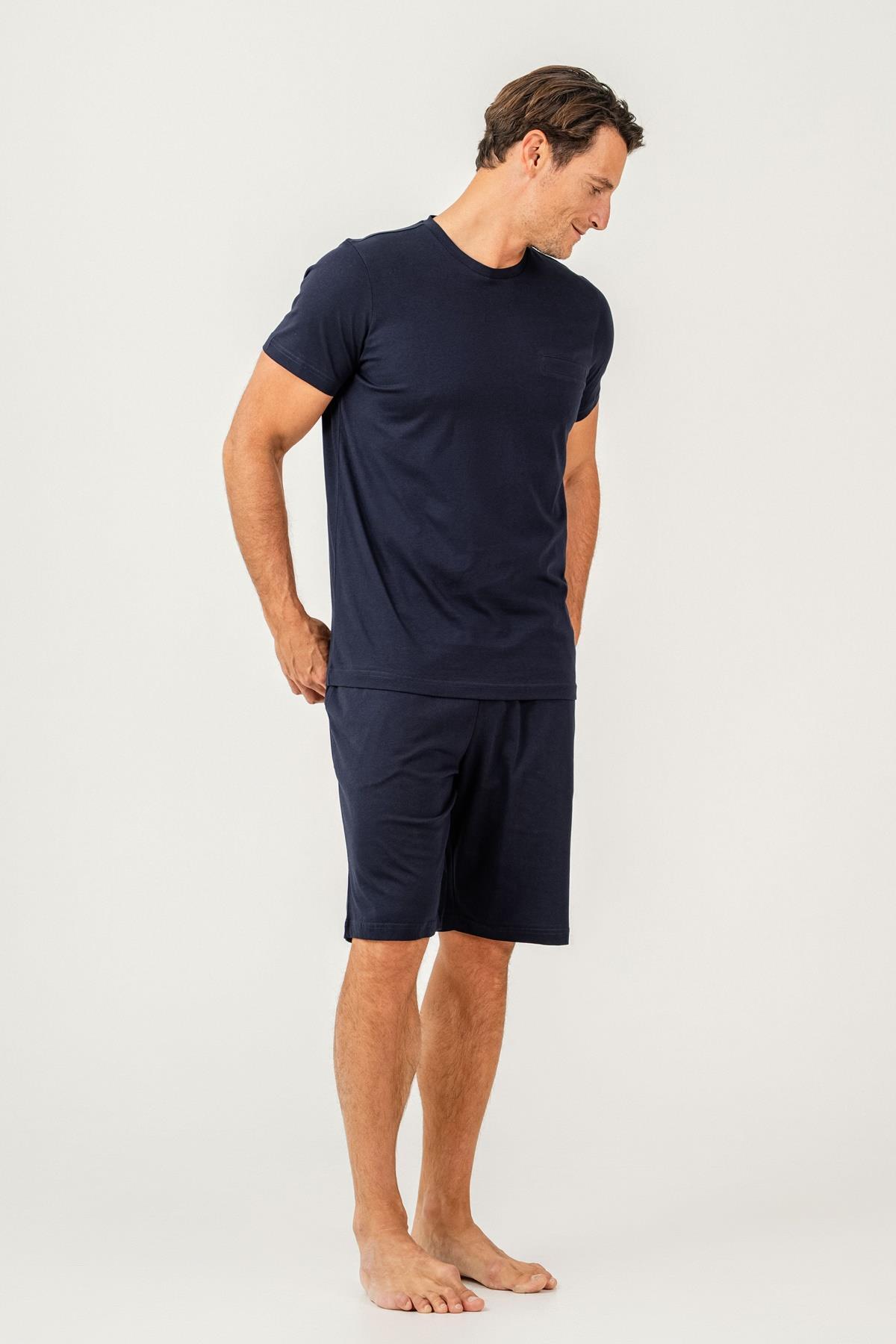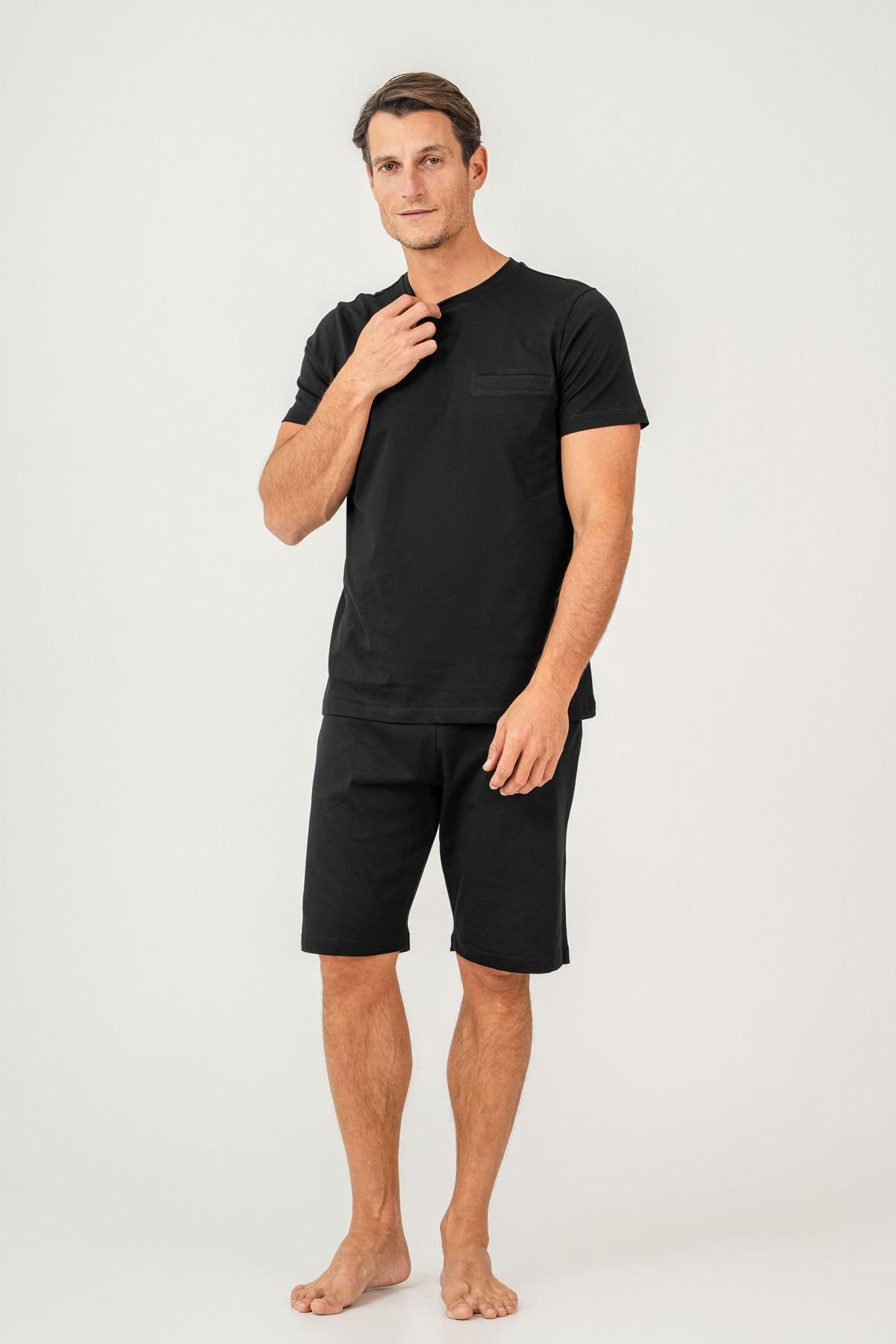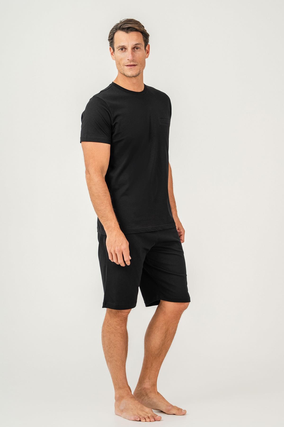 Erkek Tişört Şort Takım %100 Pamuk – Cepli Şortlu Rahat Ev & Günlük Kullanım Takımı