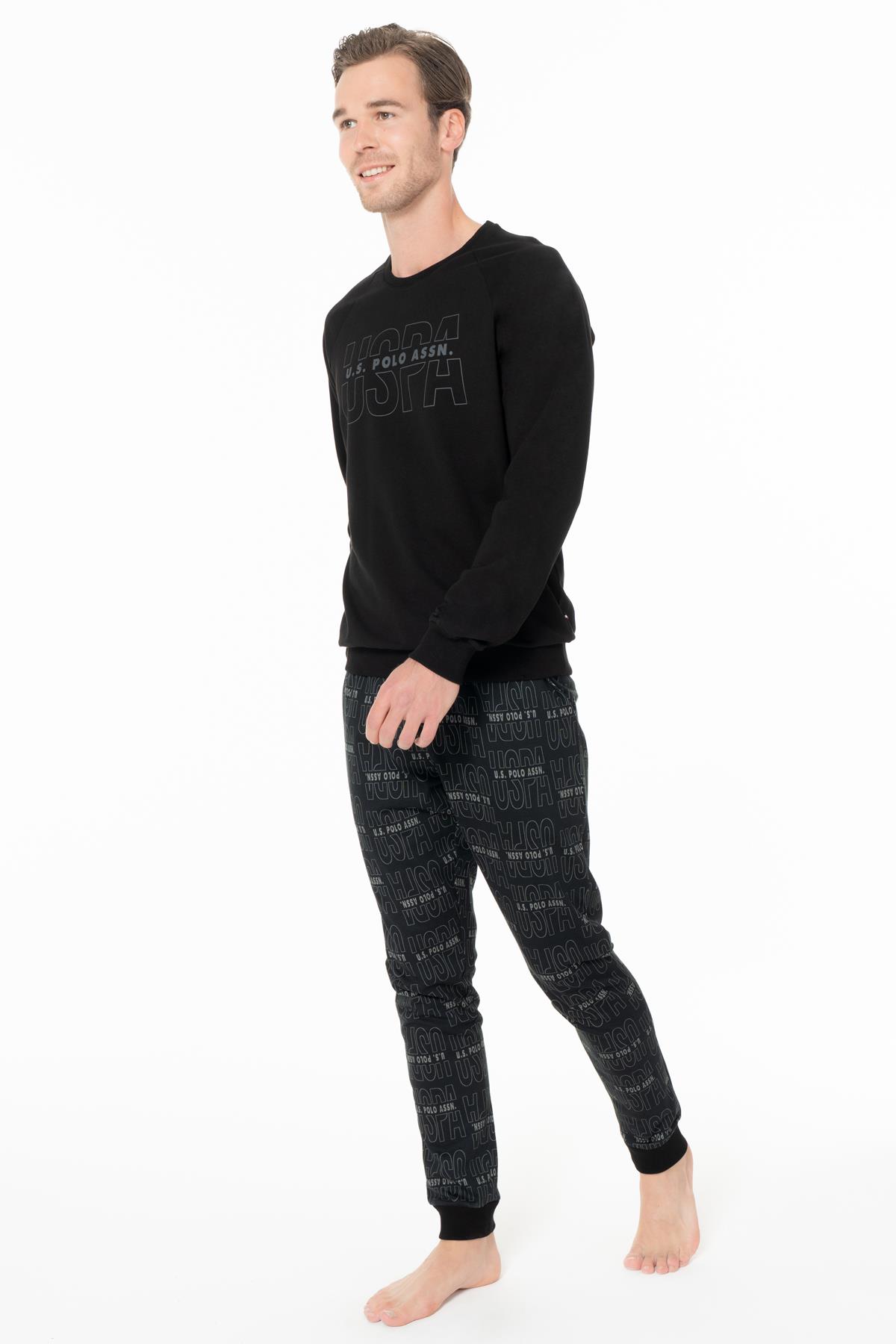 Erkek USPA Yazılı Ev Giyim Pijama Takım, %100 pamuk