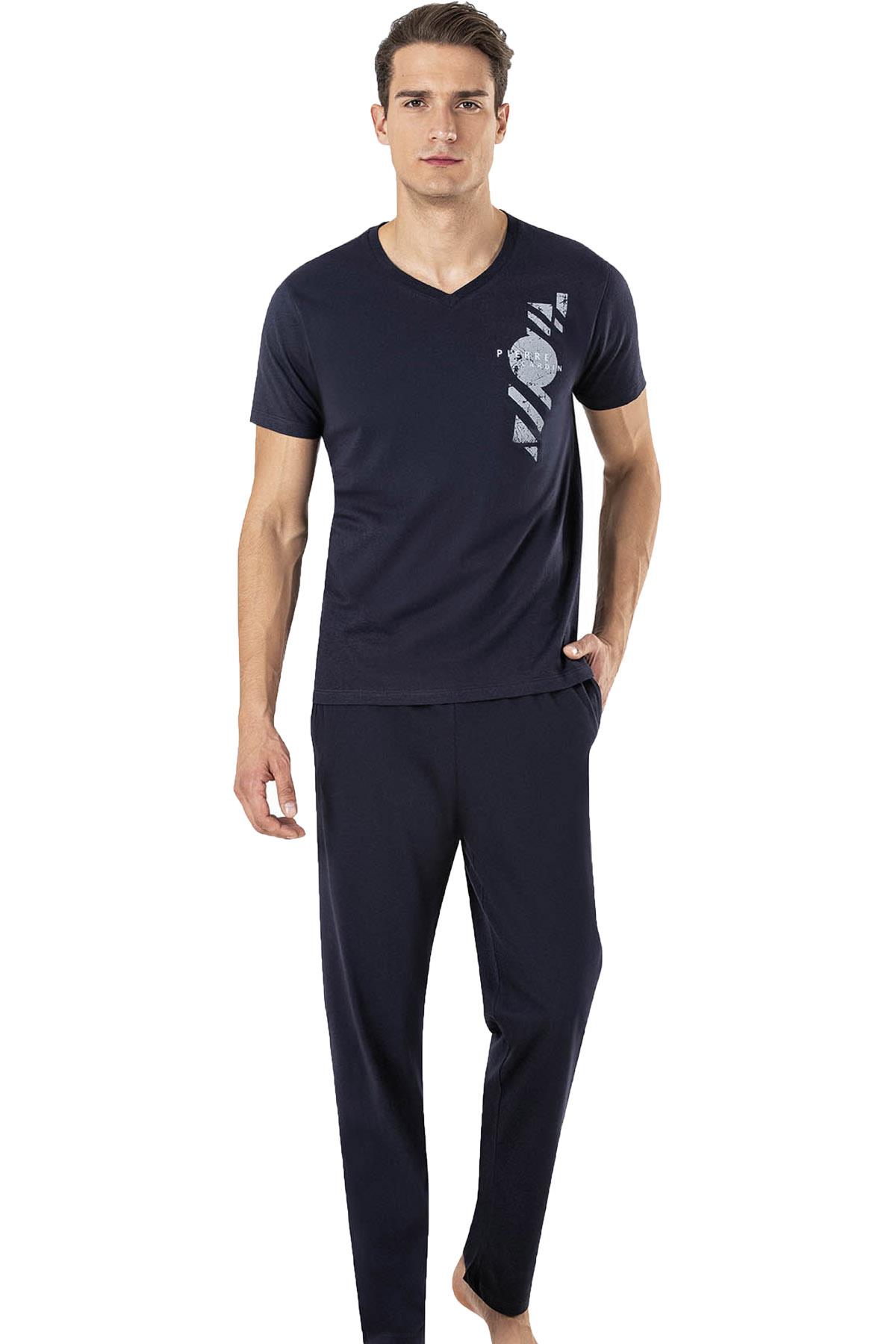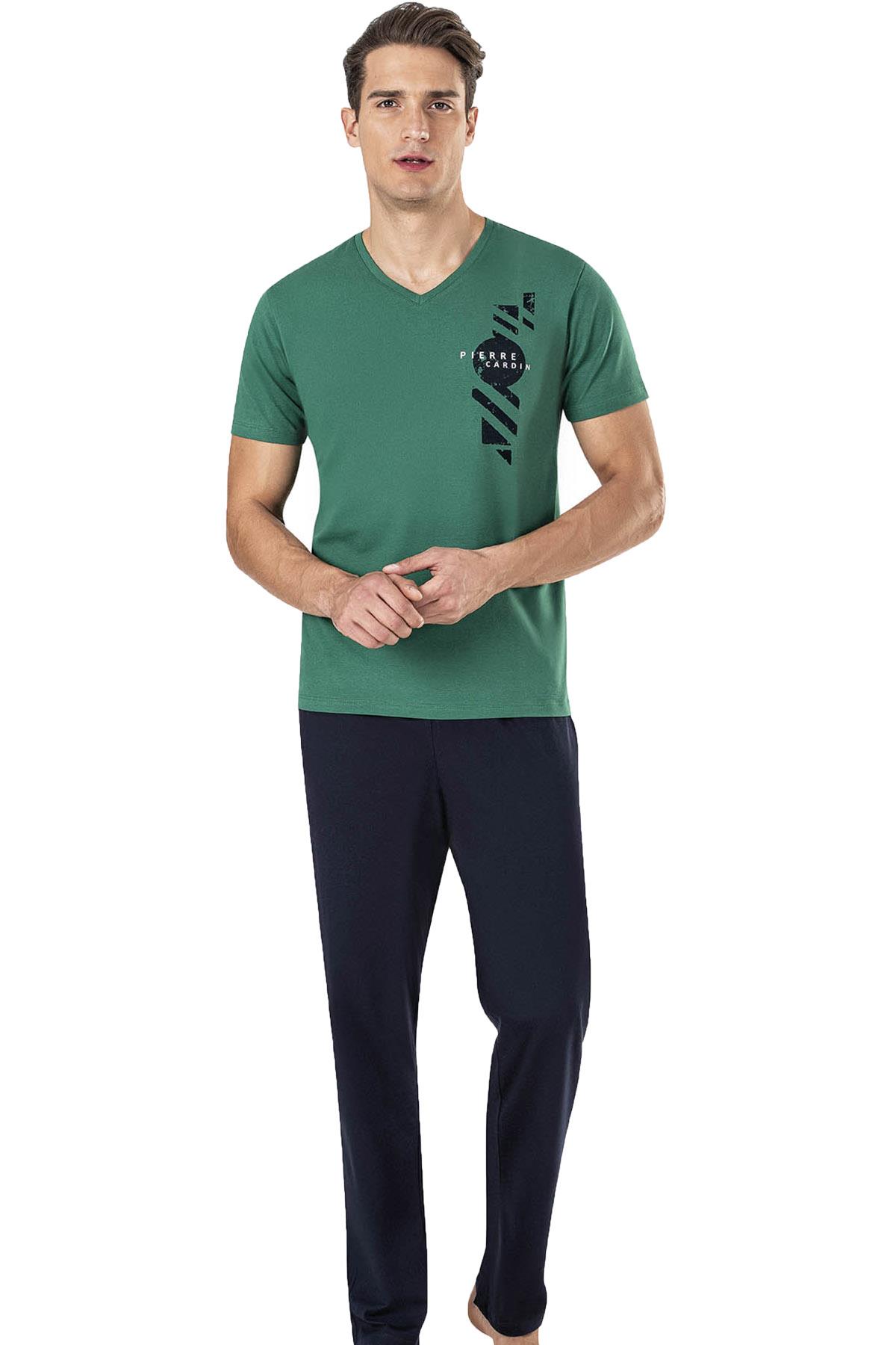 Erkek V Yaka %100 Pamuk Penye Pijama Takım