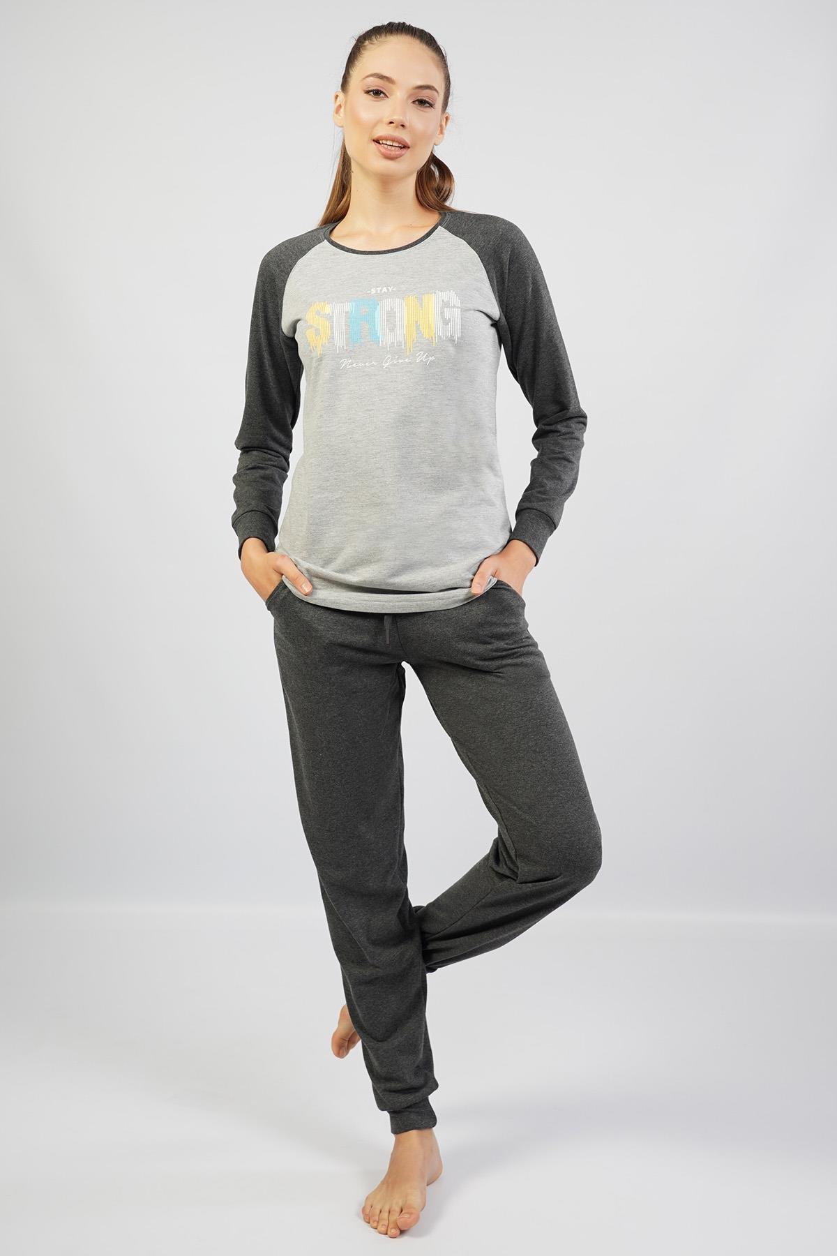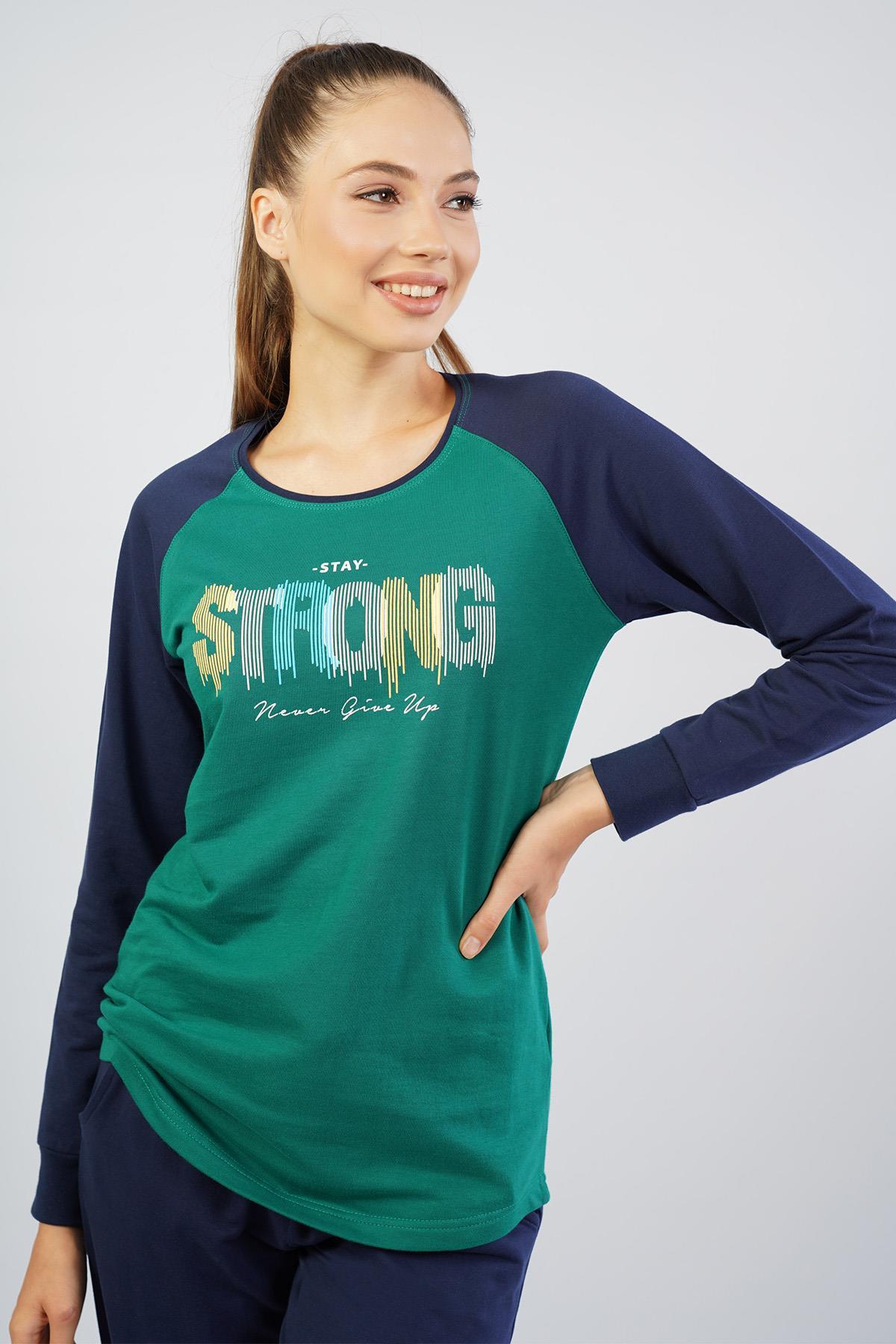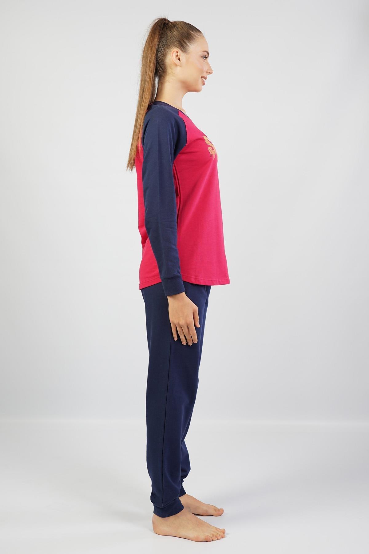 Kadın %100 Pamuk Pijama Takım, Uzunkol Dar Paça