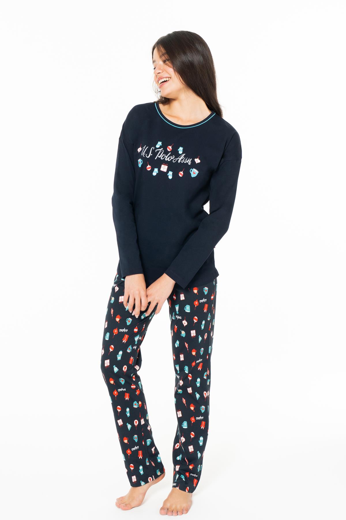 Kadın %100 Pamuklu Uzunkol Mevsimlik Ev Giyim Pijama Takım