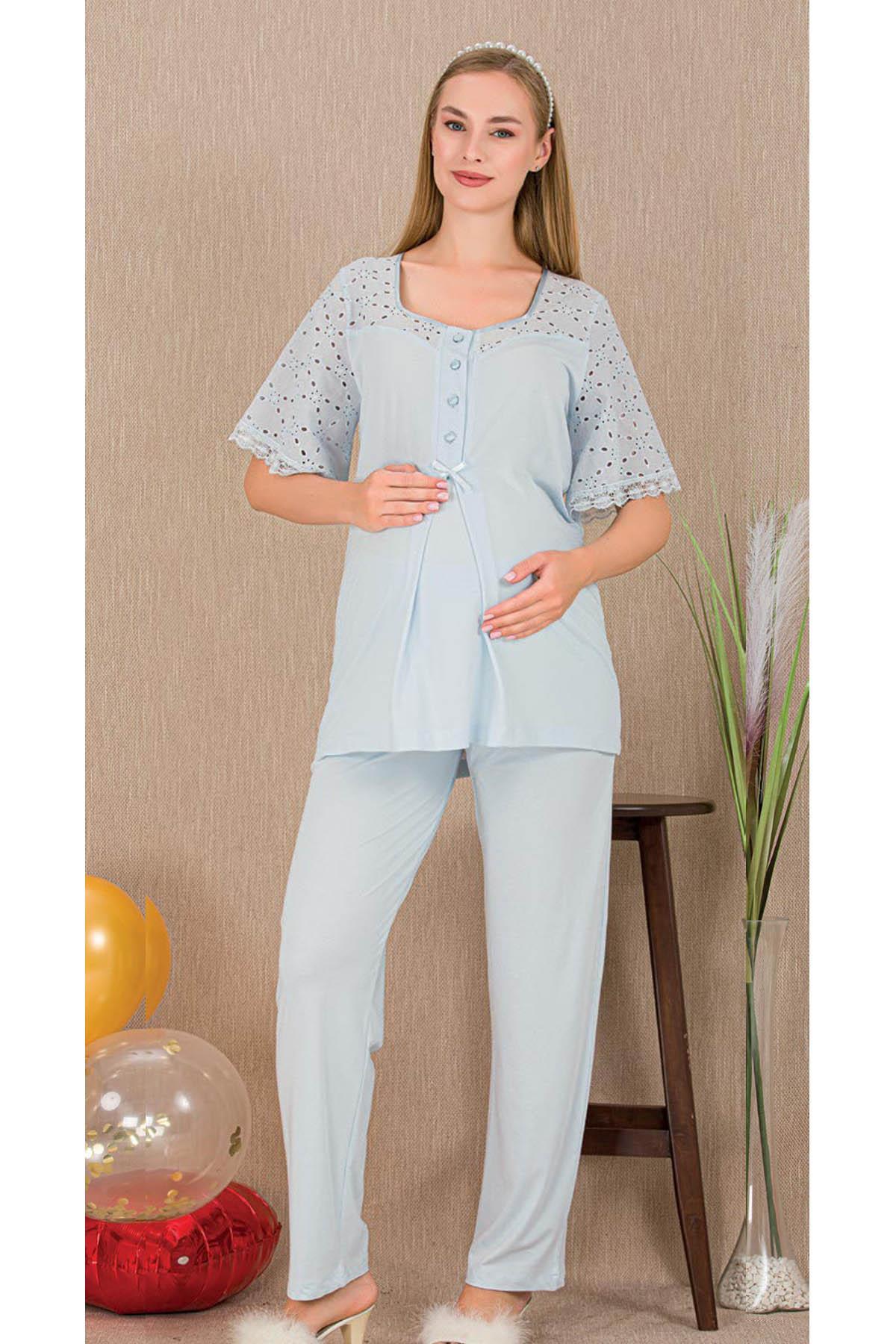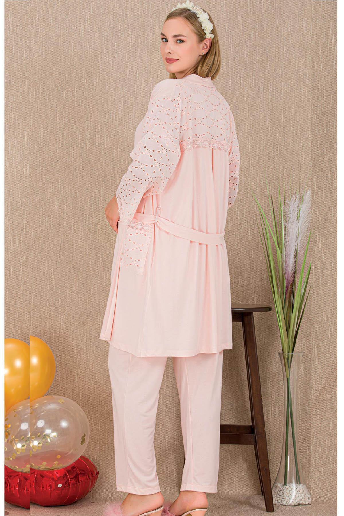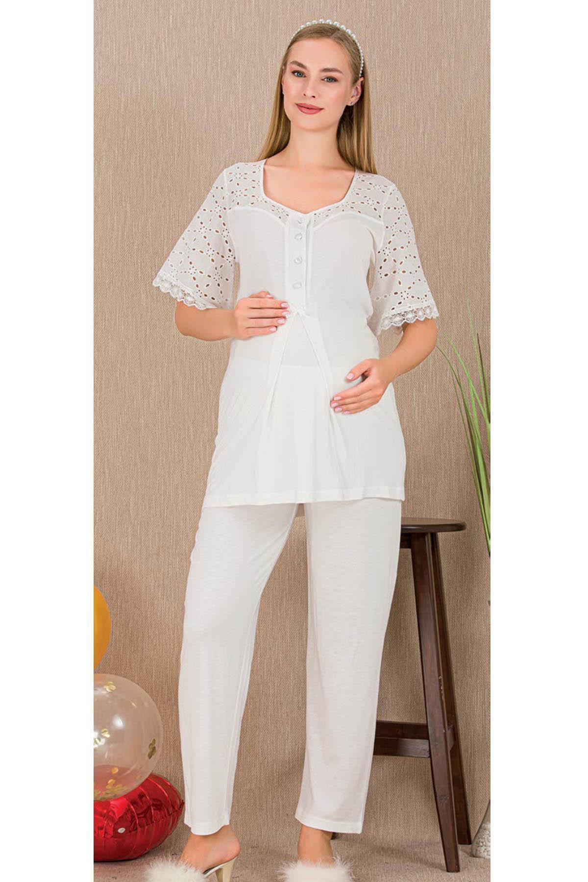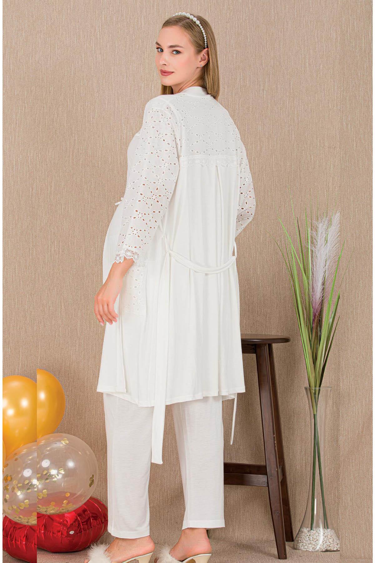 Kadın Güpür Detay 3'lü Hamile Lohusa Pijama Takım, Hamile Lohusa Sabahlık ve Pijama Takımı