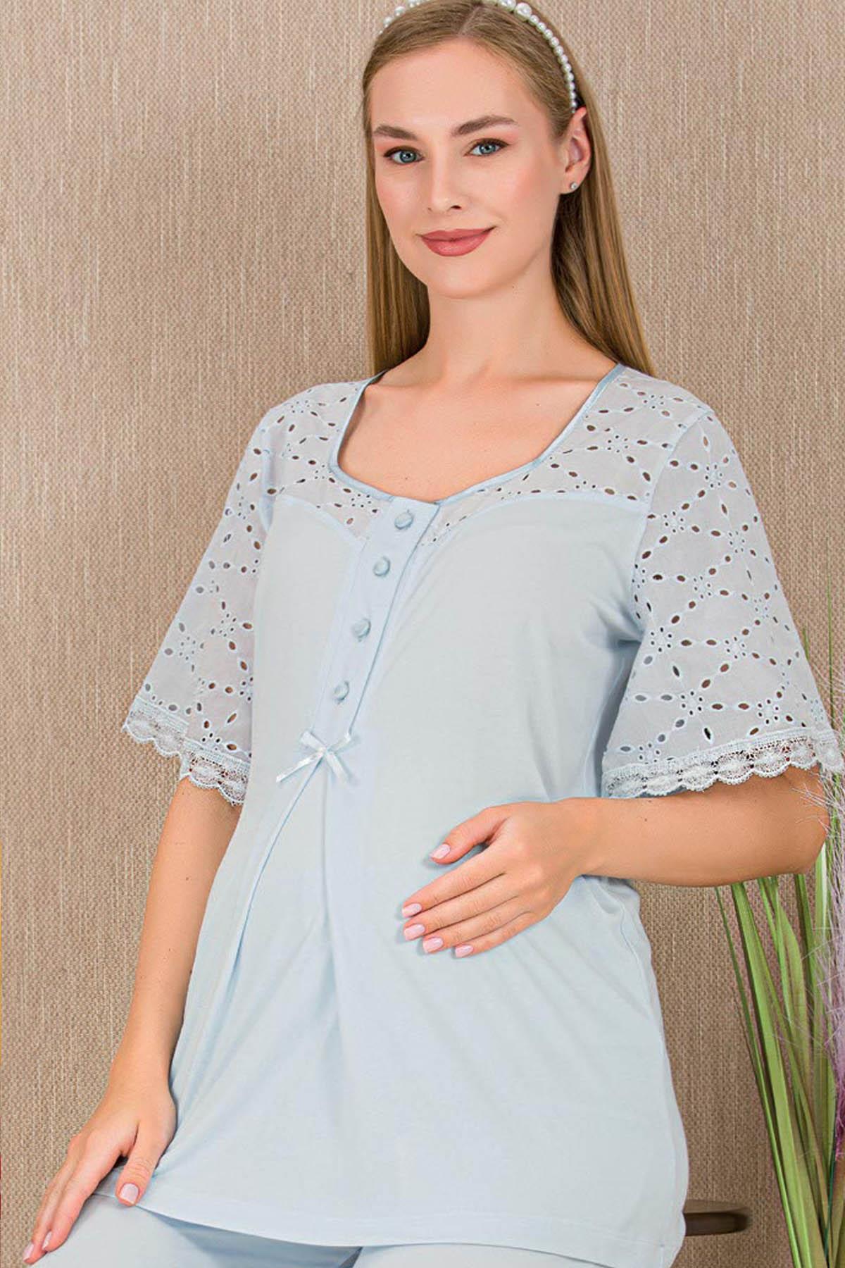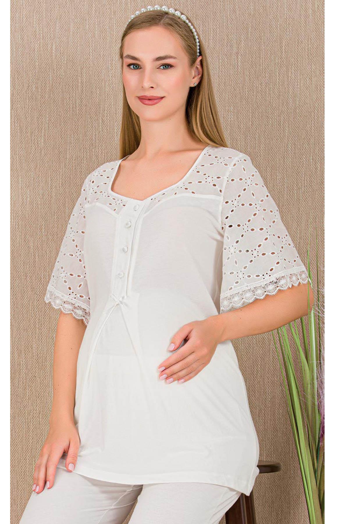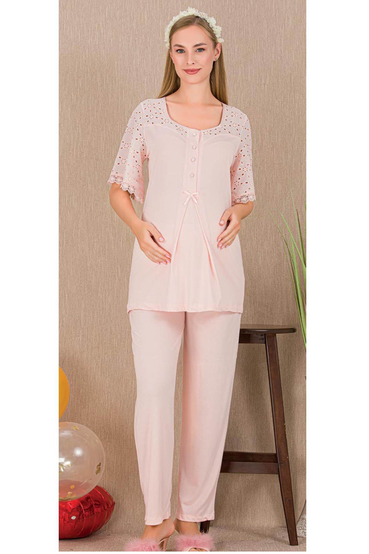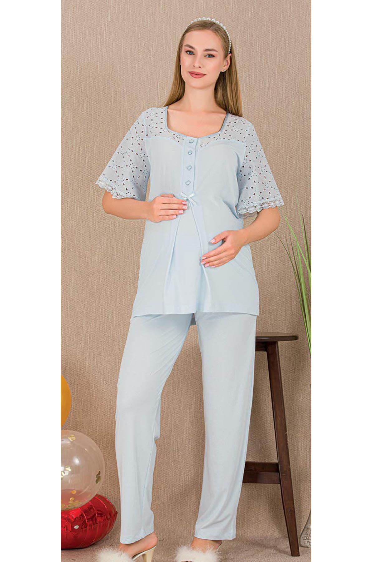 Kadın Güpür Detay 3'lü Hamile Lohusa Pijama Takım, Hamile Lohusa Sabahlık ve Pijama Takımı