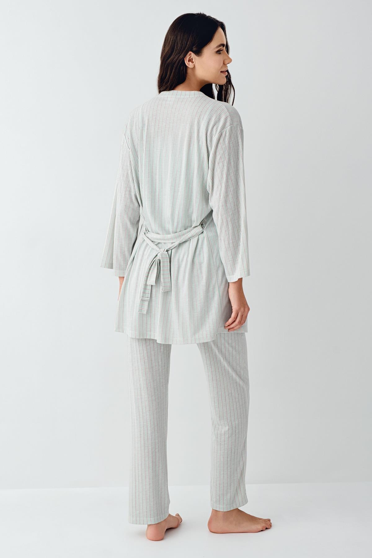 Kadın 3'lü Sabahlıklı Pijama Takım , %50 Pamuk %50 Modal