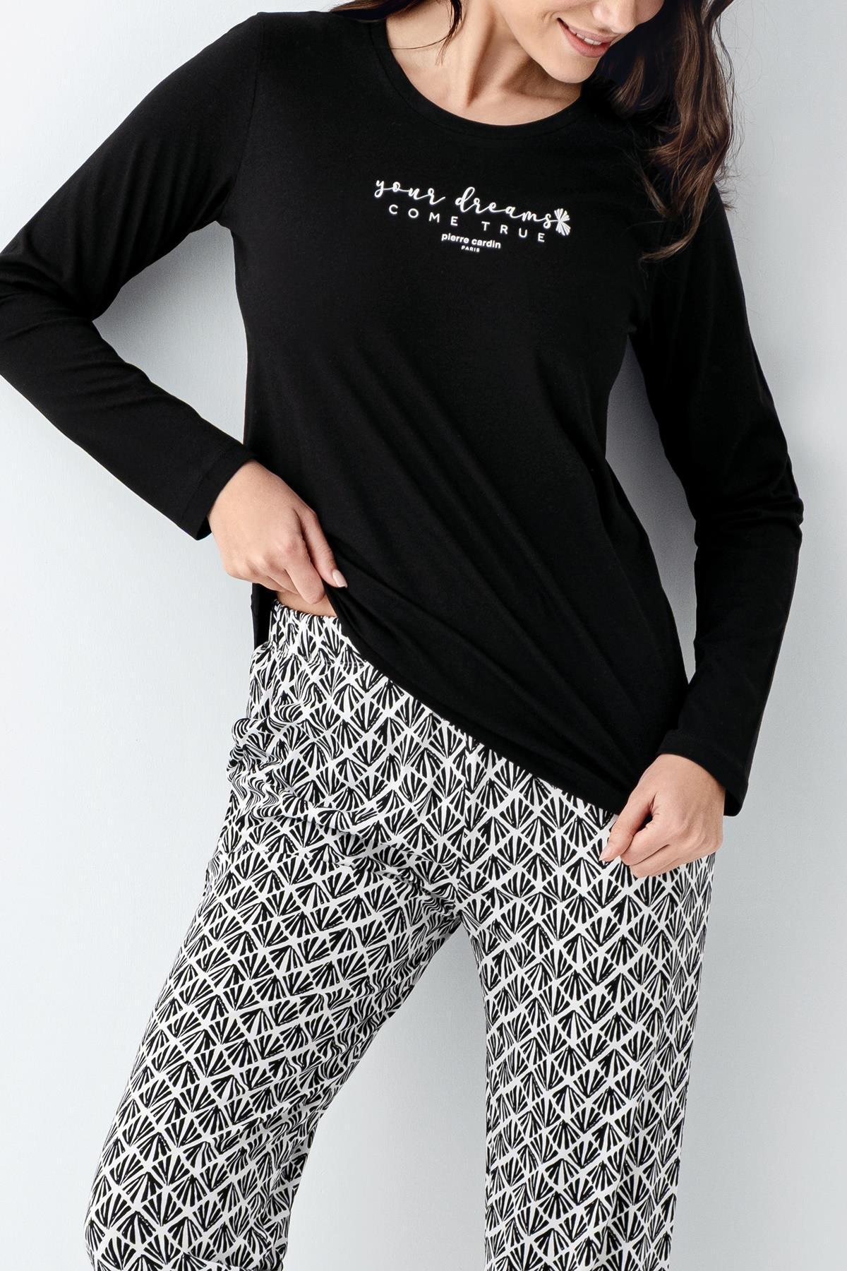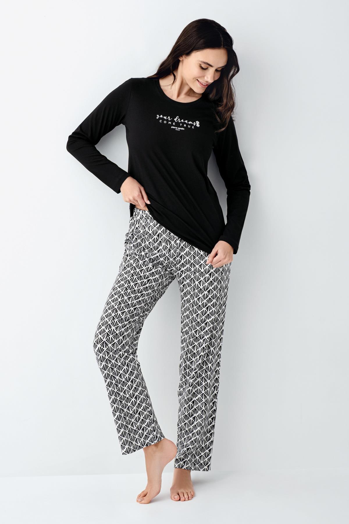 Kadın %50 Modal %50 Pamuklu Siyah Mevsimlik Pijama Takım, Cep Detaylı