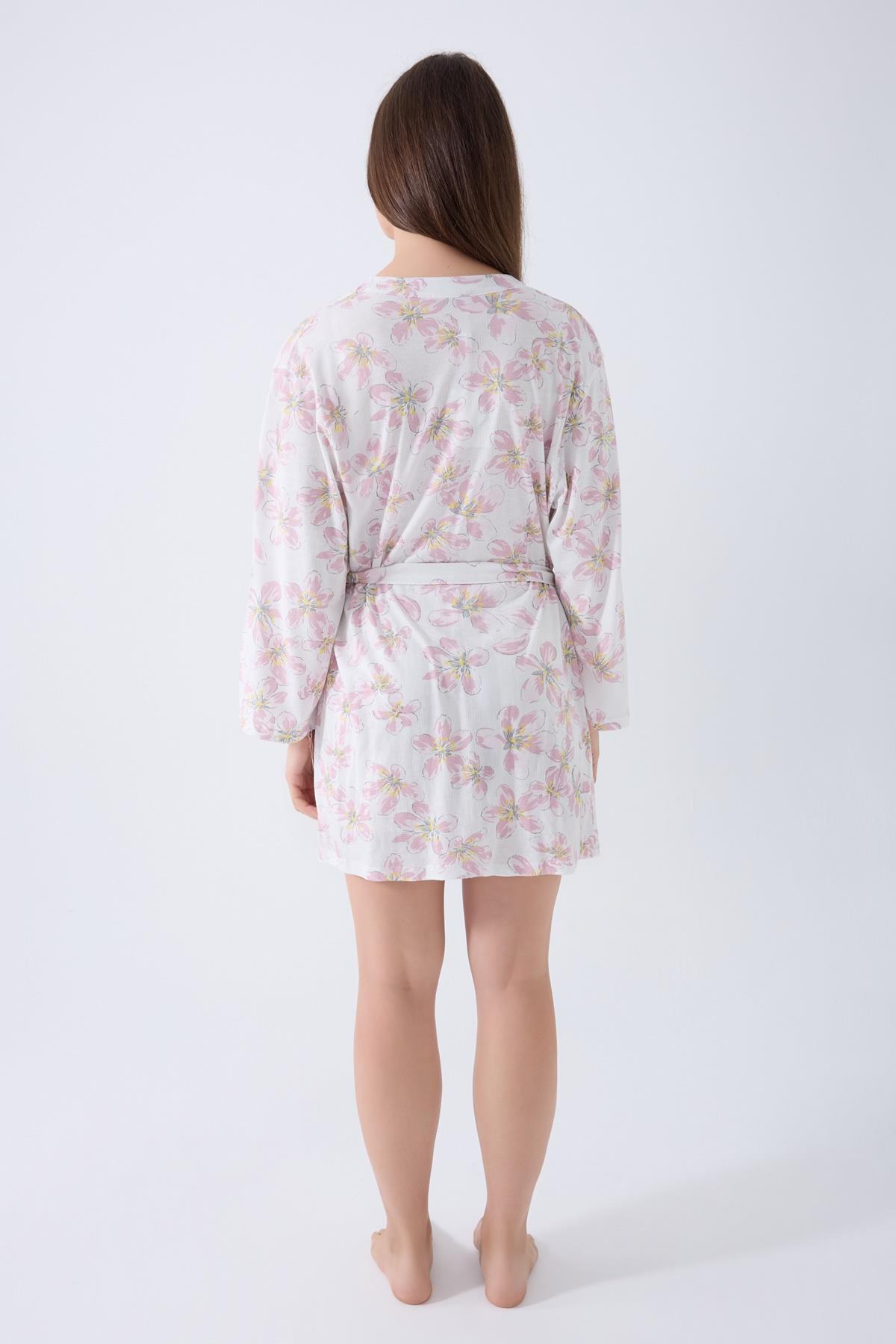 Set içeriğinde yer alan dantelli bralet, zarif ve feminen bir görünüm sunarken; rahat kesim şort ve çiçek desenli sabahlık takımı tamamlar. Evde, tatilde, sabah kahvesinde ya da dinlenme anlarında hem şık hem konforlu bir stil arayanlar için idealdir.