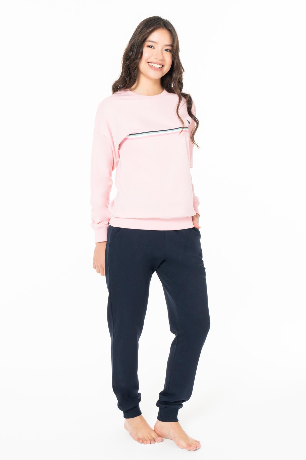 Kadın Alt Üst Takım, 2 iplik, Kol ve paça manşetli, Uzunkol Bisiklet Yakalı ve Cepli,, LAcivert üst %100 pamuk, alt %50 pamuk %50 polyamid, pembe %100 pamuk, mint 100 pamuk