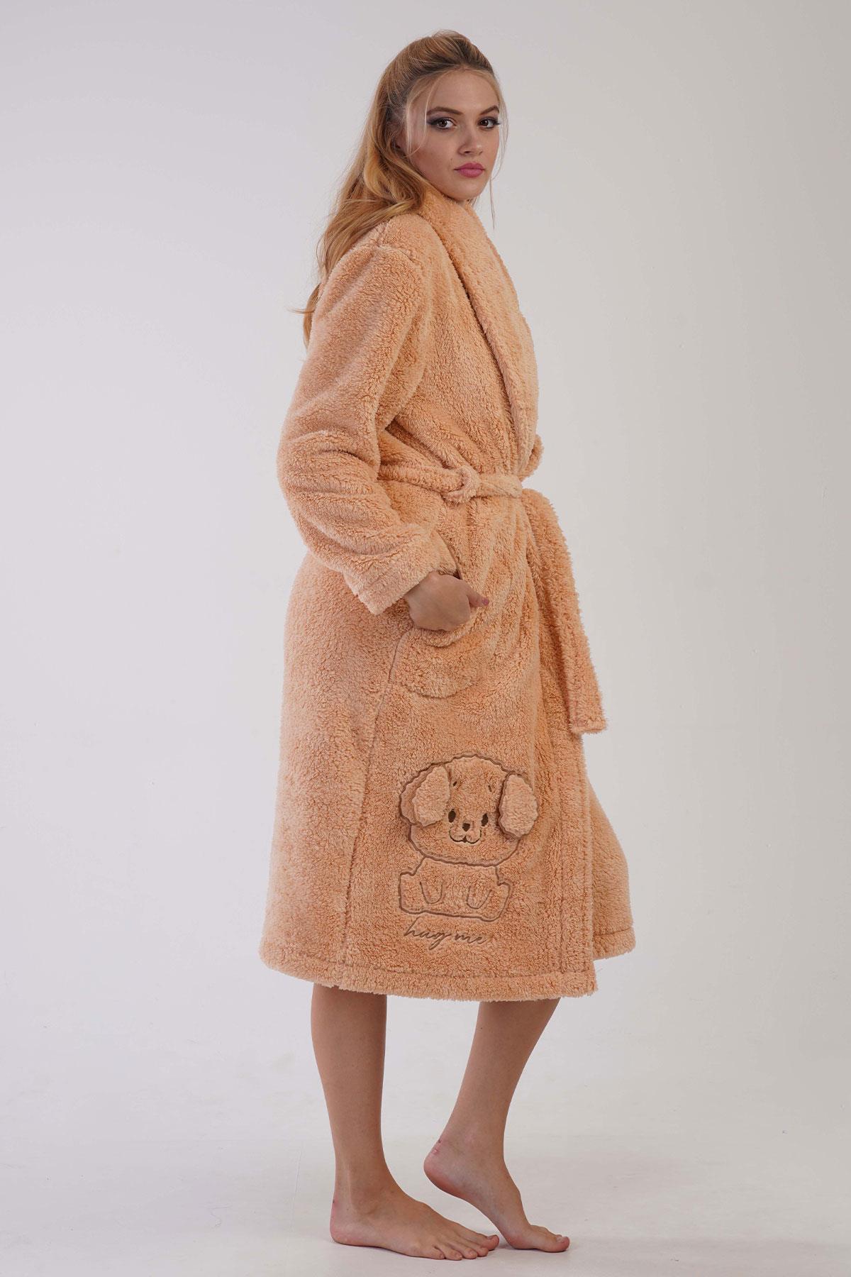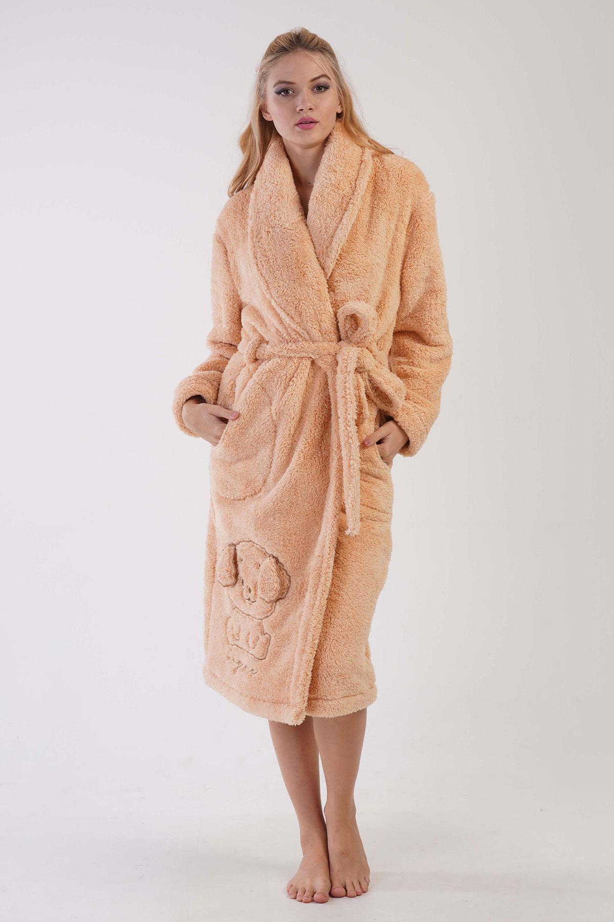 Kadın Bej Süper Yumuşak Welwelsoft Sal Yaka Uzun Kol Uzun Sabahlık