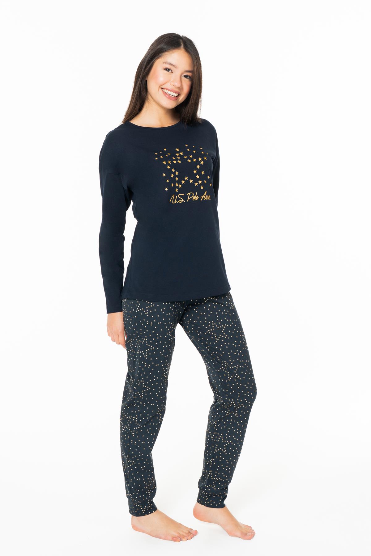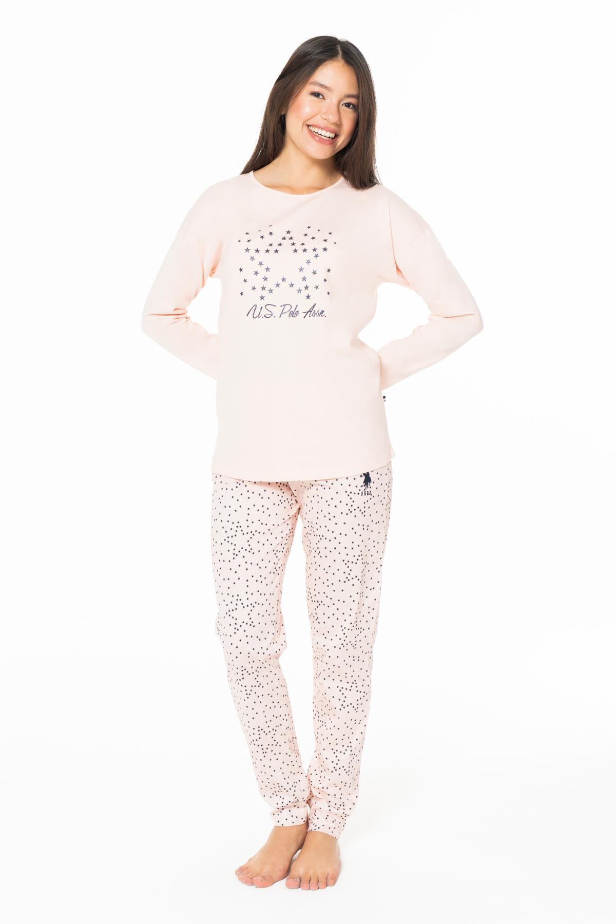 Kadın Bisiklet Yaka Ev Giyim, Pijama Takım, Uzunkol, %100 Pamuk
