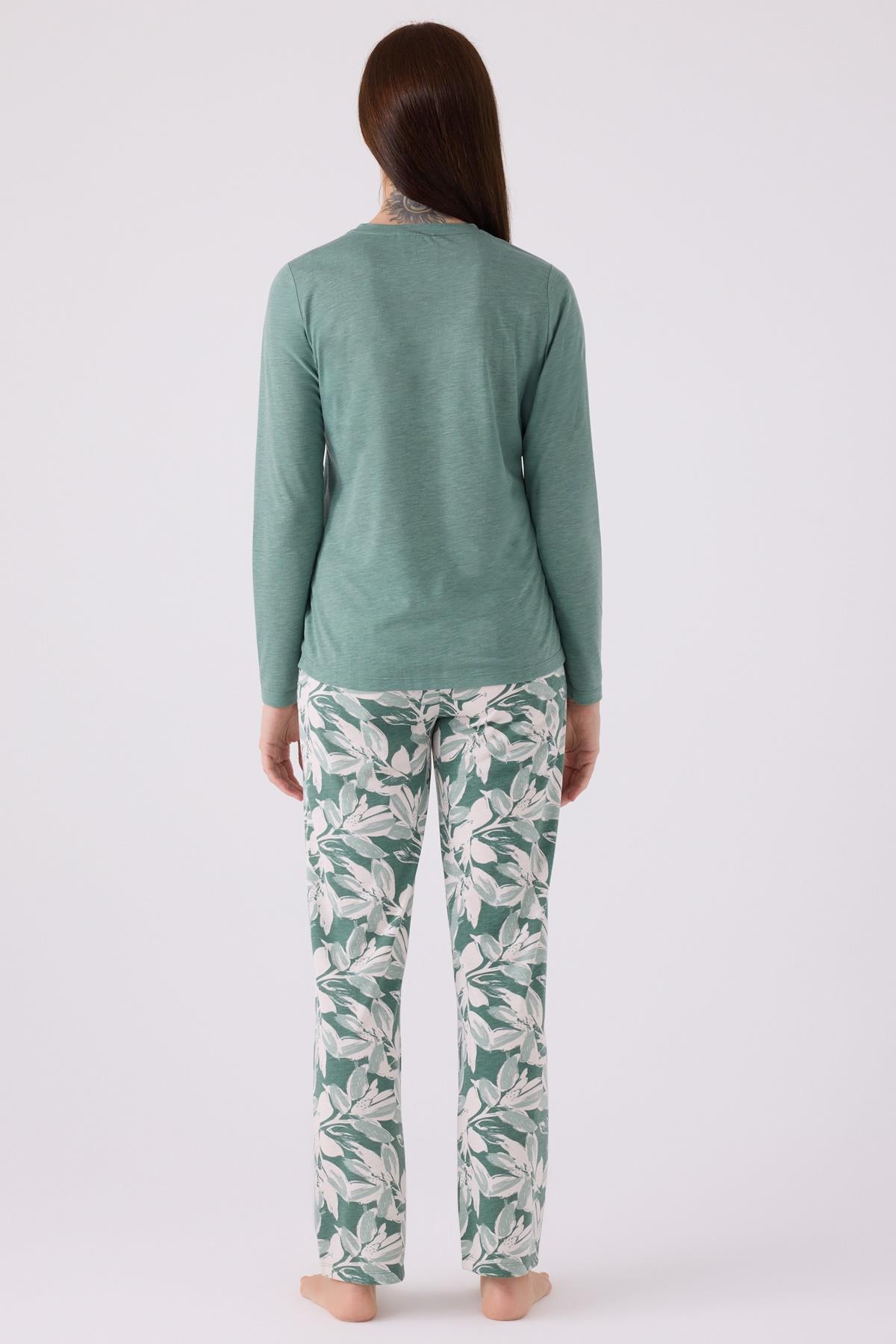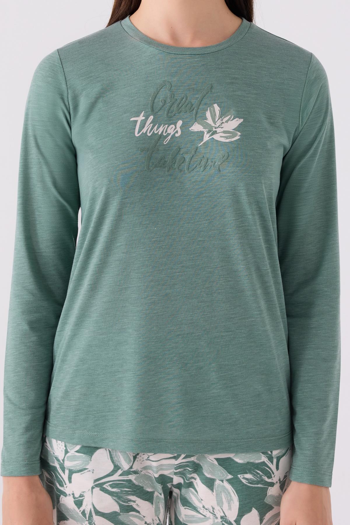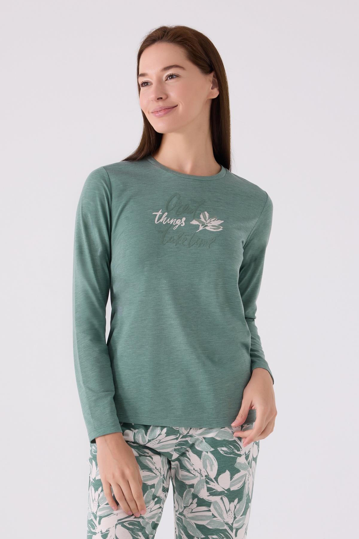 Kadın Bisiklet Yaka Uzunkol Pijama Takım, Viskon Dokuma, Büyük Beden Kadın Pijama Takım