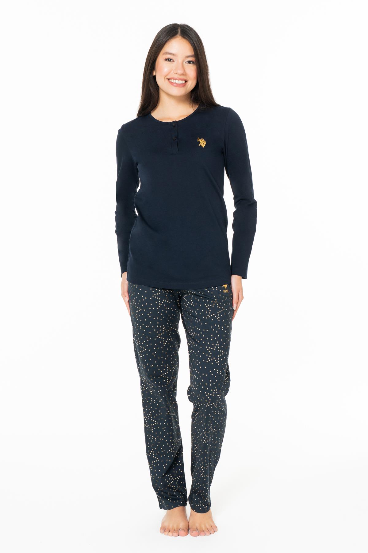 Kadın Düğmeli Yaka Ev Giyim, Pijama Takım, Uzunkol, %100 Pamuk