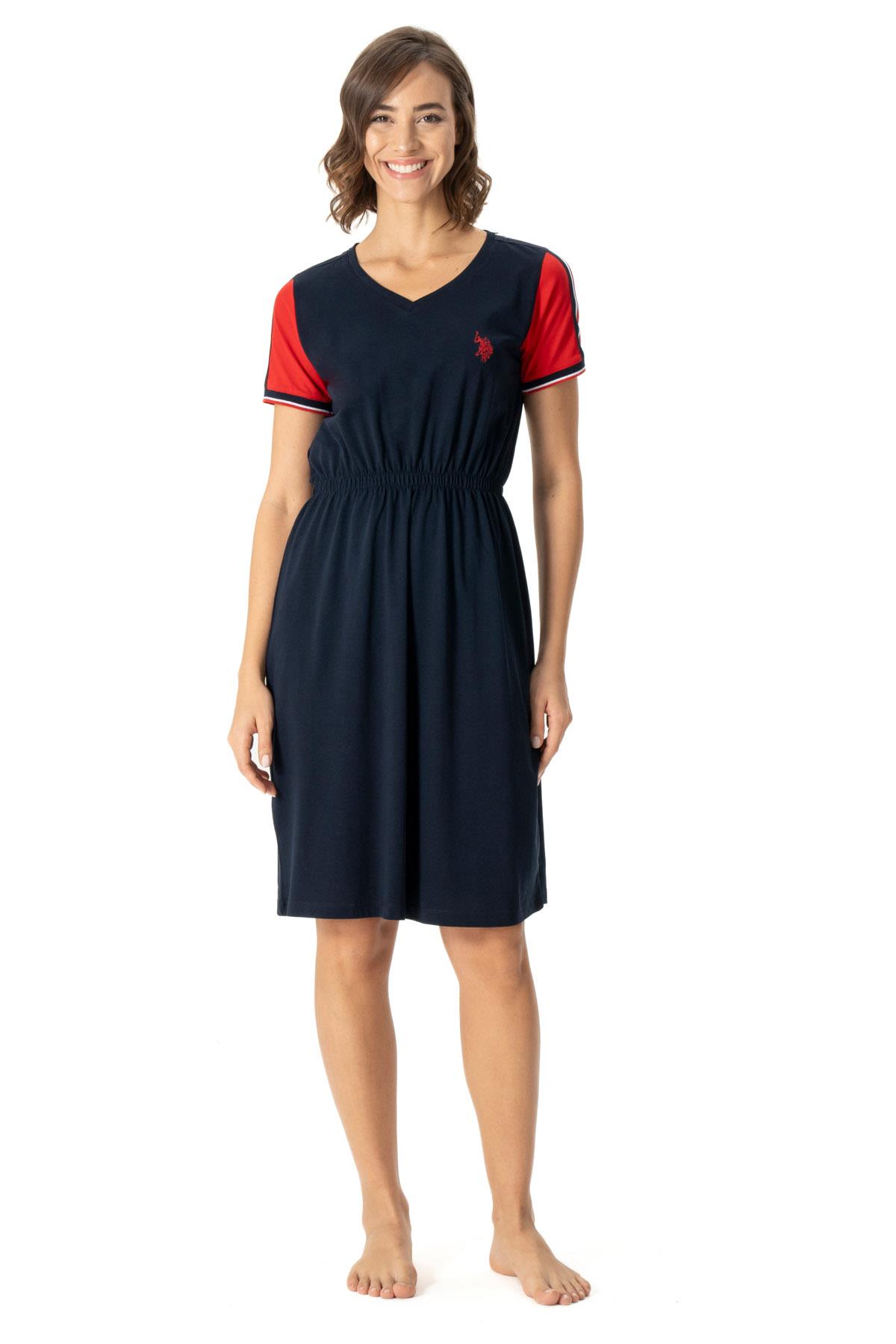 Us Polo %100 Pamuk, Kadın Geniş V Yaka, Kısa Kol, Midi Gecelik