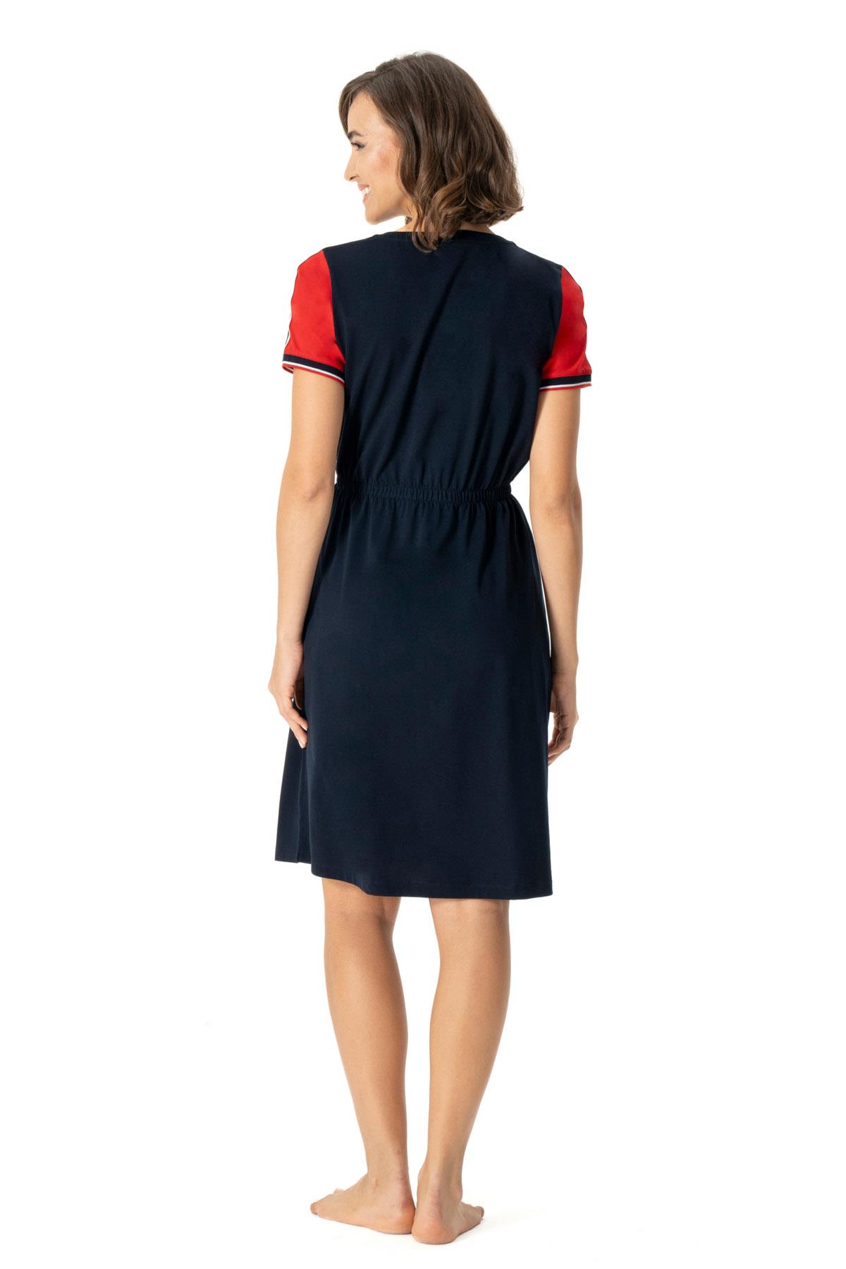 Us Polo %100 Pamuklu, Önü Çiçek Baskılı, Arkası Düz Lacivert, Beli İpli Gecelik