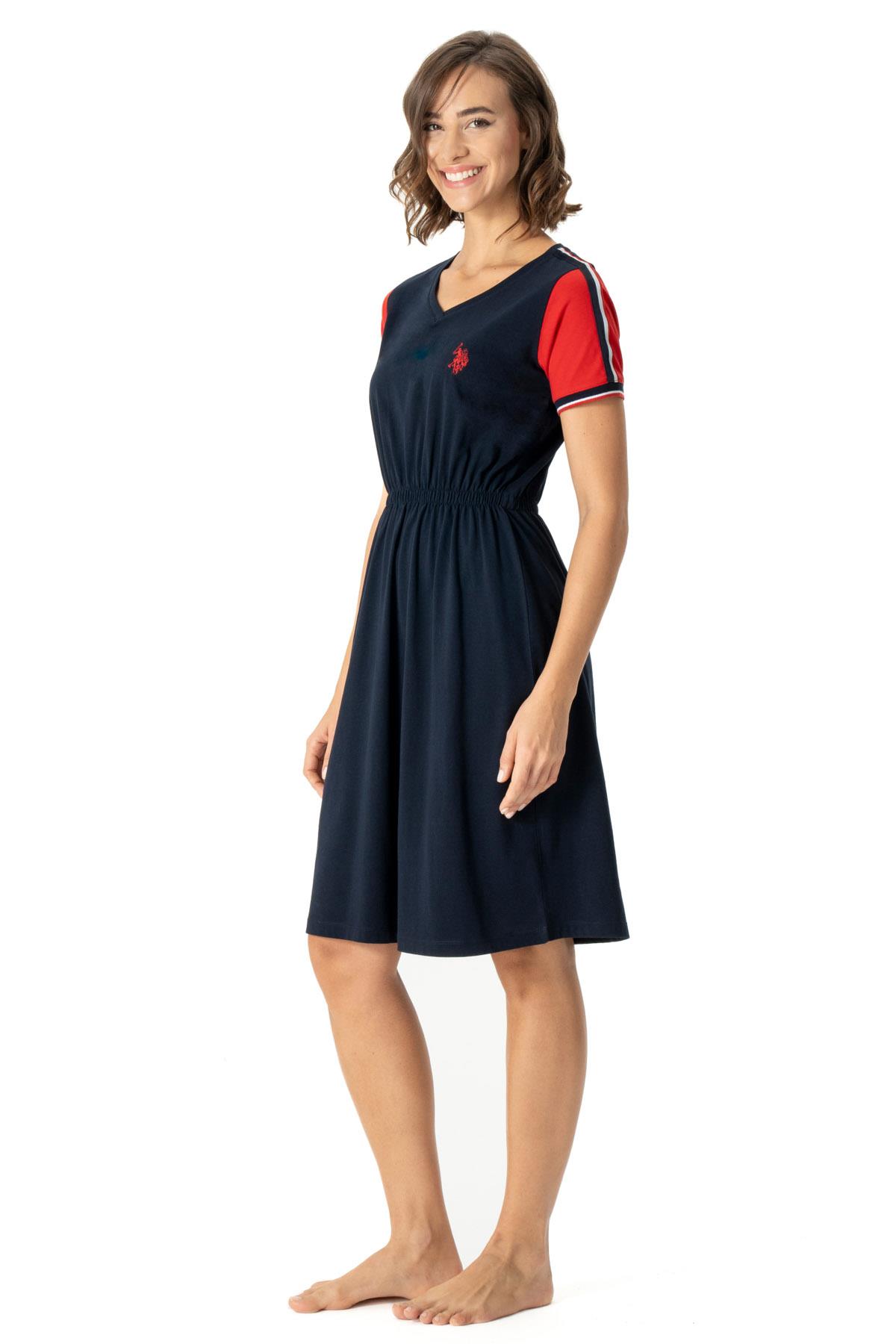 Us Polo Kadın, V Yaka, Kısa Kol, Midi Gecelik