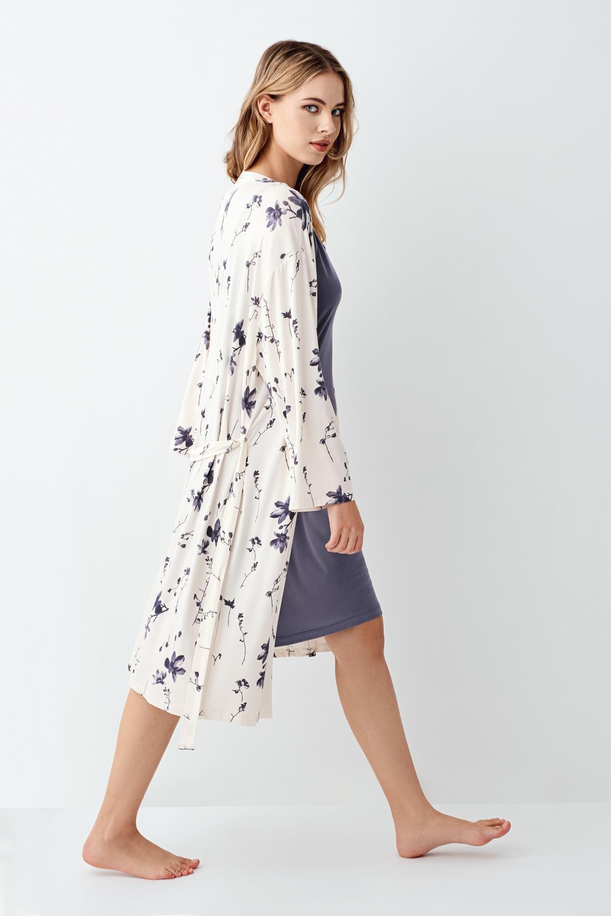Kadın Gecelik Sabahlık Takım, Desenli Sabahlık, Düz Gecelik, %50 modal %50 pamuk