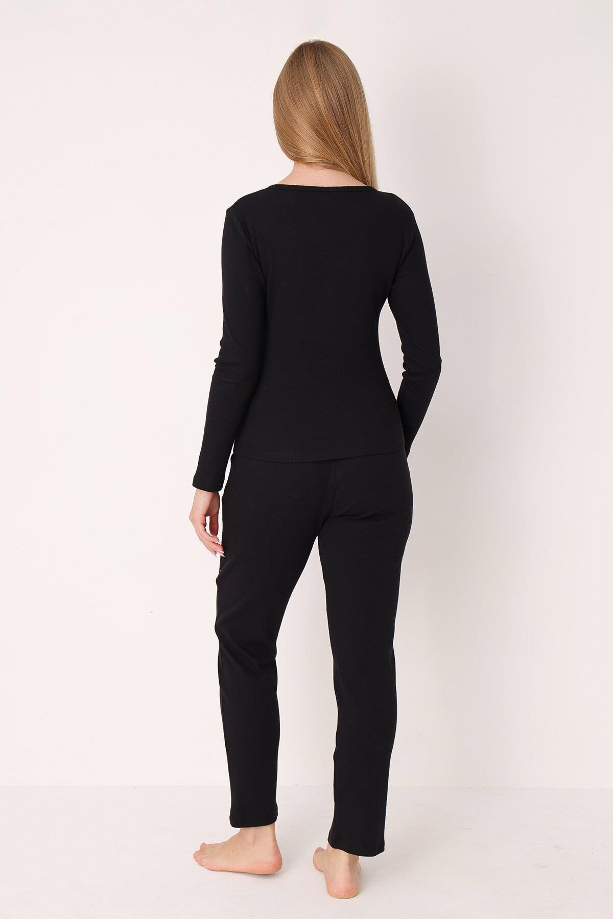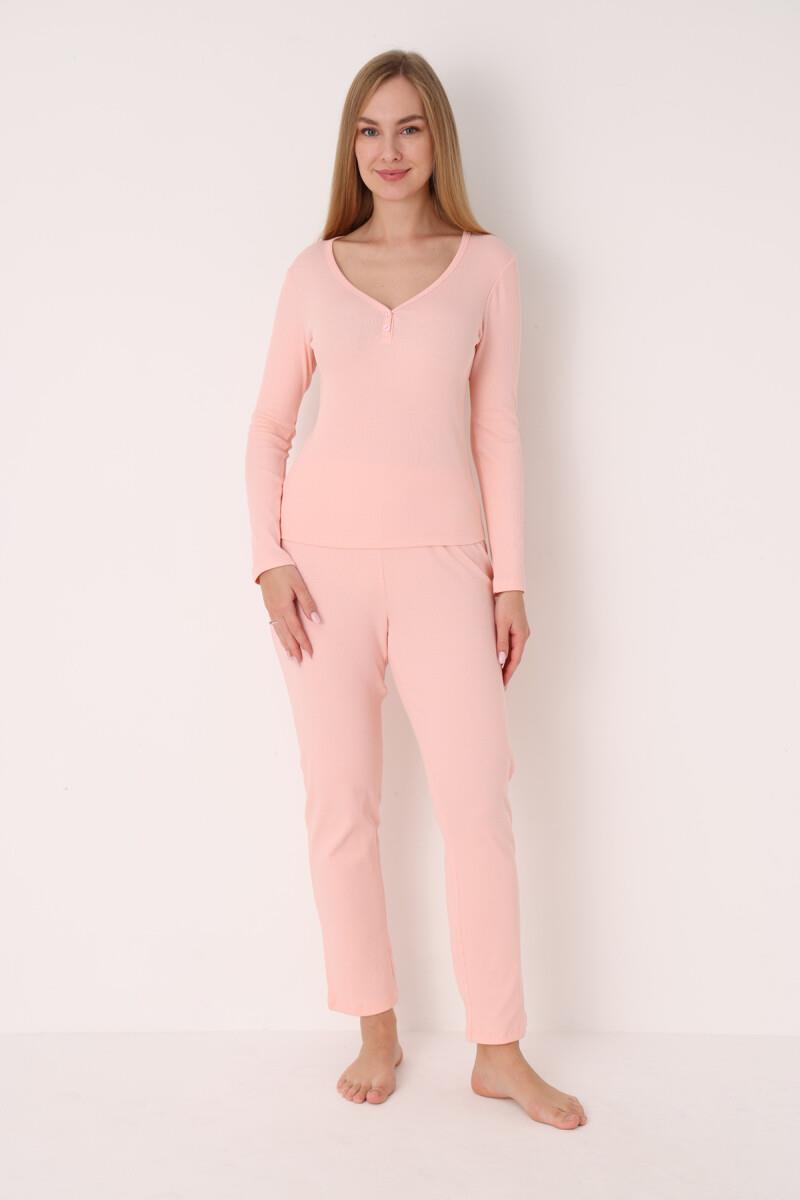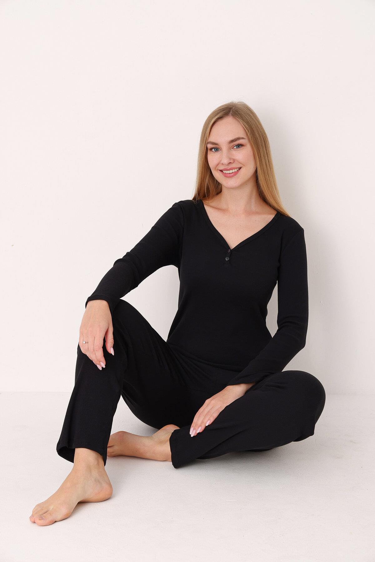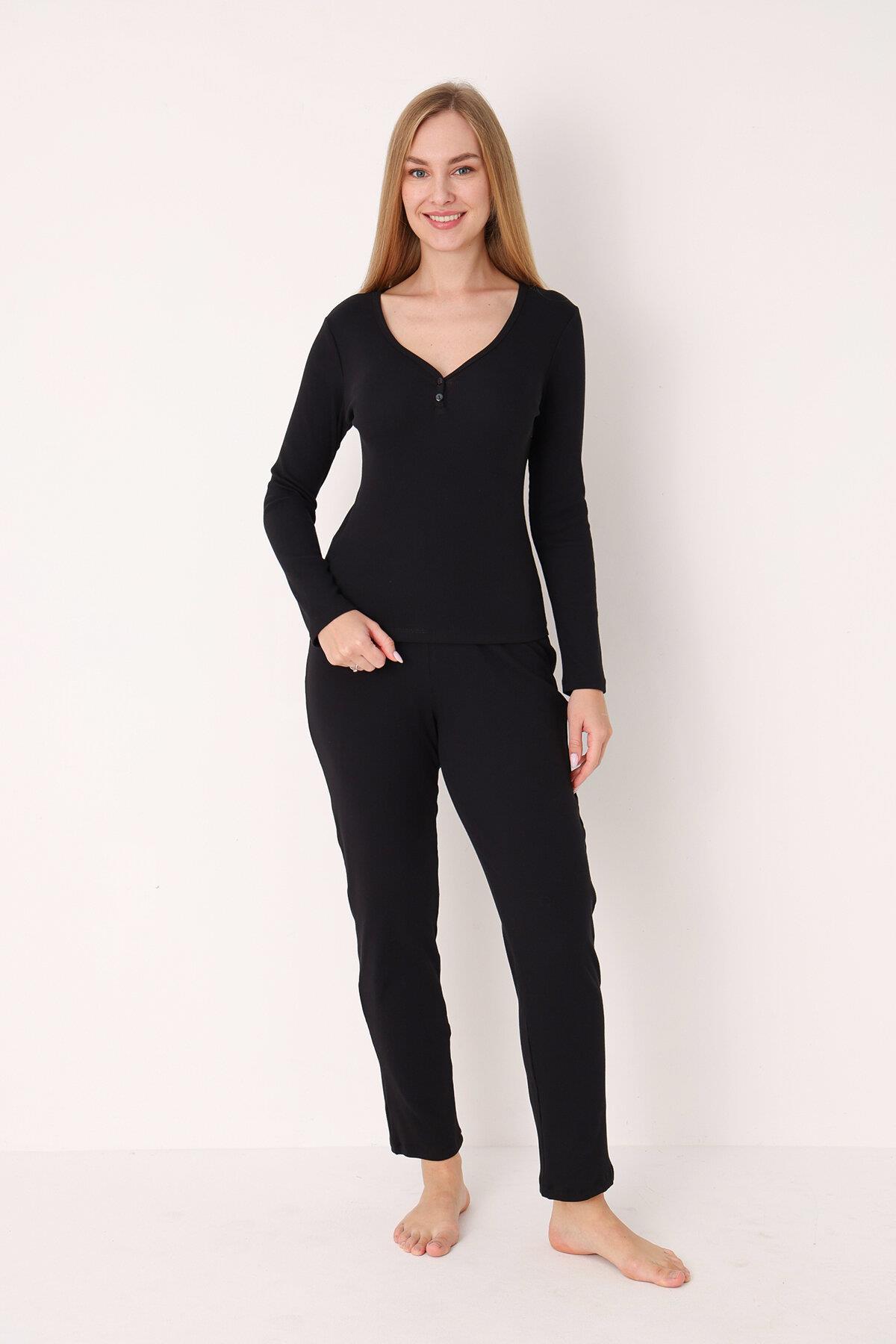 Kadın Geniş Yakalı Uzunkollu Mevsimlik Düz Renk Ev Giyim Pijama Takımı, %100 Pamuklu