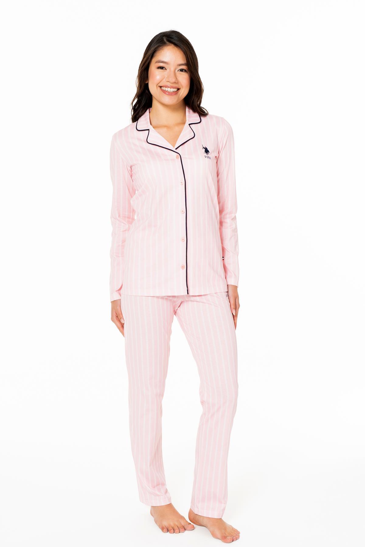 Kadın Gömlek Yaka Ev Giyim Pijama Takım, %100 Pamuk
