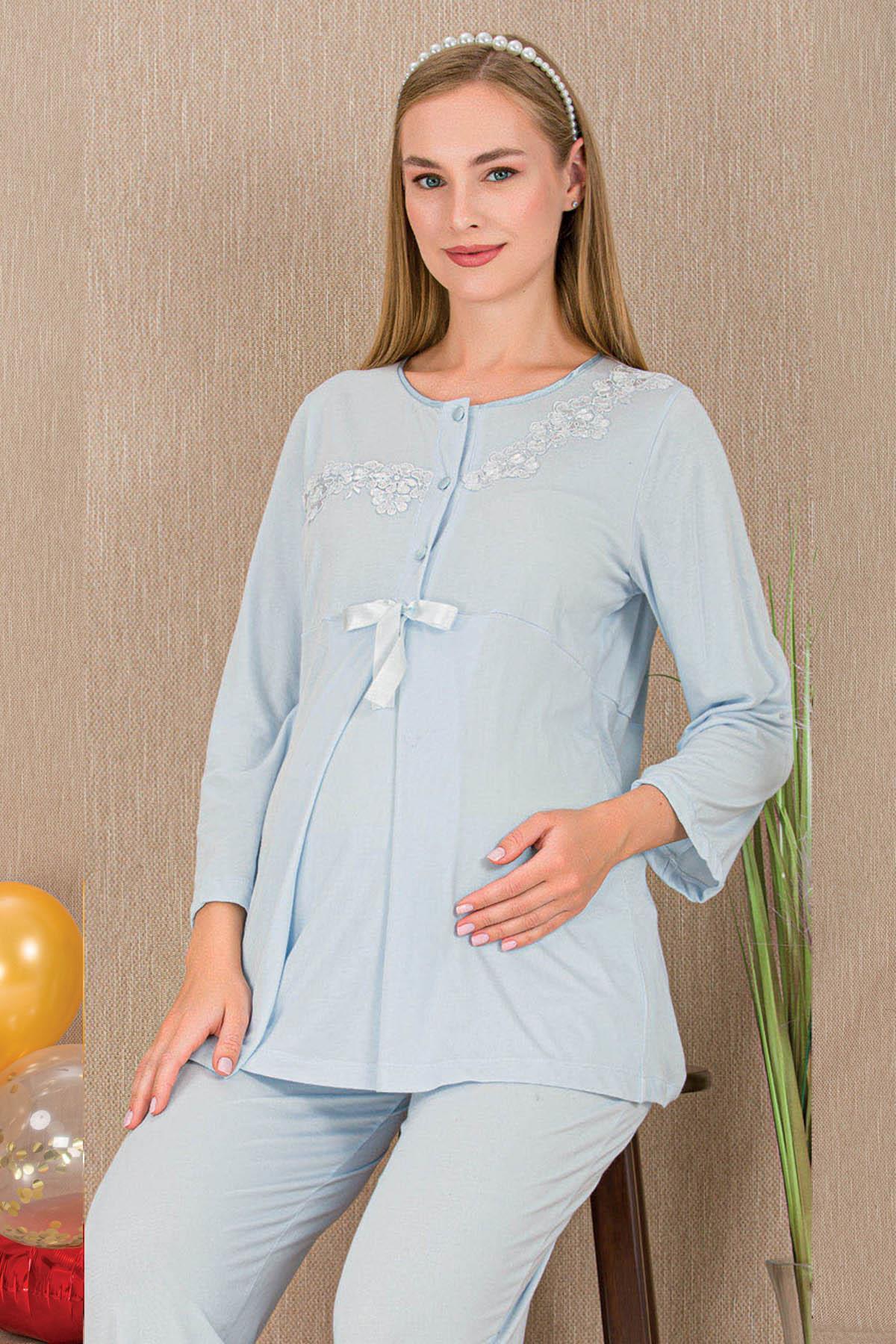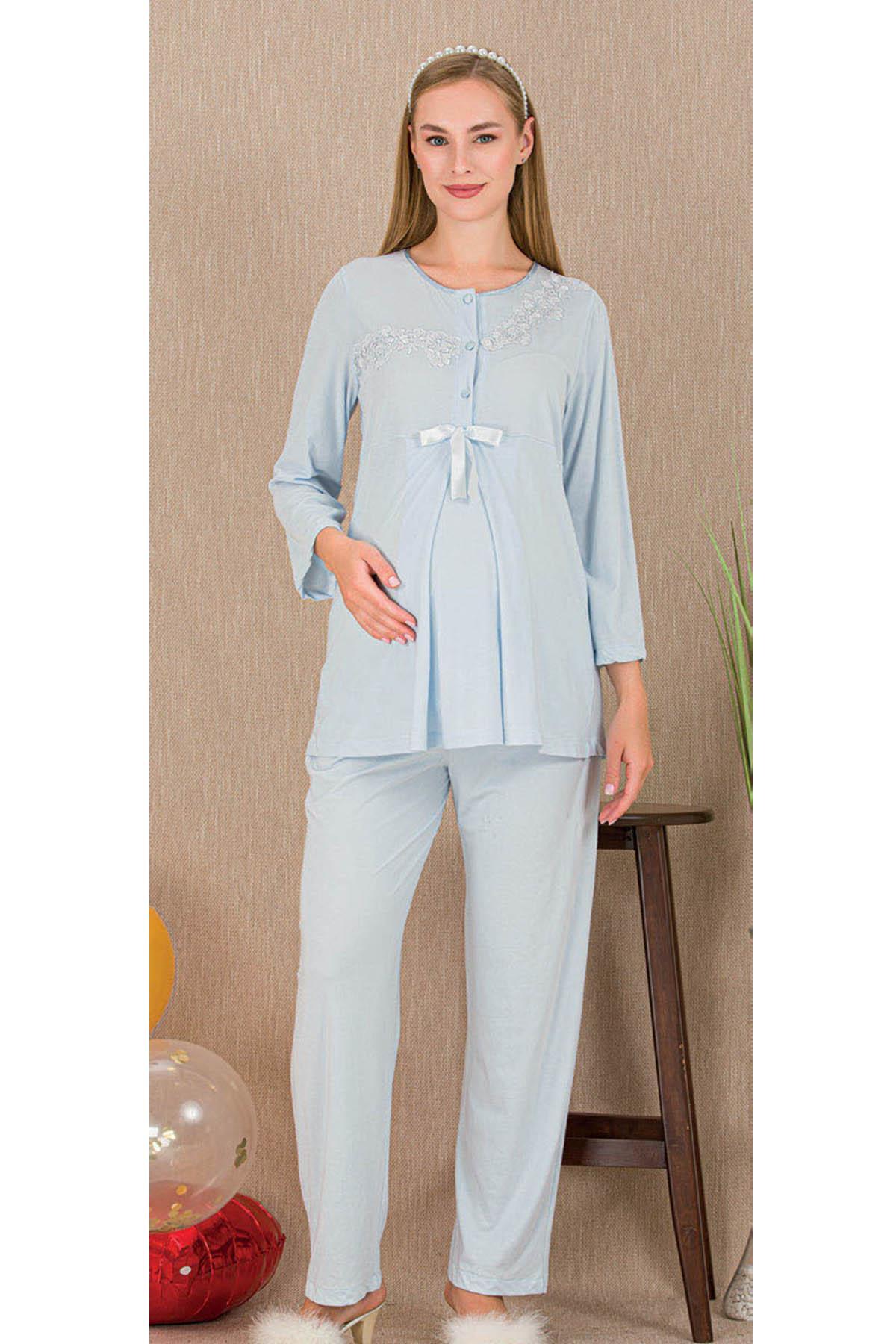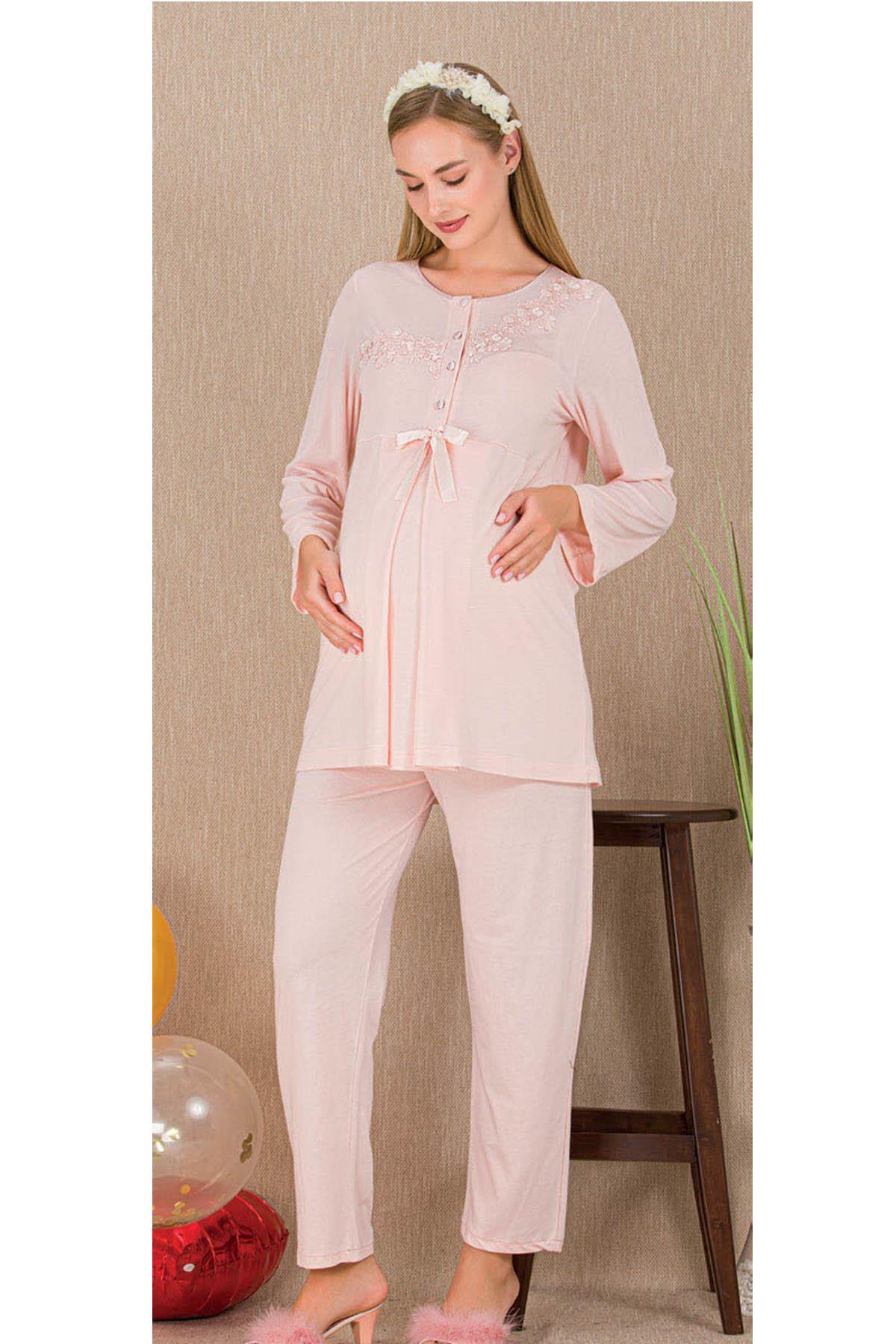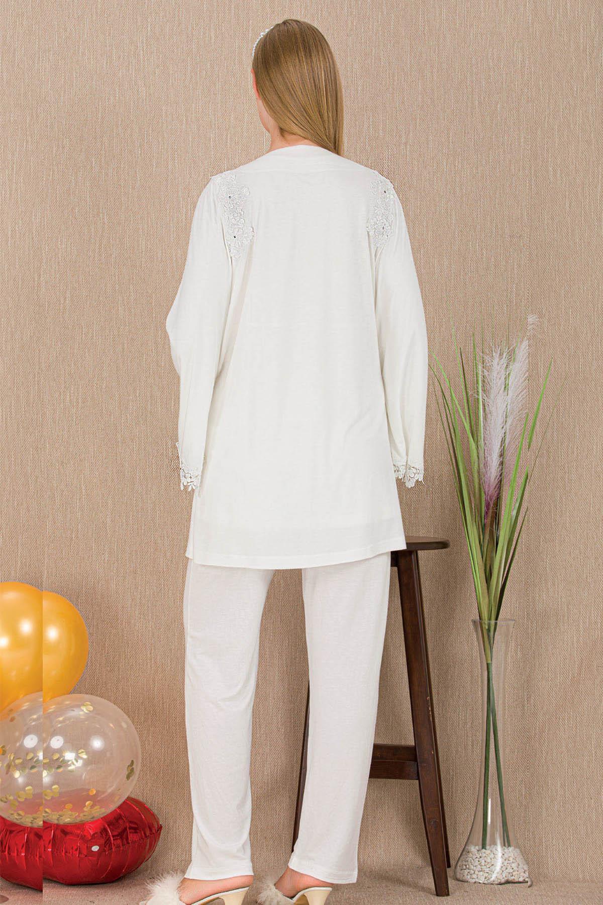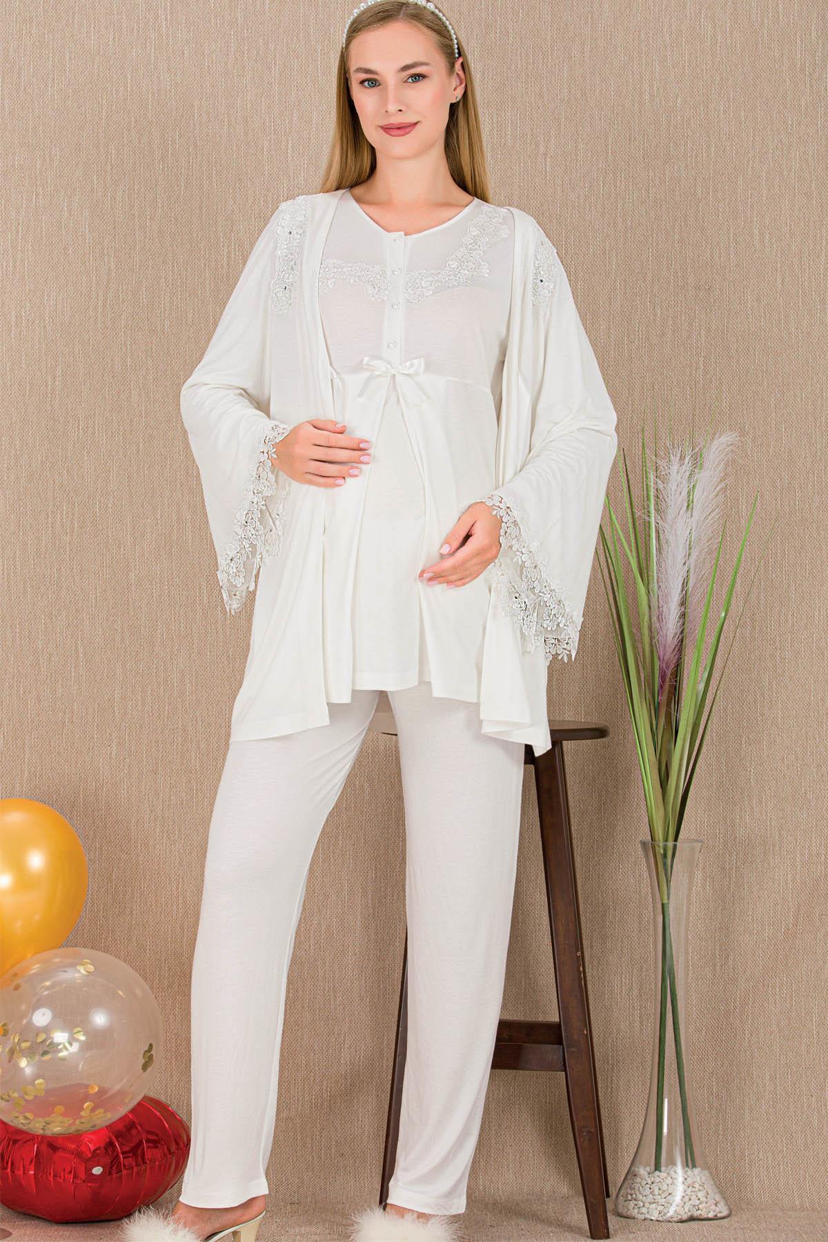 Kadın Güpür Detay 3'lü Hamile Lohusa Pijama Takım, Hamile Lohusa Sabahlık ve Pijama Takımı
