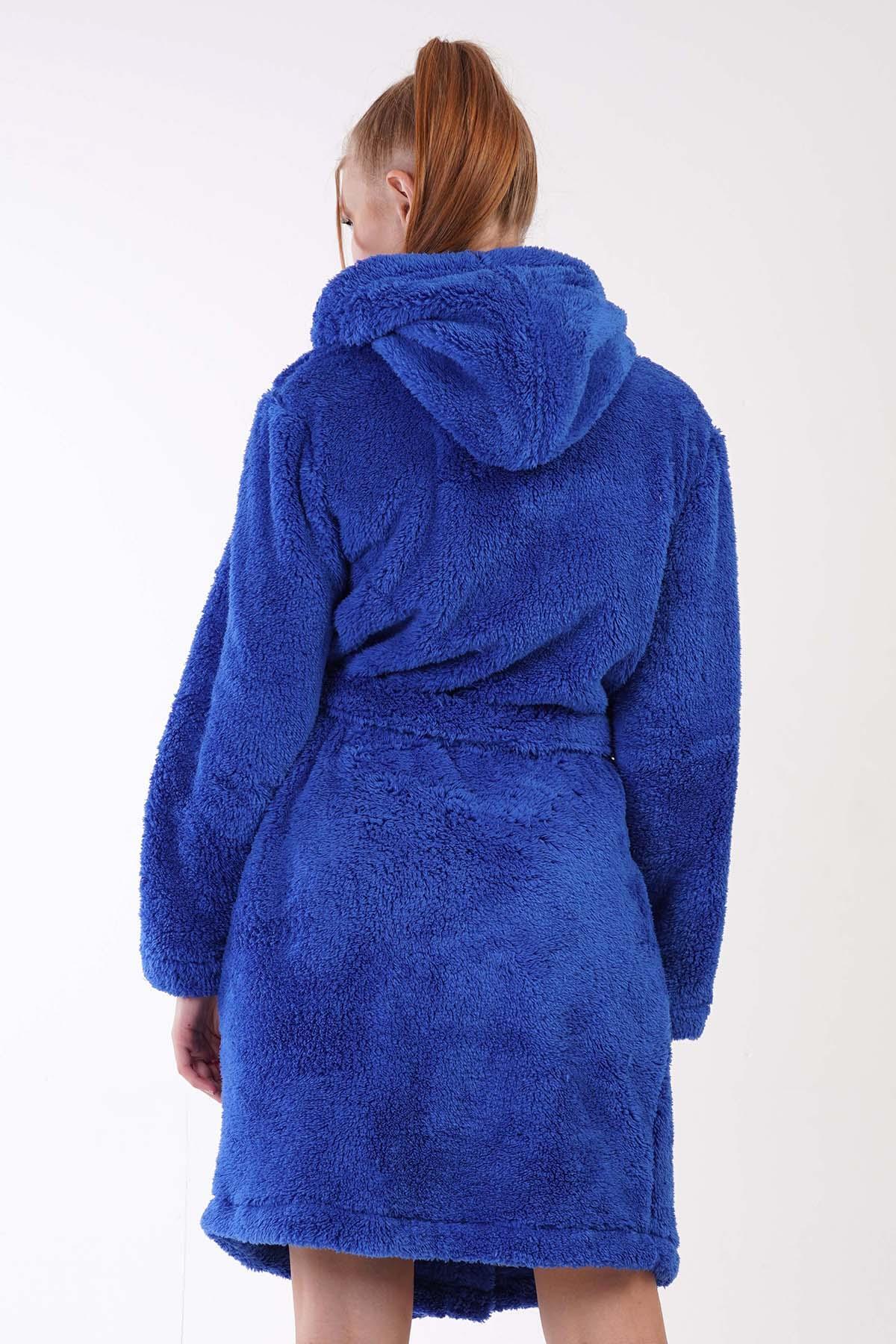 Kadın İndigo Süper Yumuşak Welwelsoft Kapsonlu Uzun Kol Kısa Sabahlık