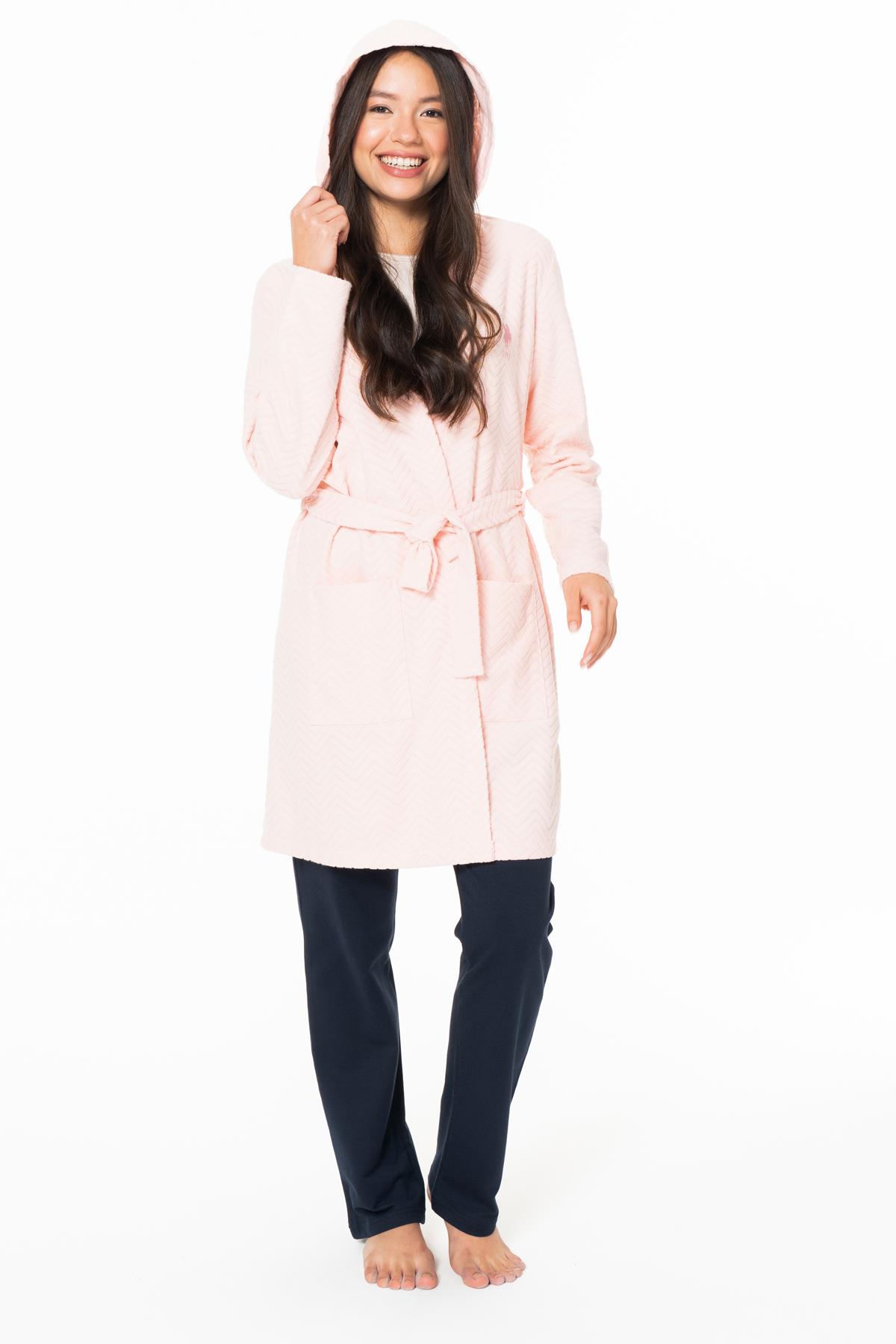 Kadın Kapşonlu Polar Sabahlık, %100 Polar