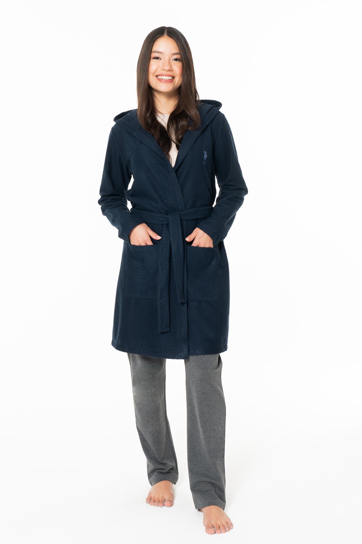 Kadın Lacivert Süper Yumuşak Vienetta Welwelsoft Kapsonlu Uzun Kol Kısa Sabahlık
