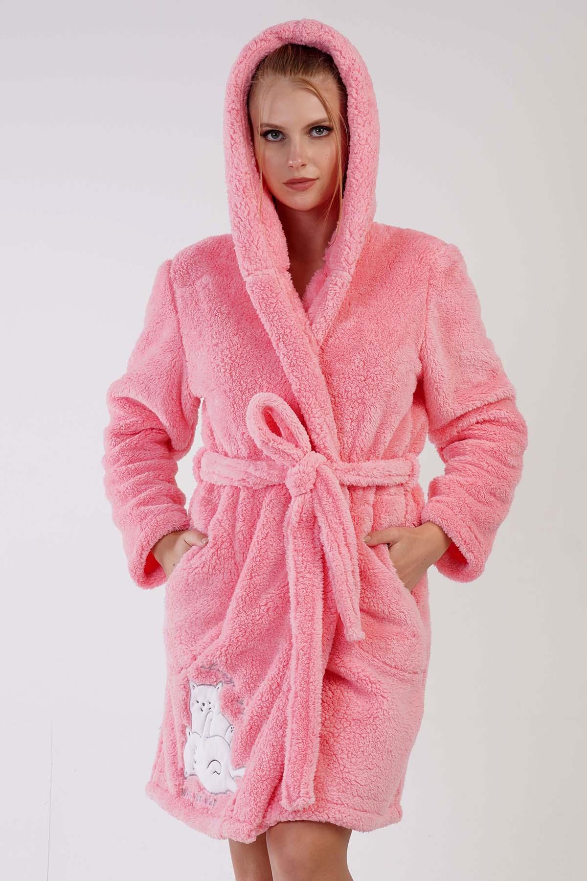 Kadın Kedili Süper Yumuşak Vienetta Welwelsoft Kapsonlu Uzun Kol Kısa Sabahlık