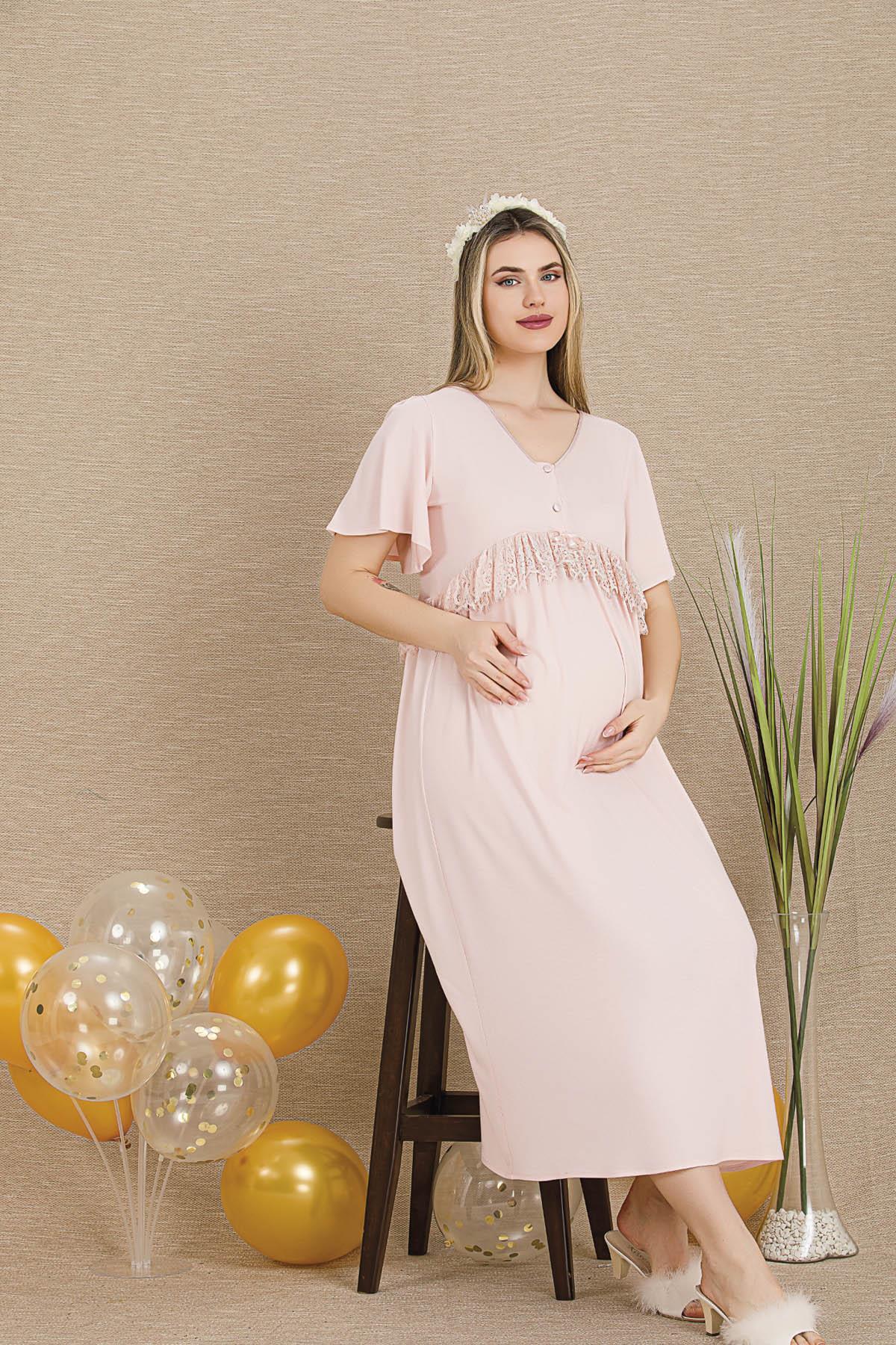 Kadın Uzunkol Hamile Lohusa Gecelik