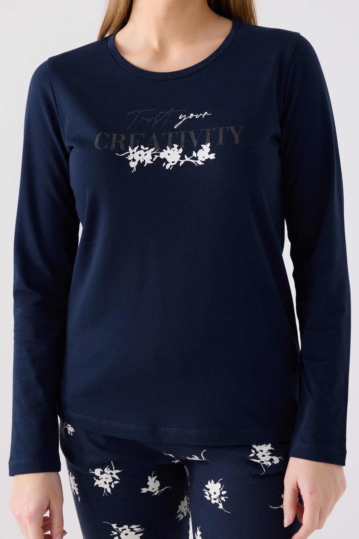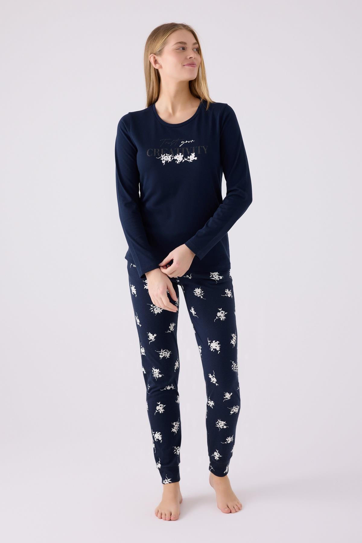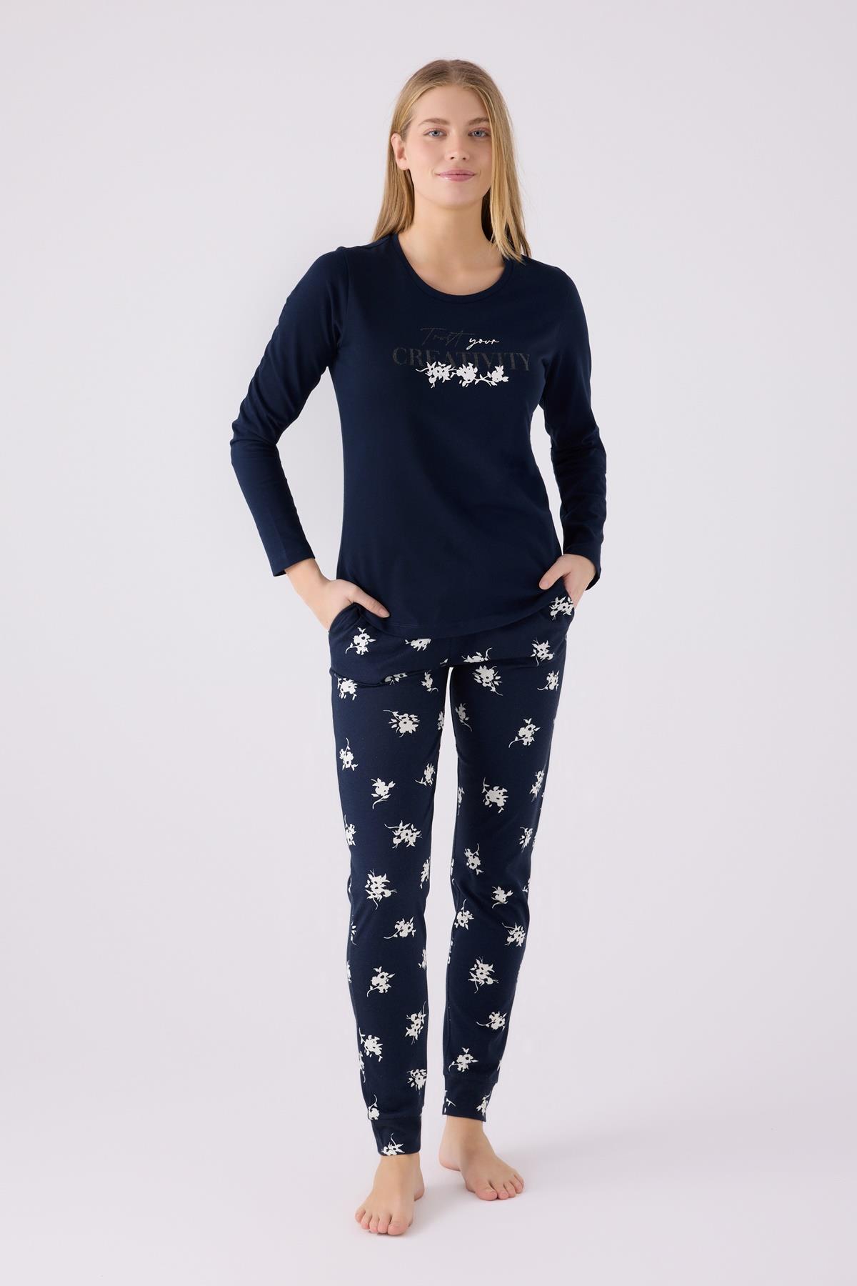 Kadın Lacivert %100 Pamuk Pijama Takım