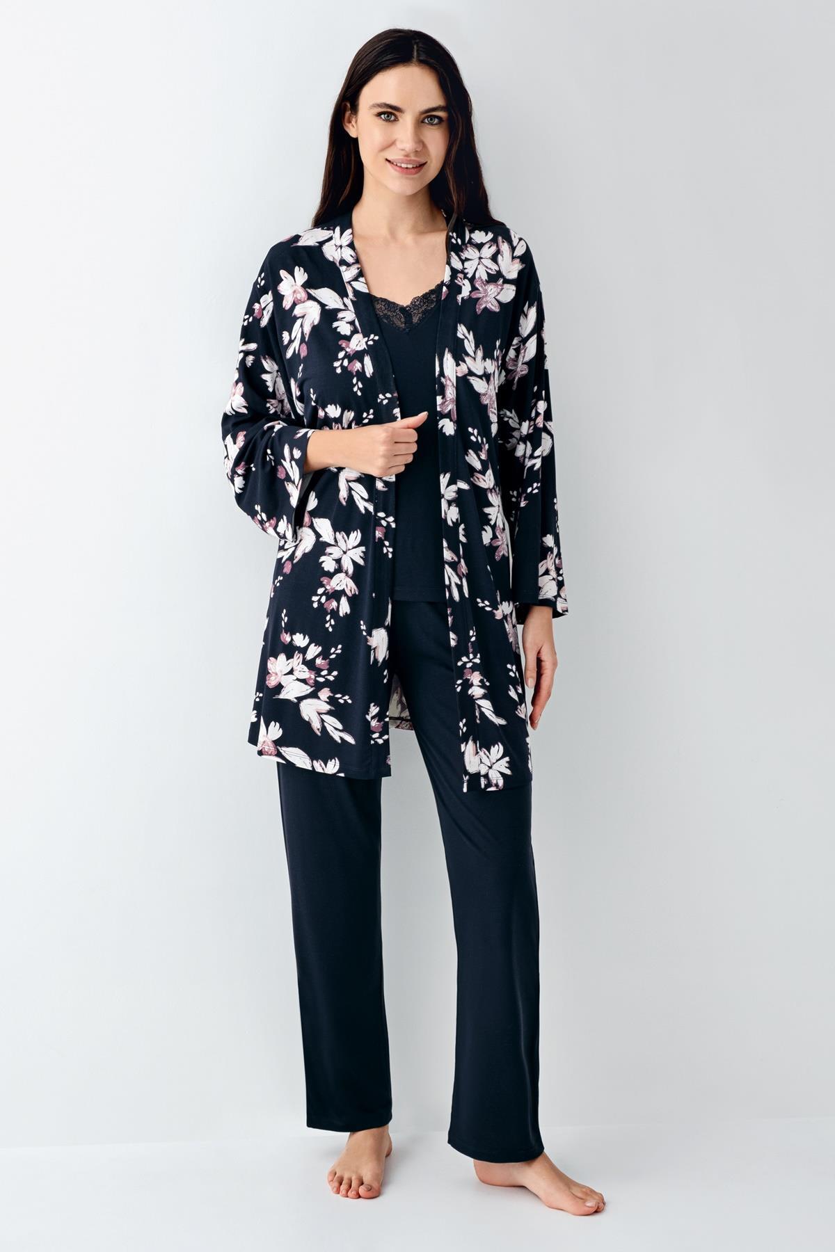 Kadın Lacivert 3'lü Takım, %50 pamuk %50 modal