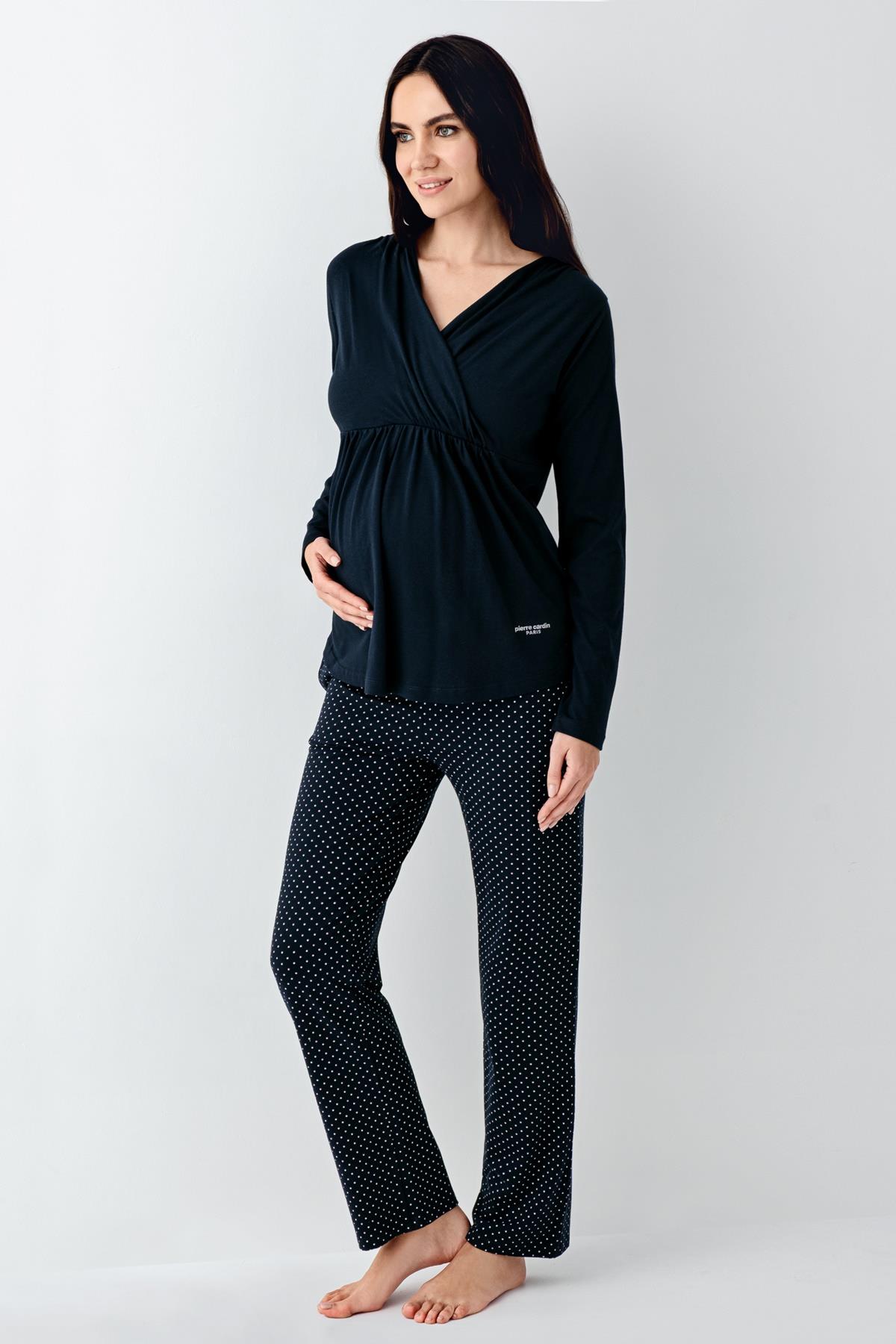 Kadın Lacivert Lohusa Pijama Takım, %50 pamuk %50 modal