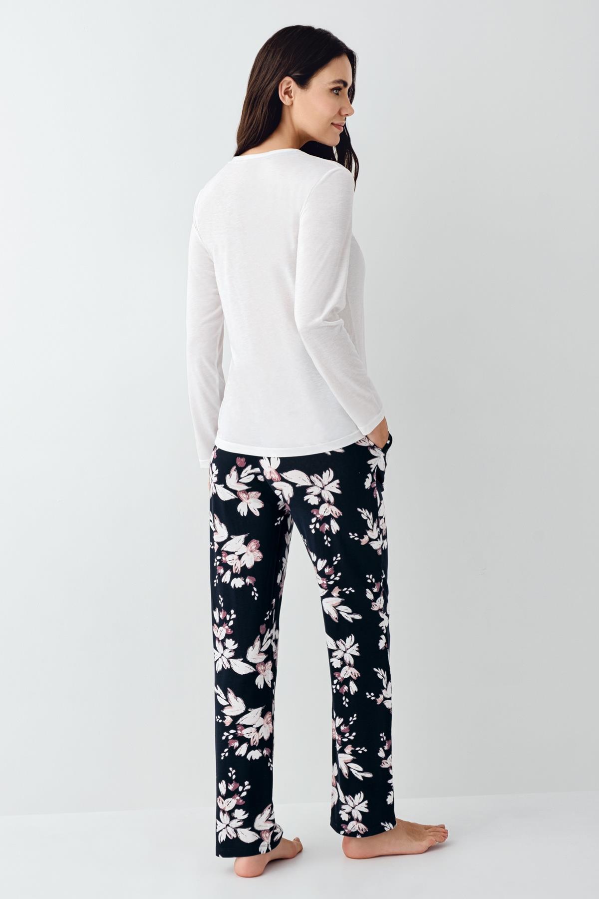 Kadın Mevsimlik Uzunkol Bisiklet Yaka Pijama Takım, %50 pamuk %50 modal