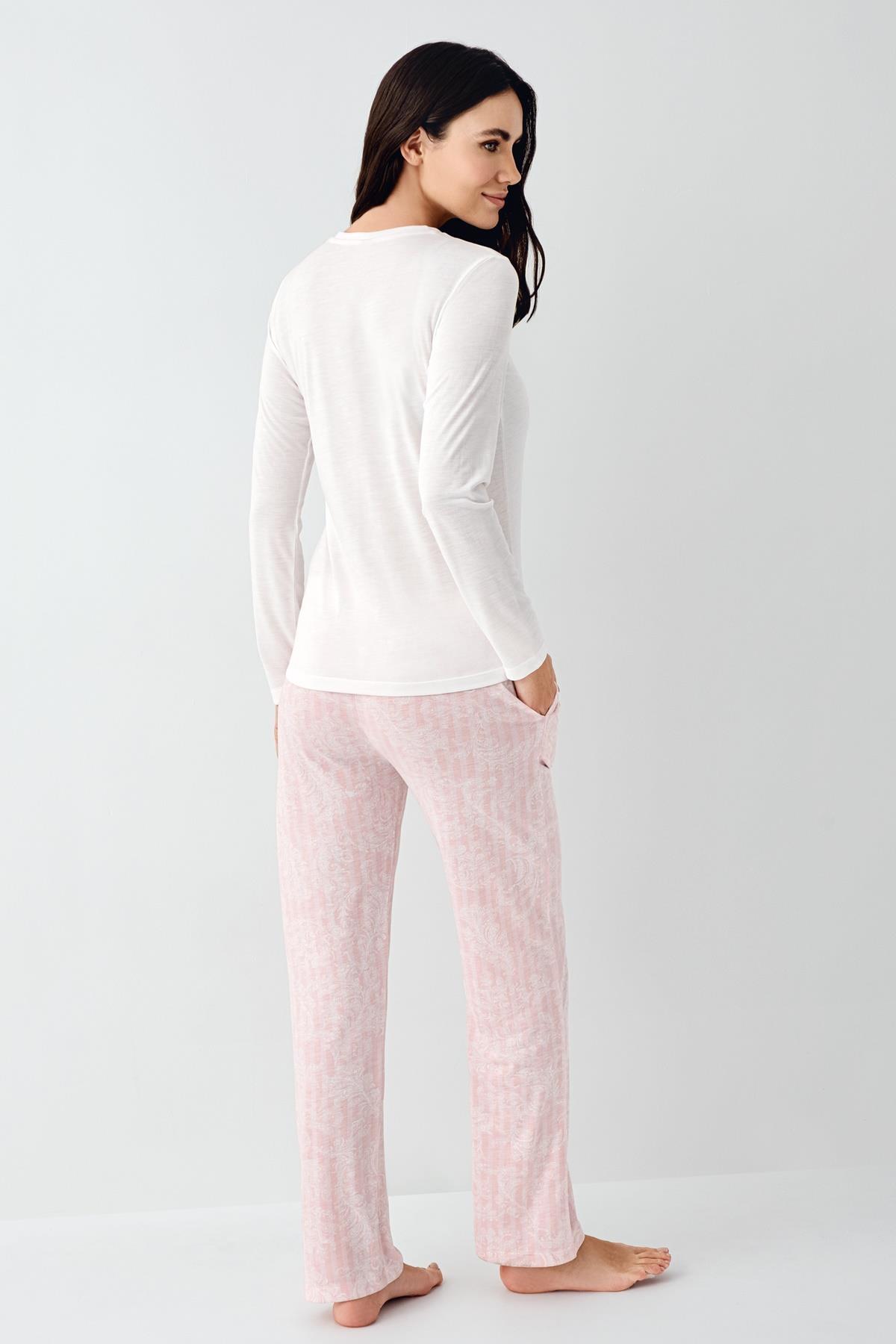 Kadın Mevsimlik Uzunkol Pijama Takım, %50 pamuk %50 modal