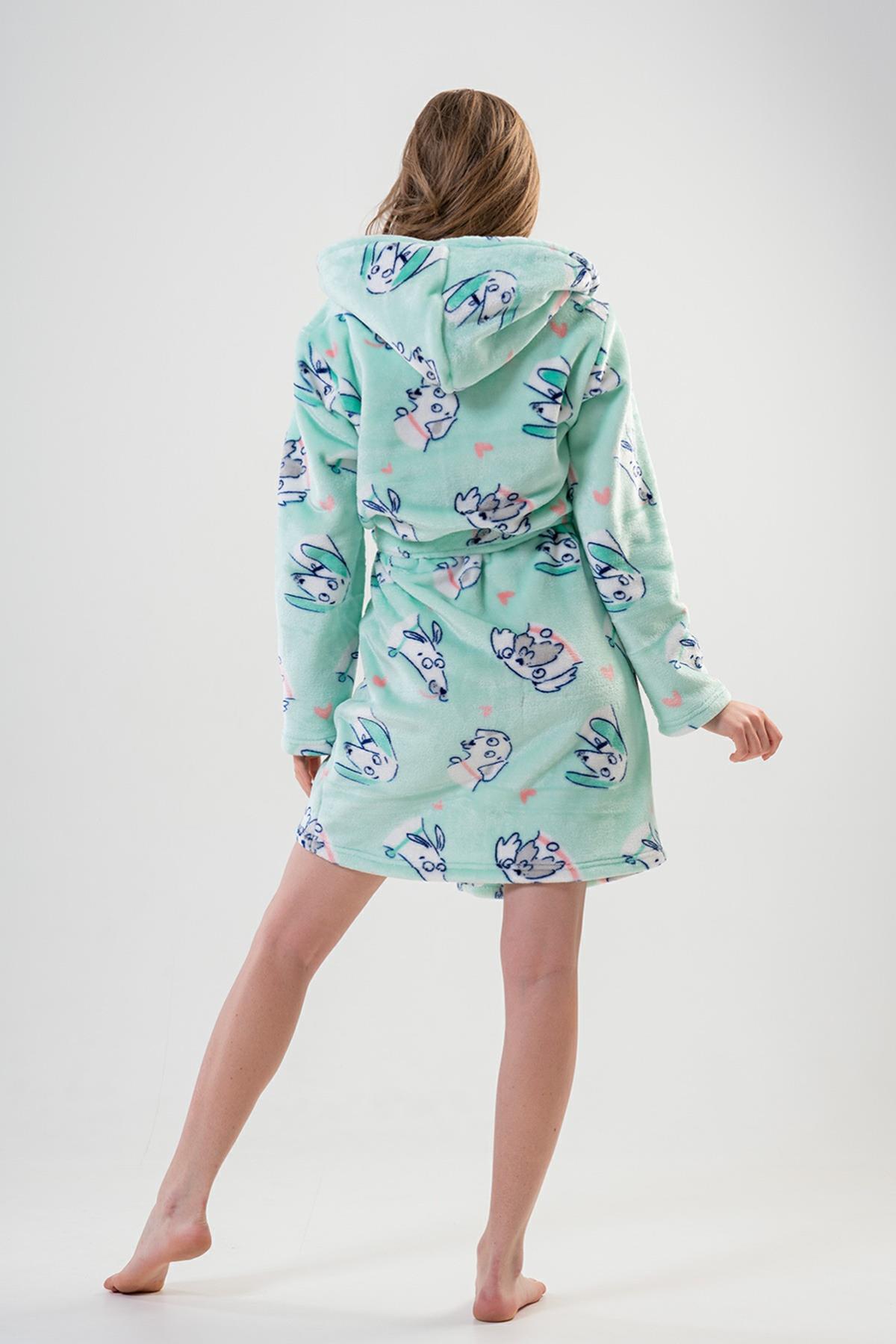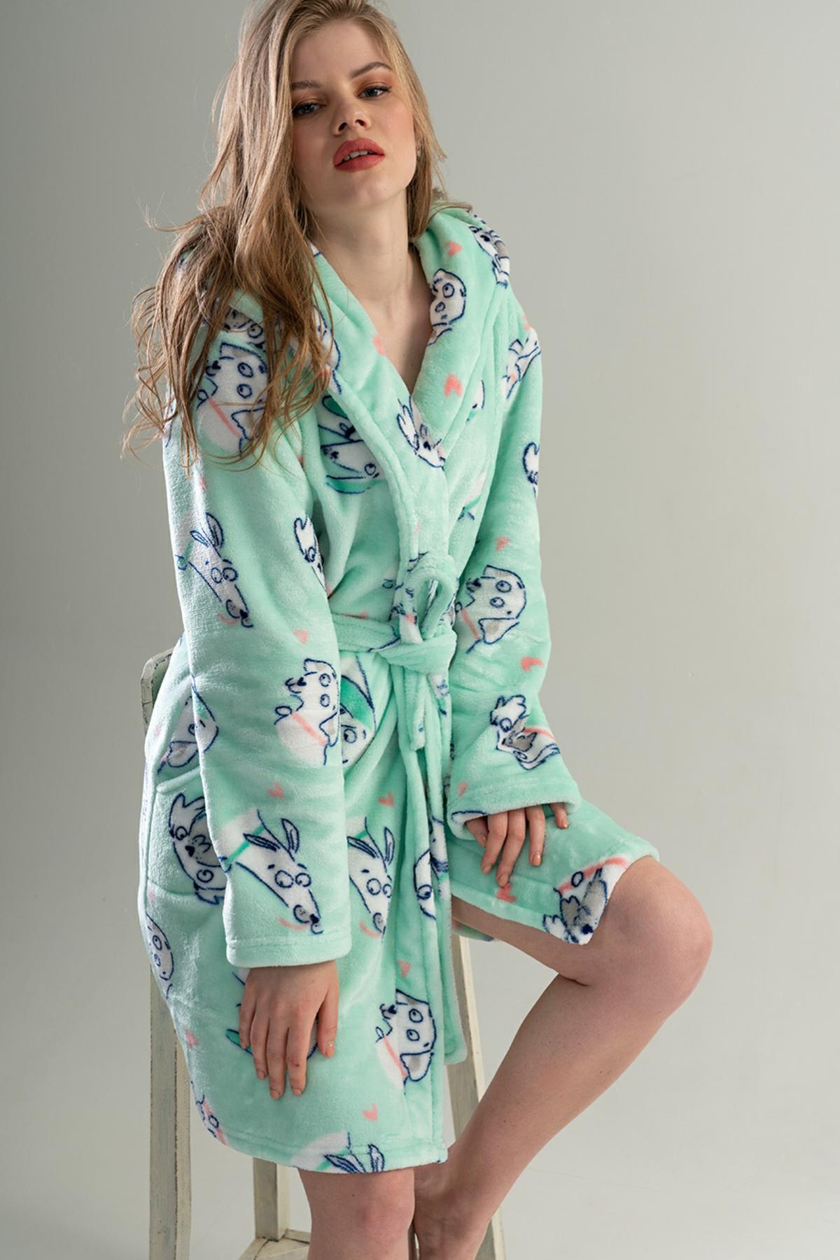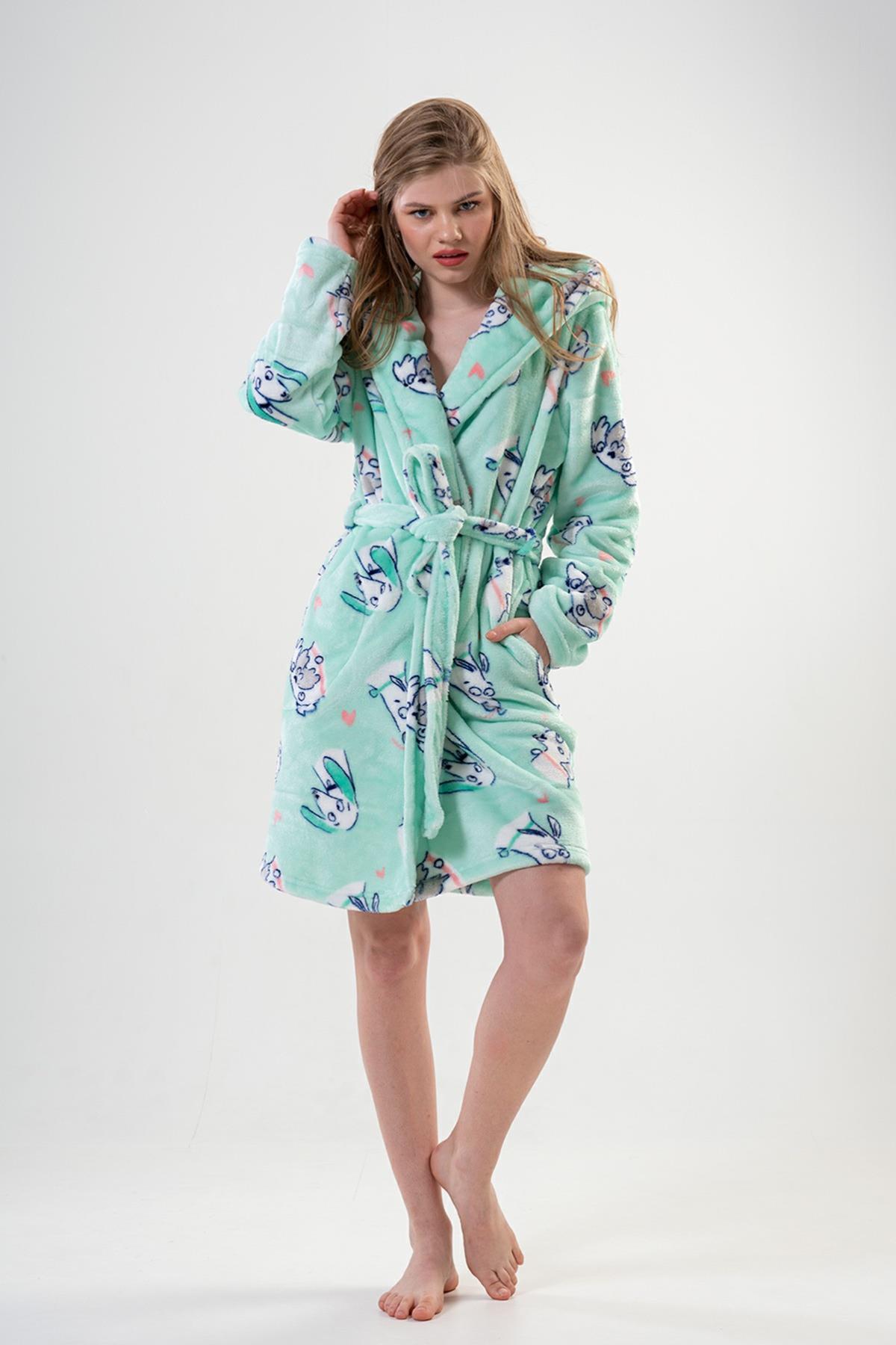 Kadın Mint Süper Yumuşak Vienetta Welwelsoft Kapsonlu Uzun Kol Kısa Sabahlık