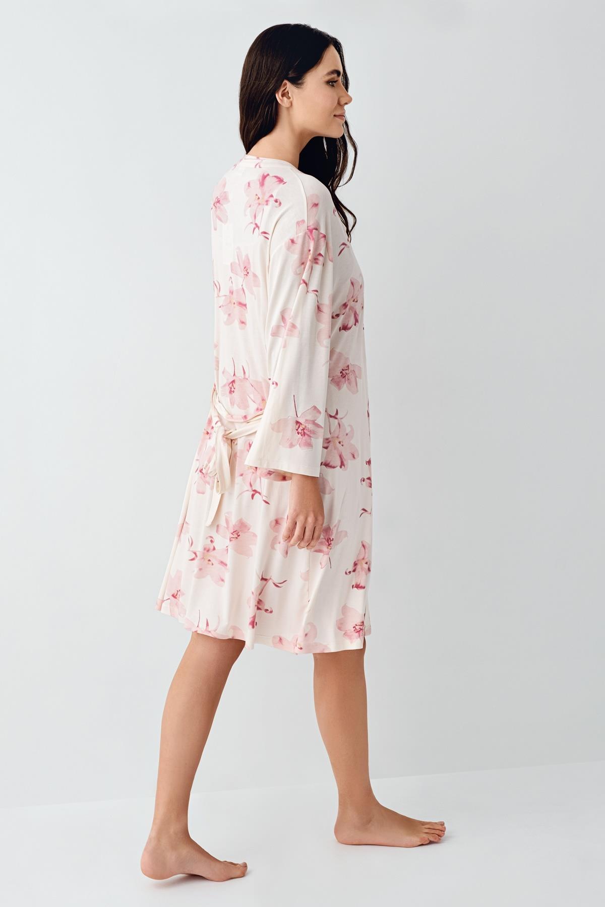 Kadın Modal Gecelik Sabahlık Takım, Sabahlık Çiçekli, Gecelik Düz Renk Dantel Detay
