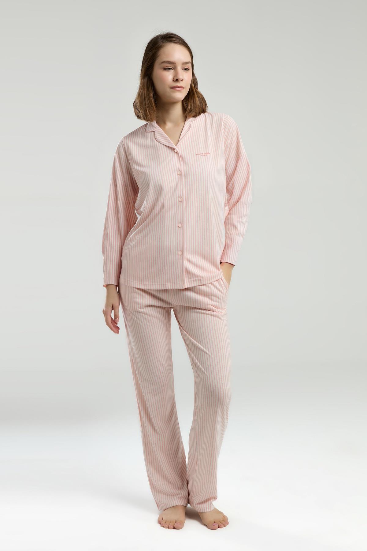 Kadın Modal Pijama Takım, Önden Düğmeli, Uzun Kollu, %50 Pamuk %50 Modal