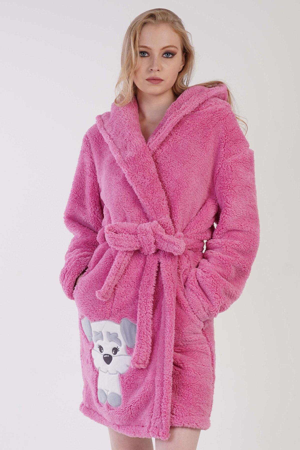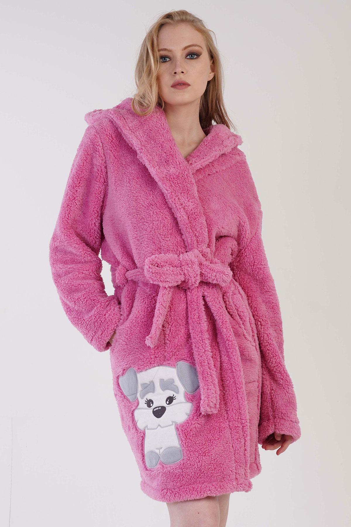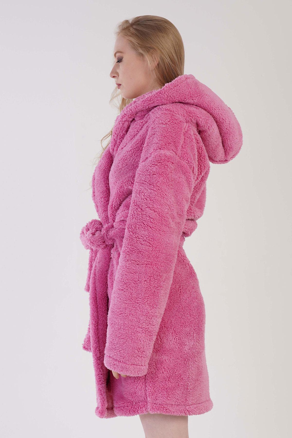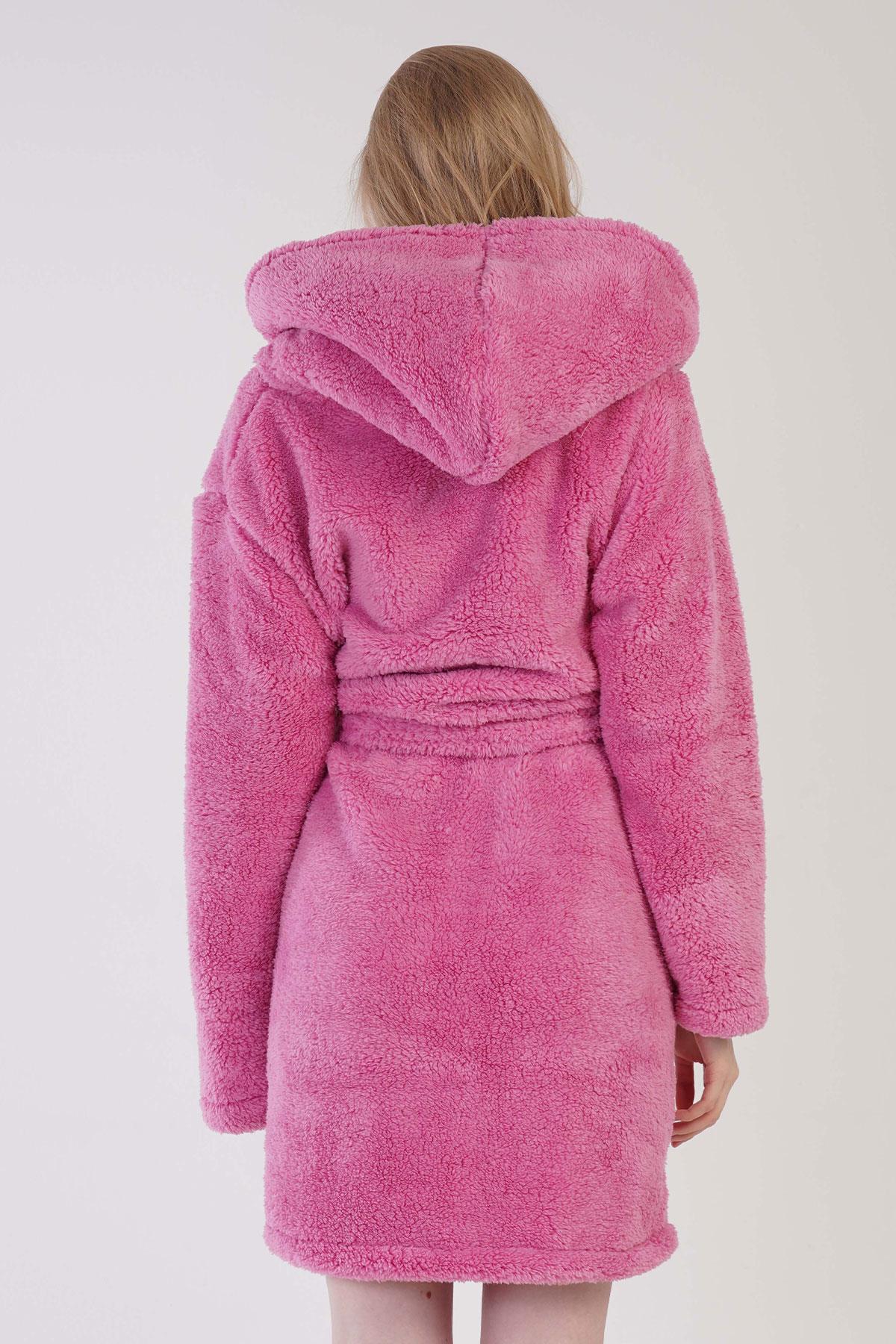 Kadın Pembe Süper Yumuşak Welwelsoft Kapsonlu Uzun Kol Kısa Sabahlık