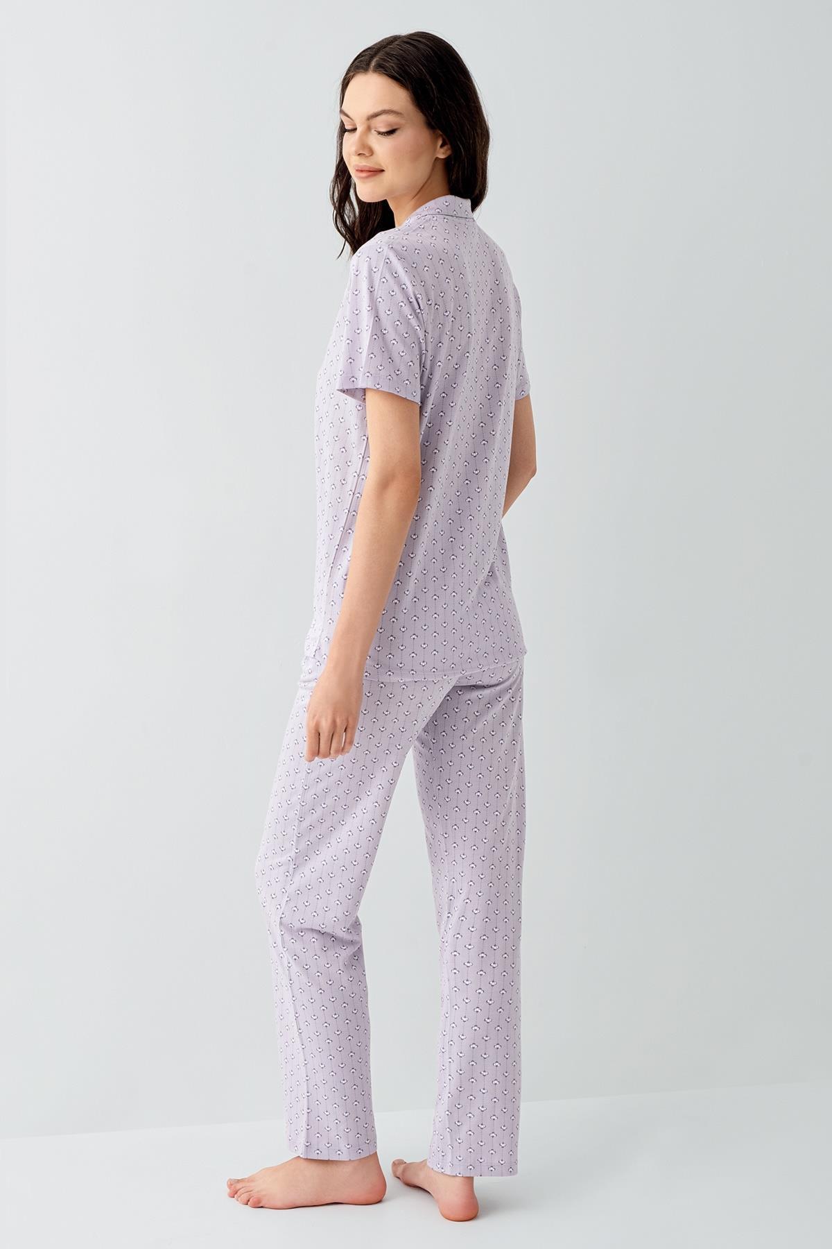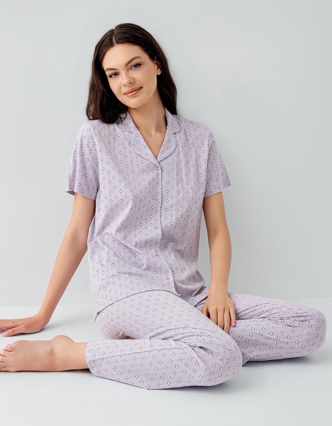 Zarif deseni ve rahat kesimiyle öne çıkan bu kadın pijama takımı, ev konforunu şıklıkla buluşturur.