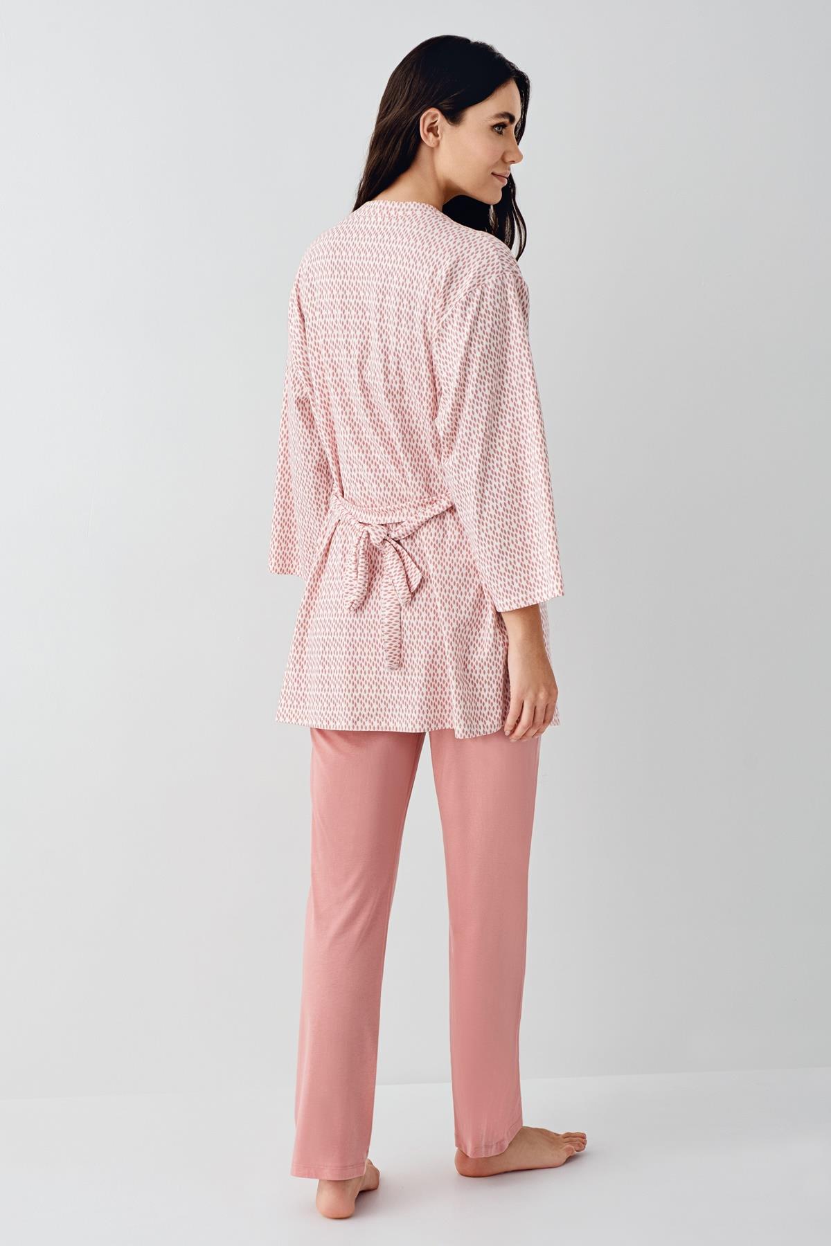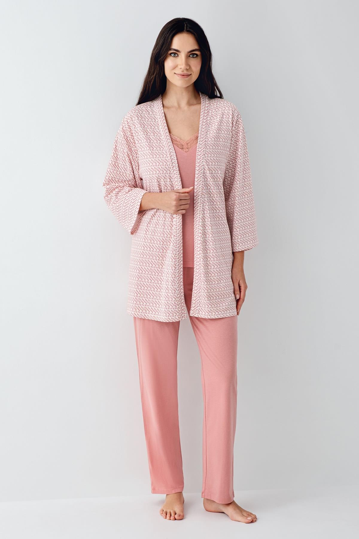 Kadın Retro Pembe 3'lü Pijama Takım, %50 Pamuk %50 Modal kumaş