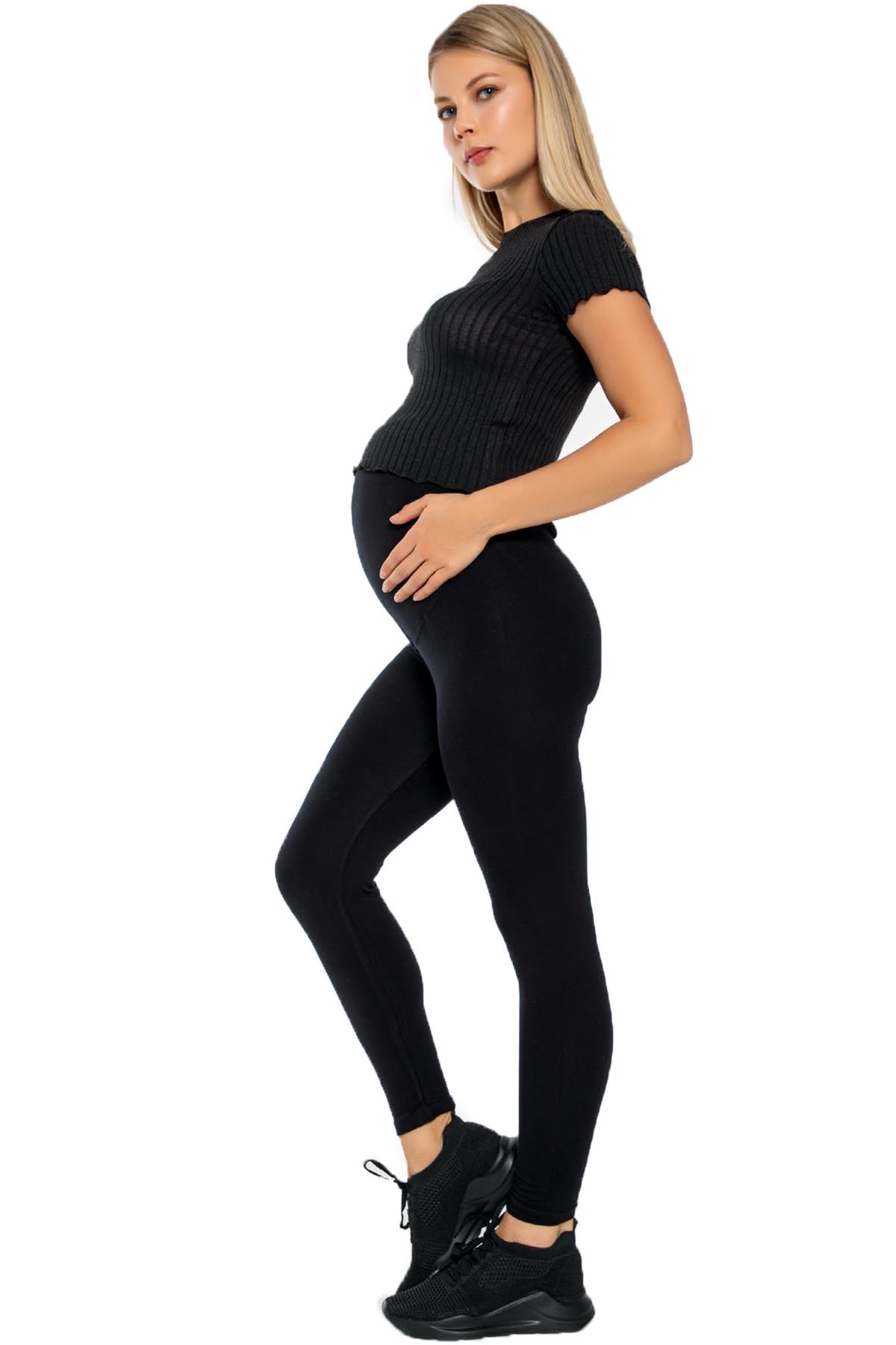 Kadın Siyah 4 Mevsim Kullanılabilir Hamile Tayt,