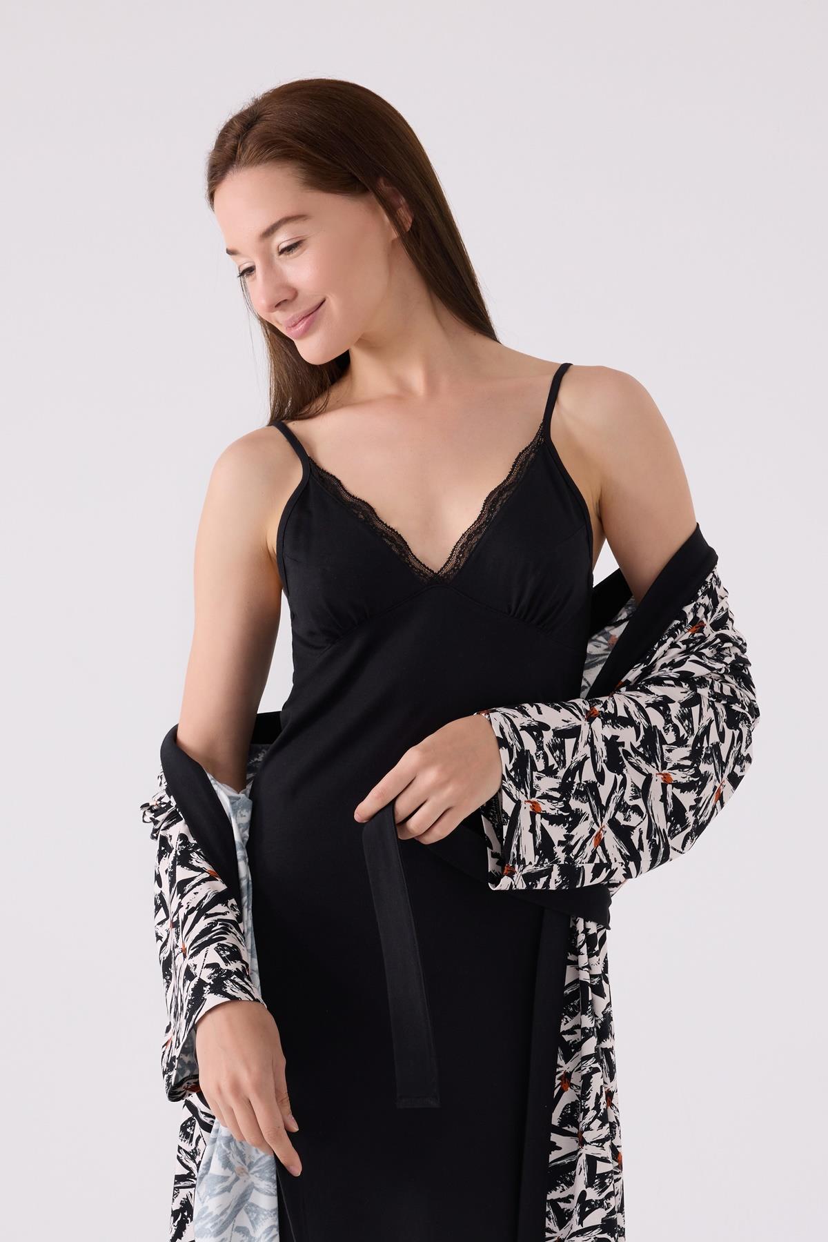 Kadın Siyah Gecelik Sabahlık Takım