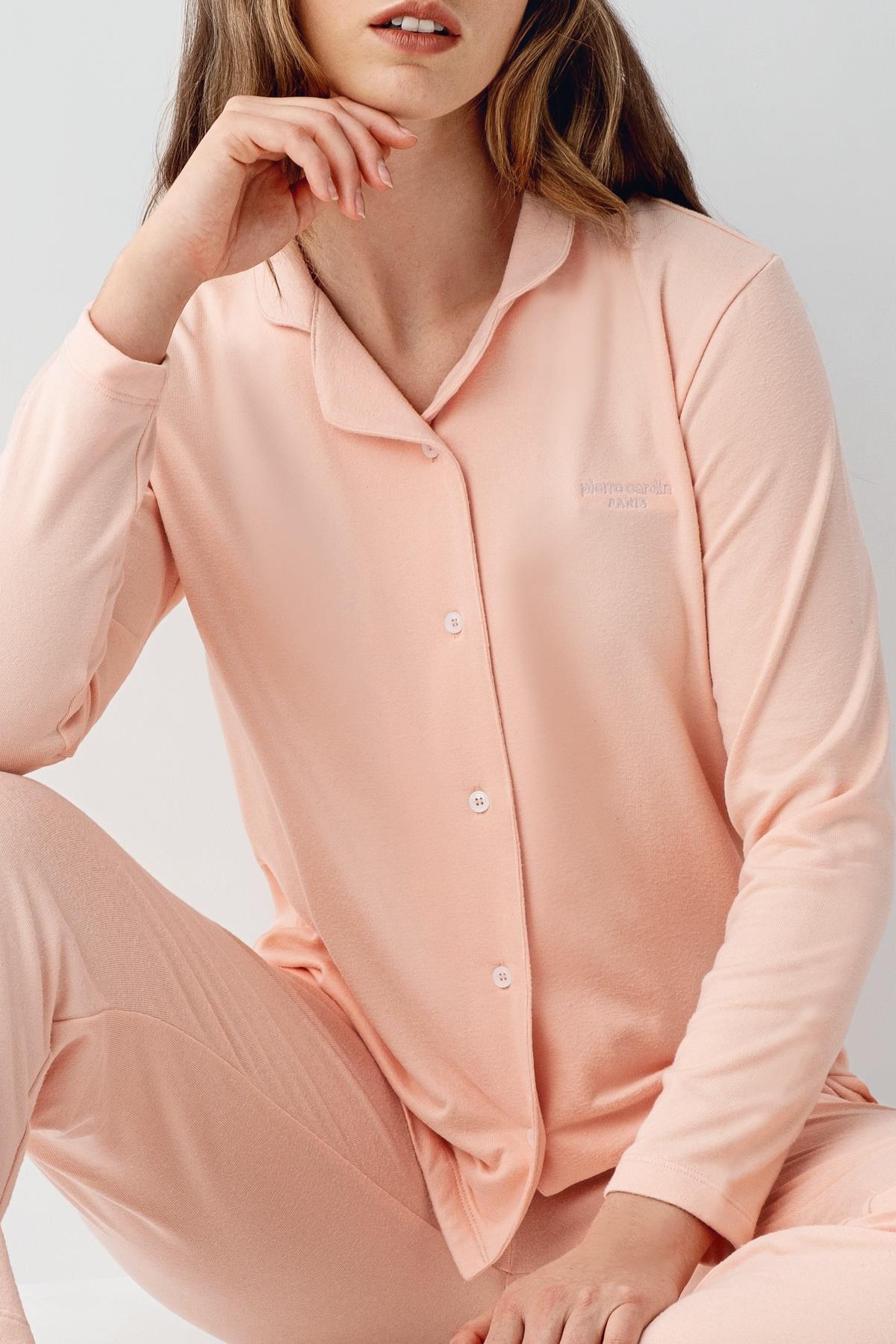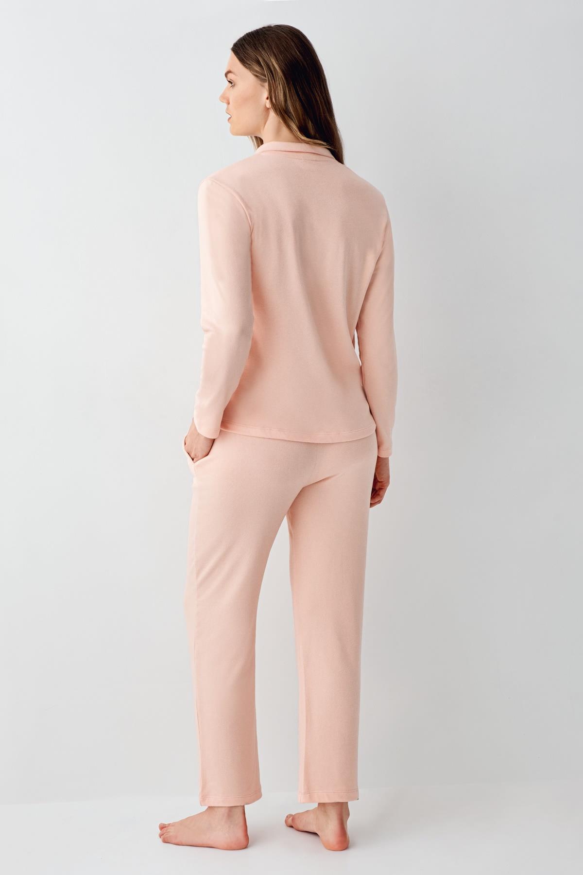 Kadın Somon Gömlek Termal Kışlık Pijama Takım