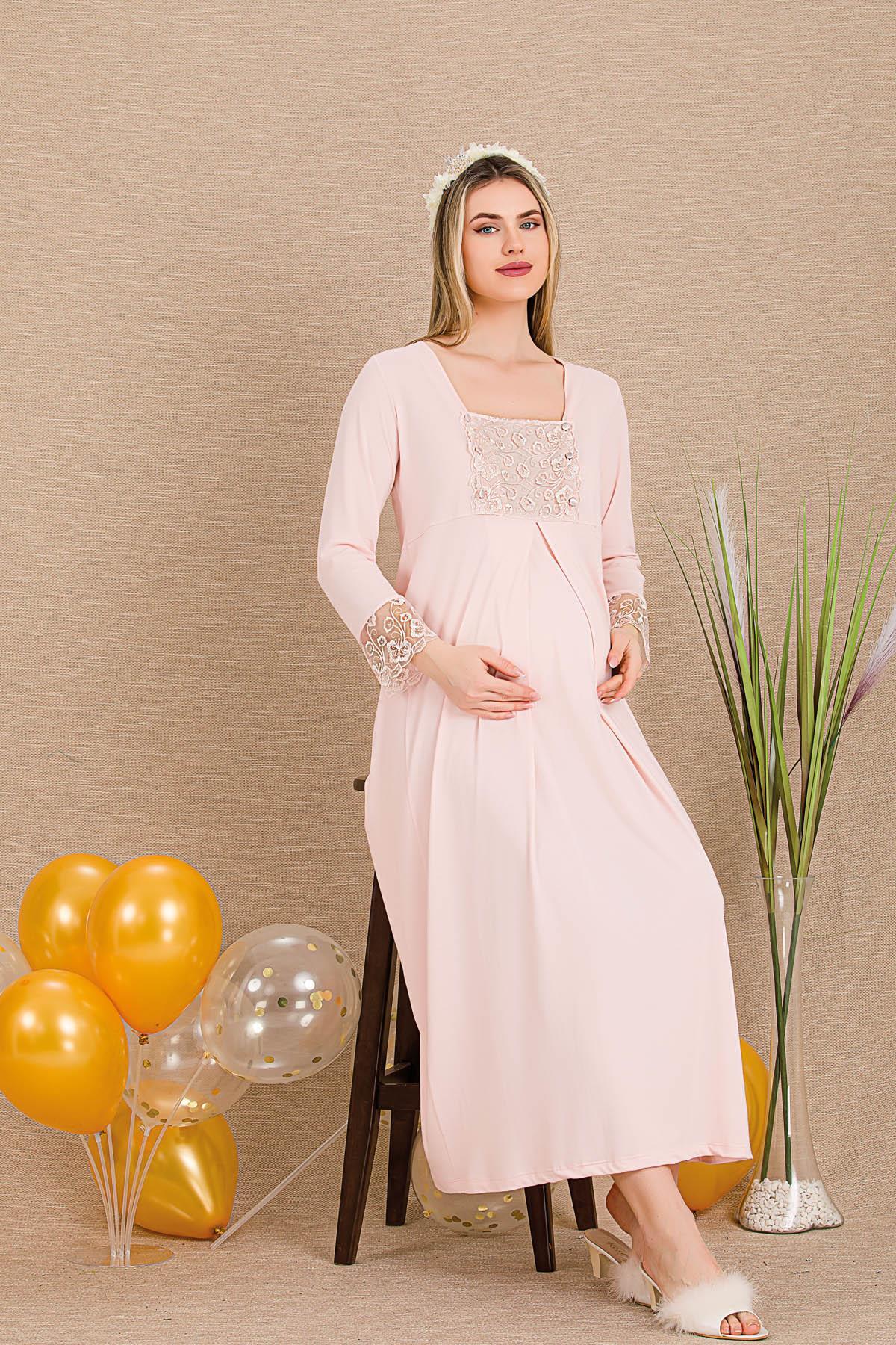 Kadın Uzunkol Hamile Lohusa Gecelik