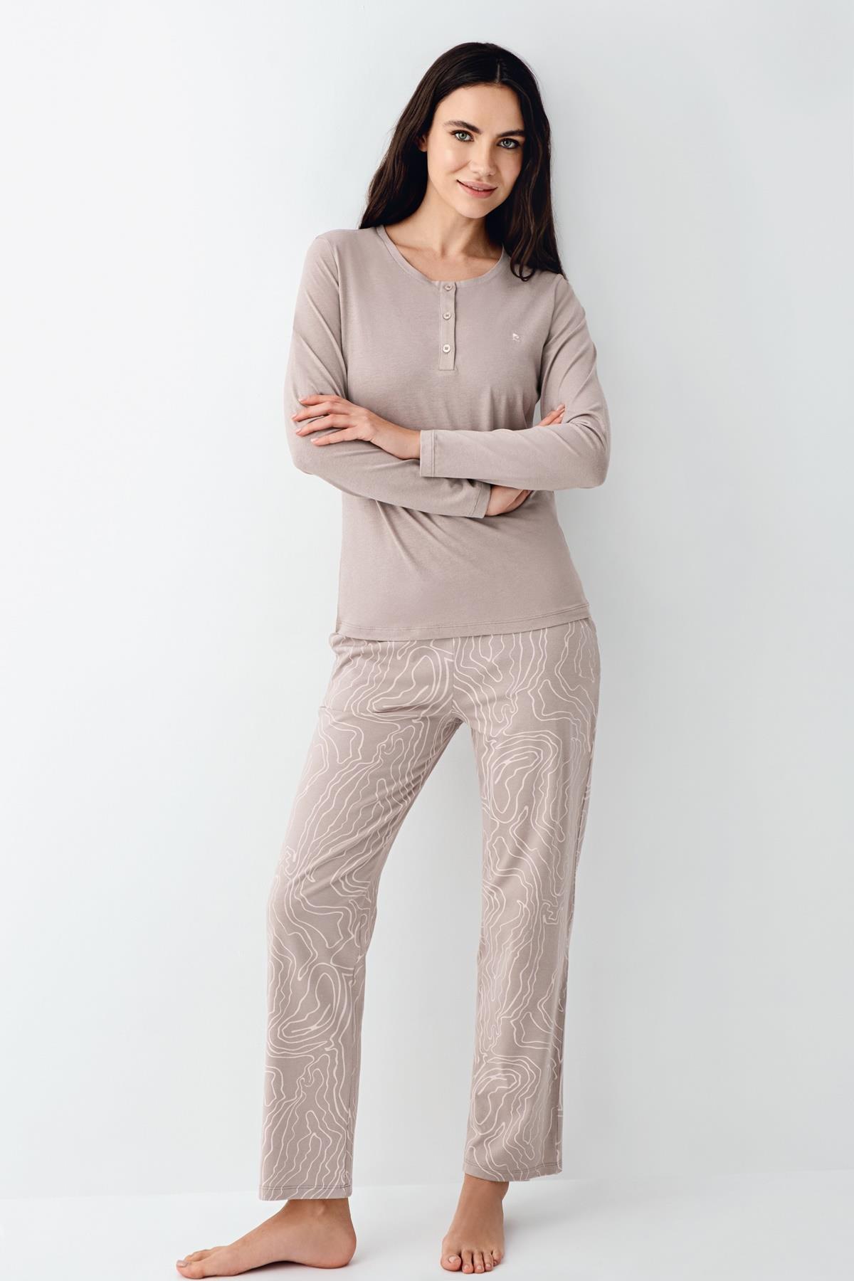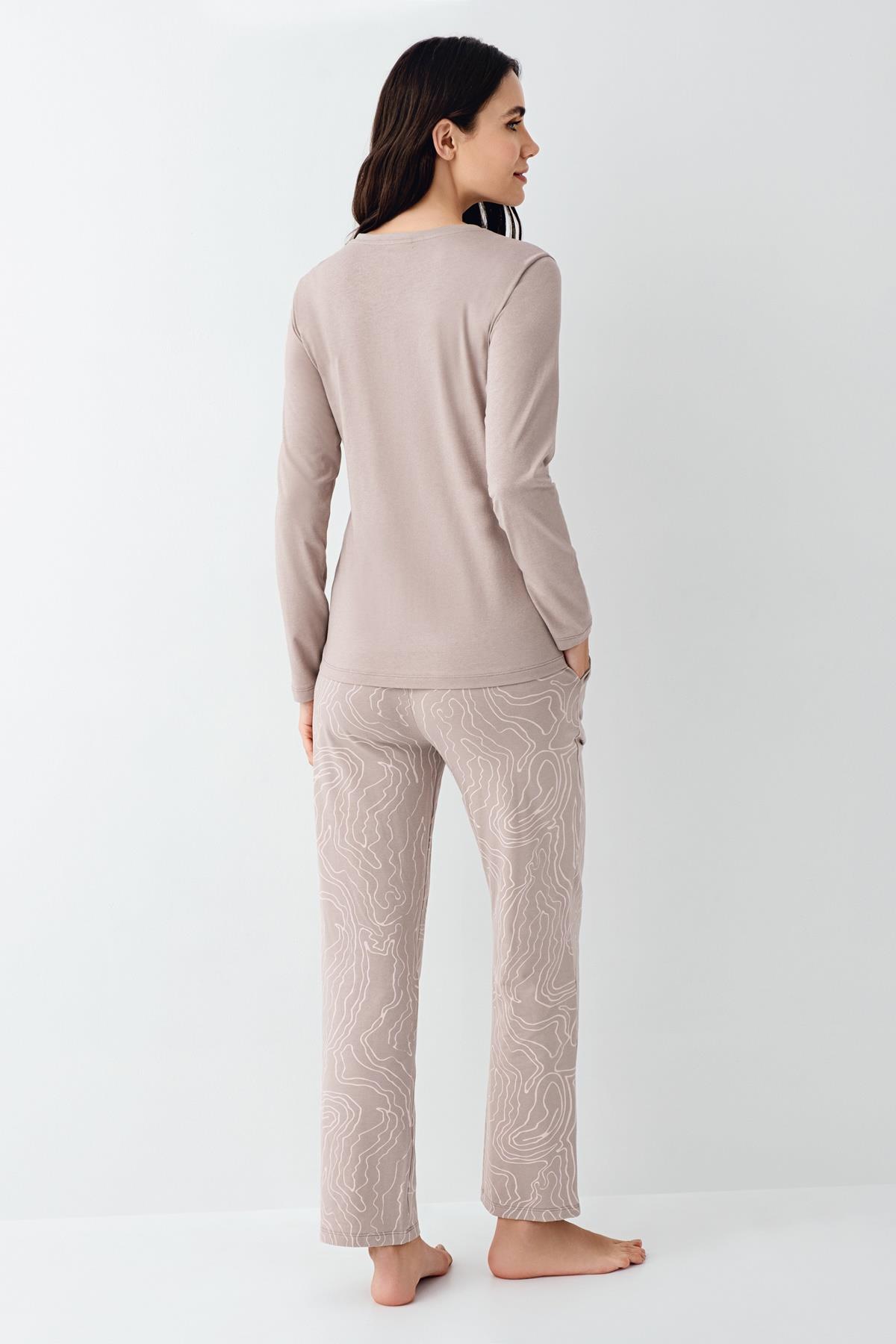 Kadın Uzunkol Vizon Pijama Takım, Büyük Beden Pijama, %50 pamuk %50 modal