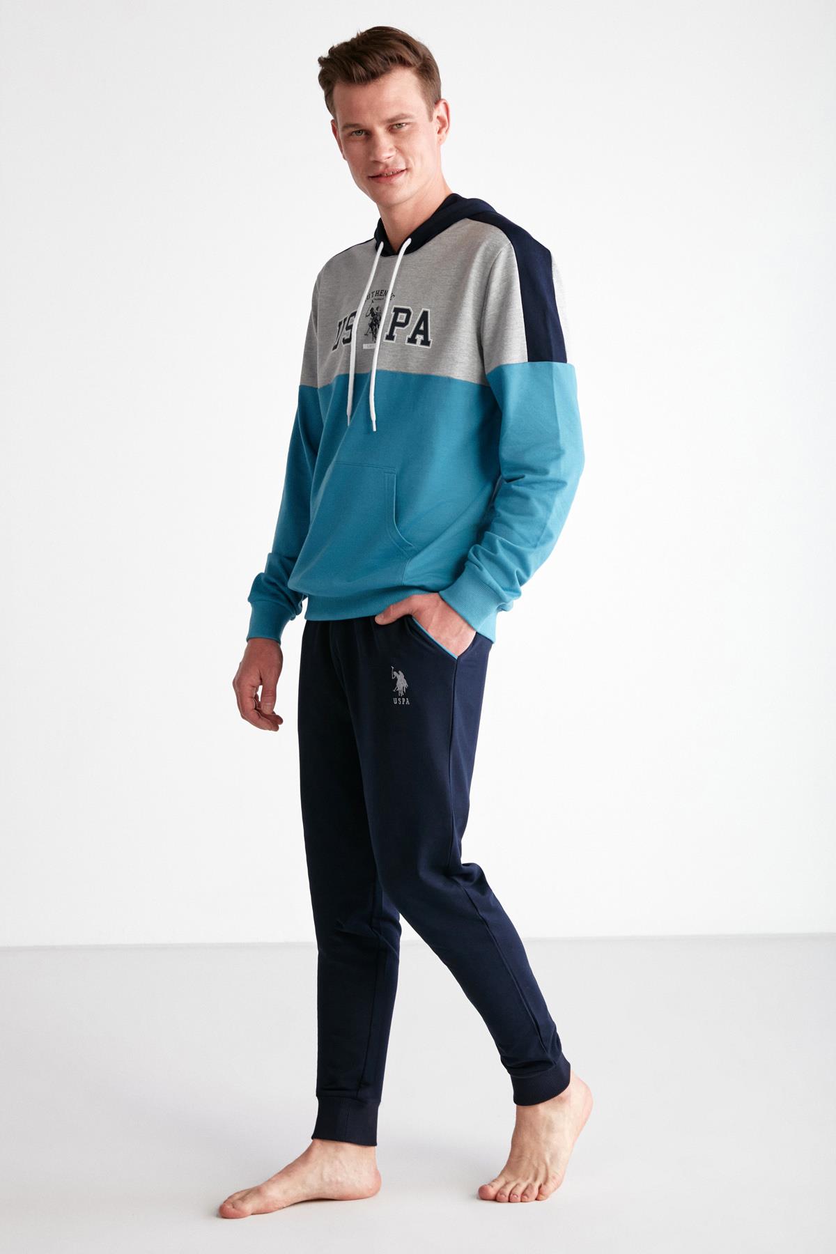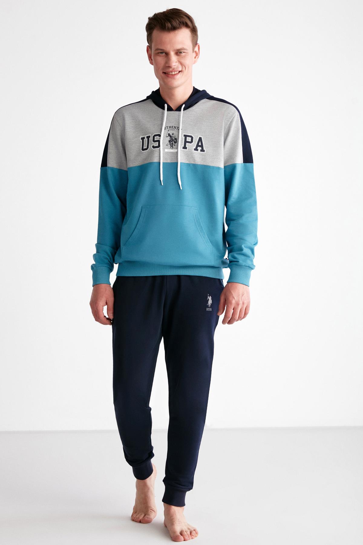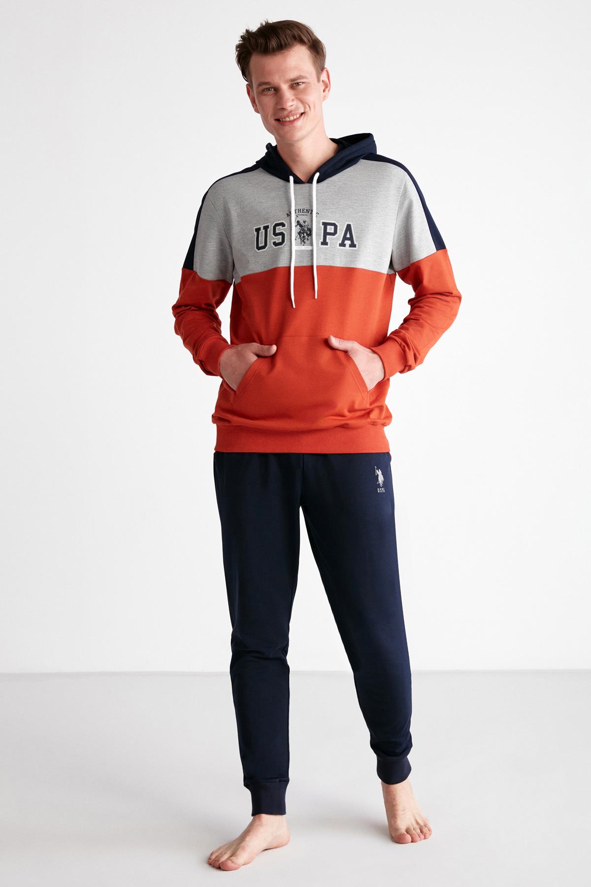 Kapşonlu Uspa Yazı Baskılı Kol ve Paça Manşetli 2 İplik Erkek Eşofman Takım