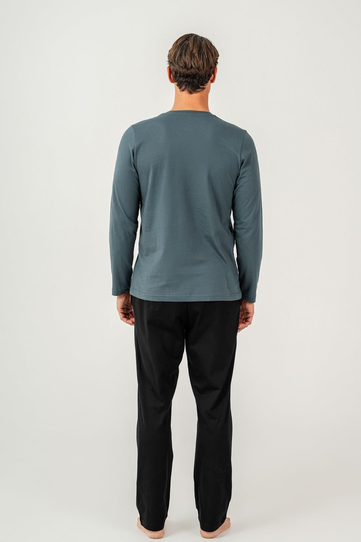 Erkek %100 Pamuk Pijama Takımı – Kısa Kollu T-Shirt & Uzun Pijama Altı