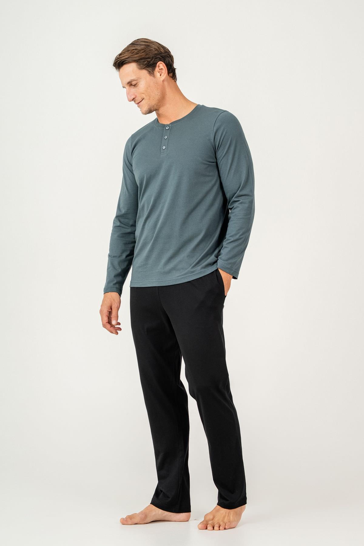 Erkek Pijama Takımı %100 Pamuk – Kısa Kollu Üst & Cepli Uzun Alt Rahat Ev Giyimi