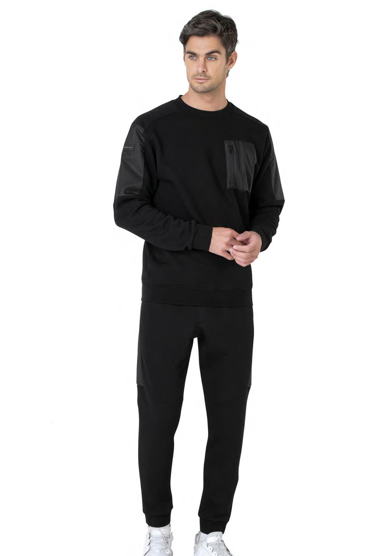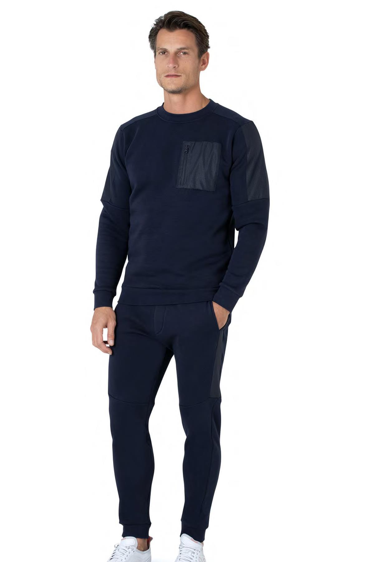 Pierre Cardin %100 Pamuk Erkek 3 İplik Eşofman Takım, Bisiklet Yaka Kolları Manşetli, Düz Paça ve Cep Detaylı